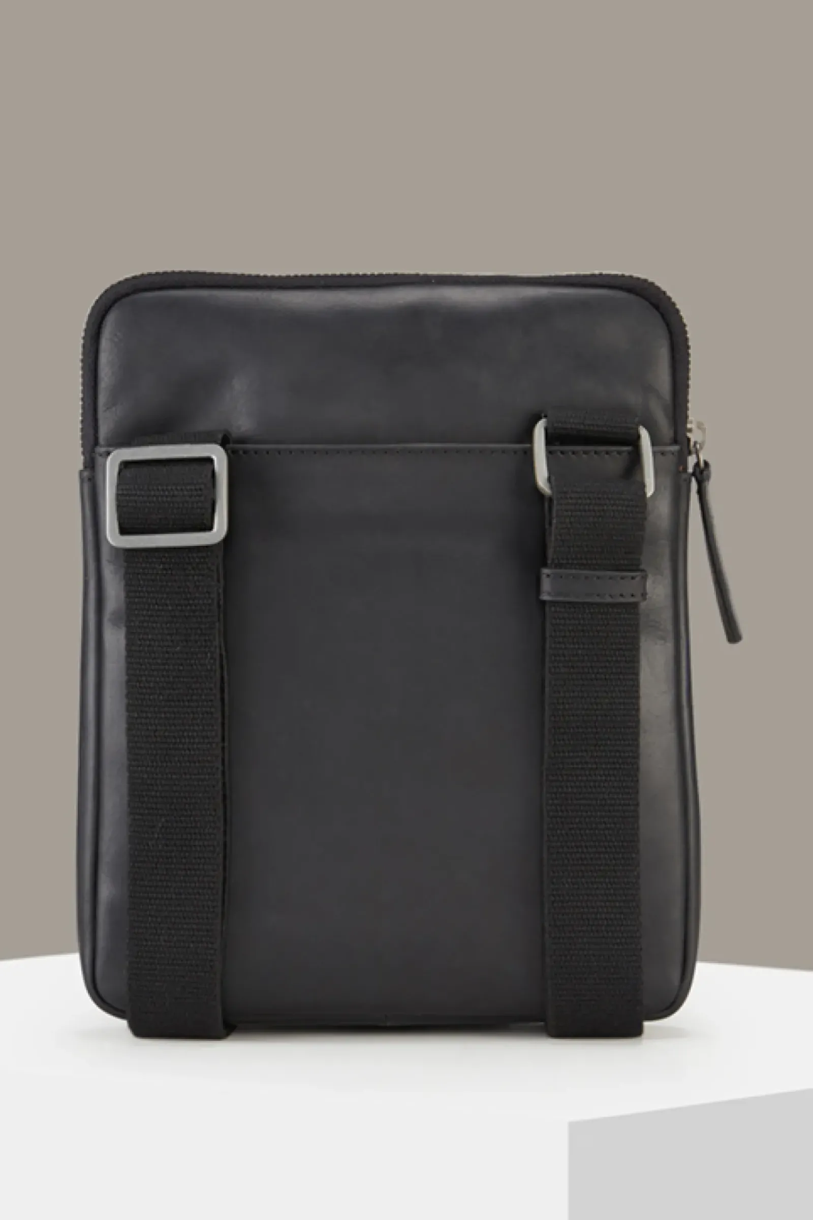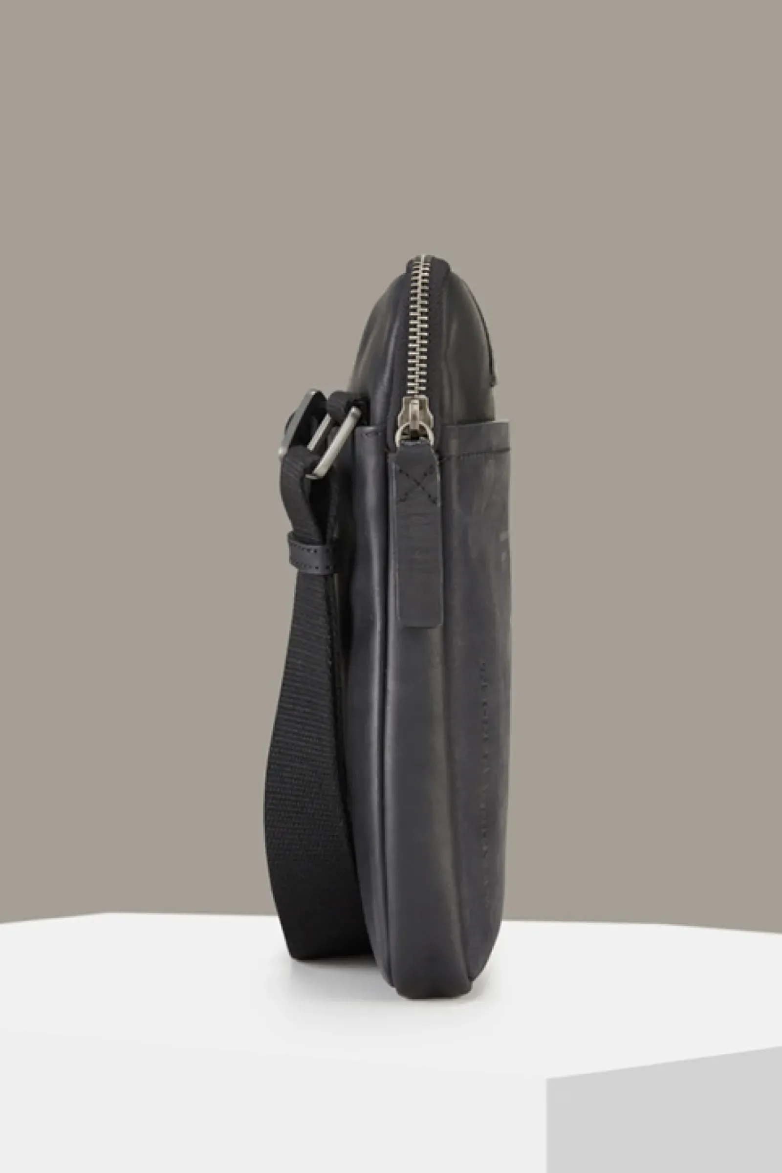 Aus Glattleder im kleinen, rechteckigen Format: die Schultertasche Marcus aus der Brick Lane Kollektion mit textilem Crossbody-Riemen, diversen Fächern und Logo-Details.