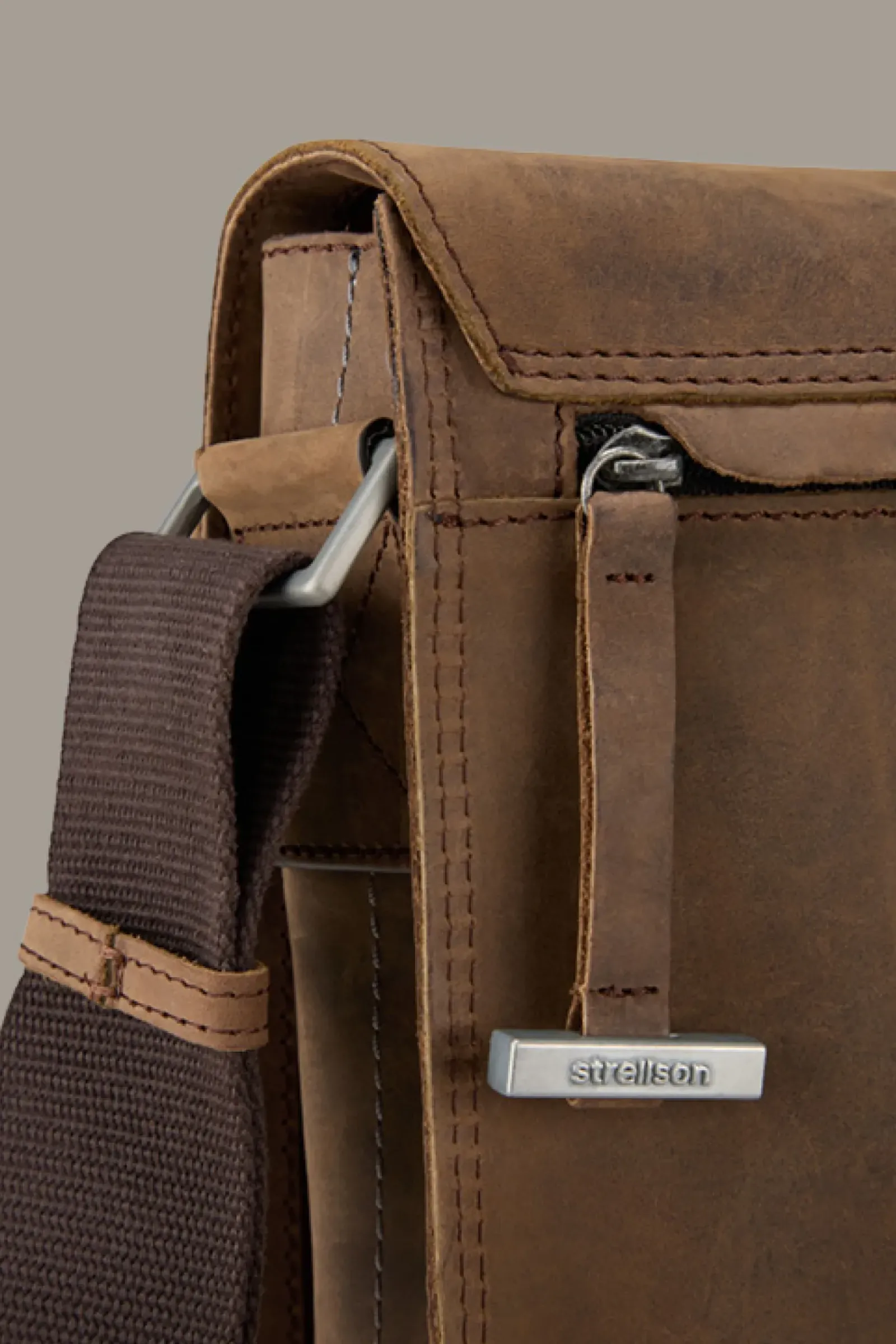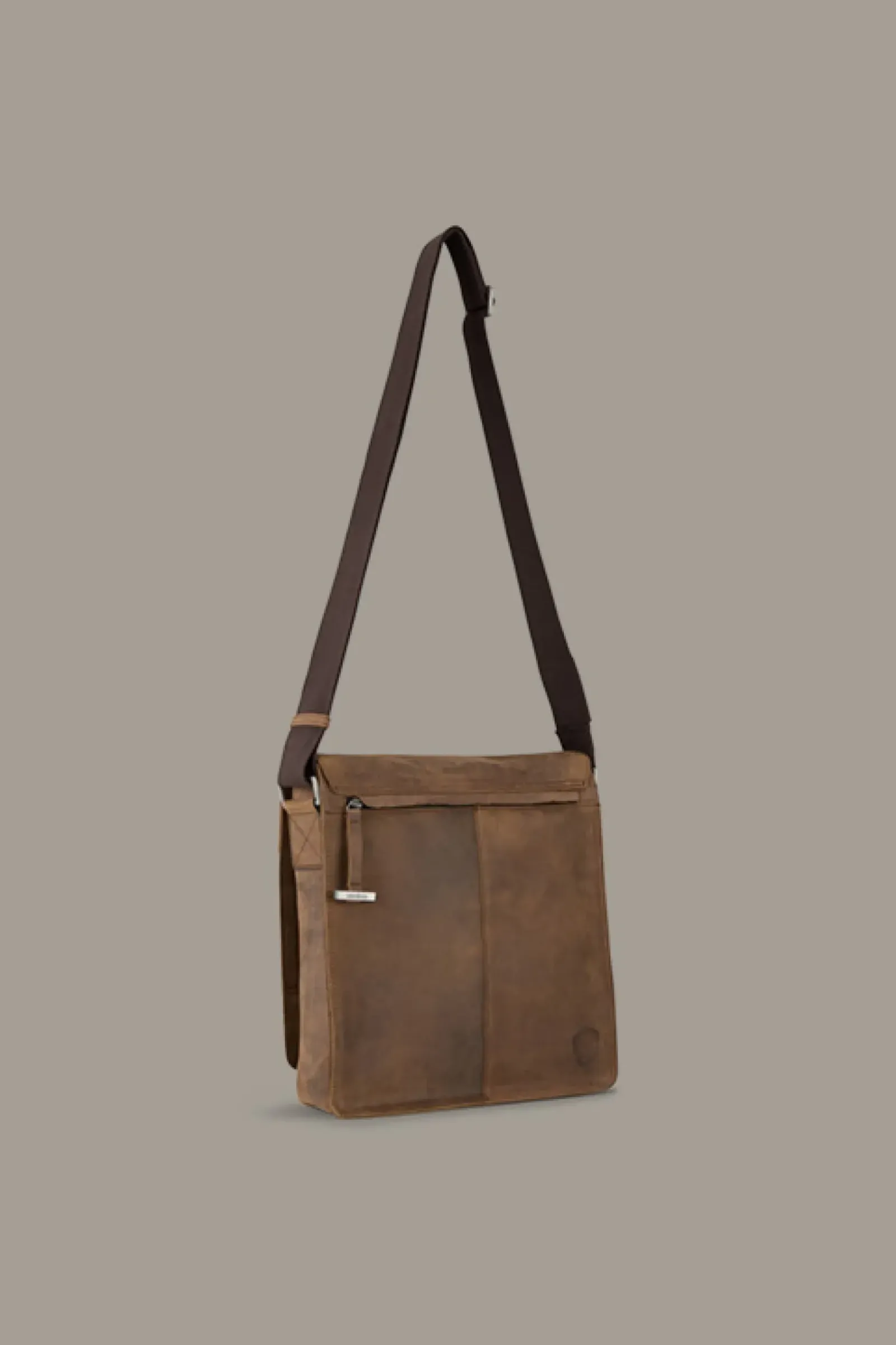 Fold-Over-Design aus Rindsleder im Vintage-Look: die Schultertasche Richmond Jeremy mit verdecktem Steckverschluss und coolen Label-Details.