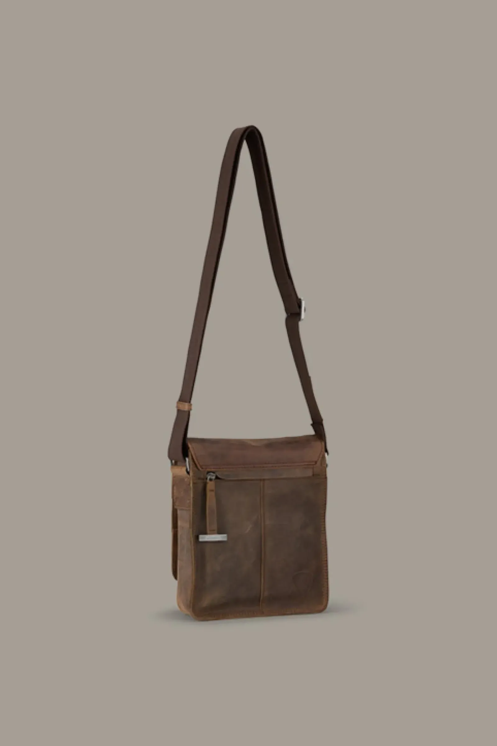 Fold-Over-Design aus Rindsleder im Vintage-Look: die Schultertasche Richmond Jeremy mit verdecktem Steckverschluss, coolen Label-Details und dekorativen Stitchings.