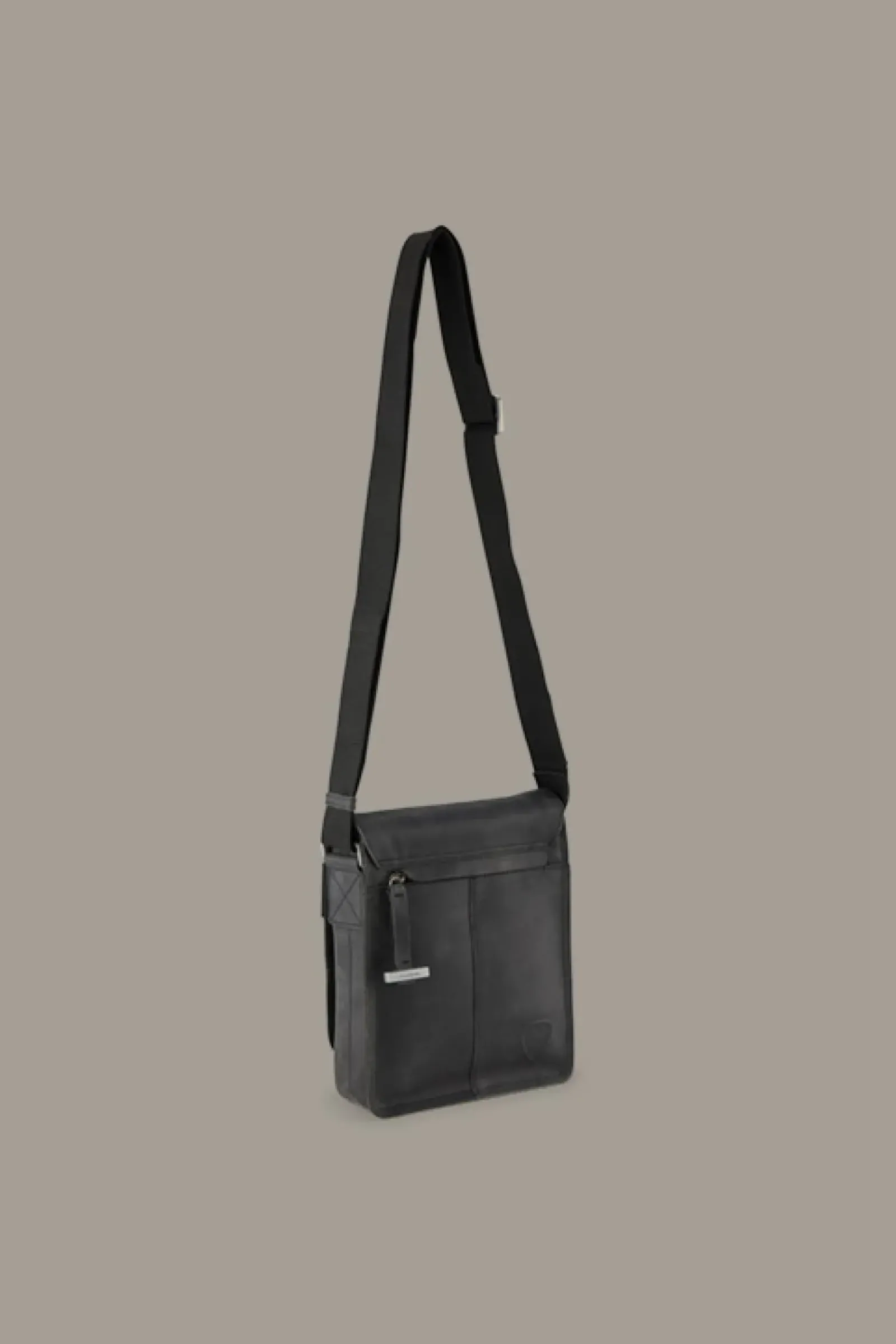 Fold-Over-Design aus Rindsleder im Vintage-Look: die Schultertasche Richmond Jeremy mit verdecktem Steckverschluss, coolen Label-Details und dekorativen Stitchings.