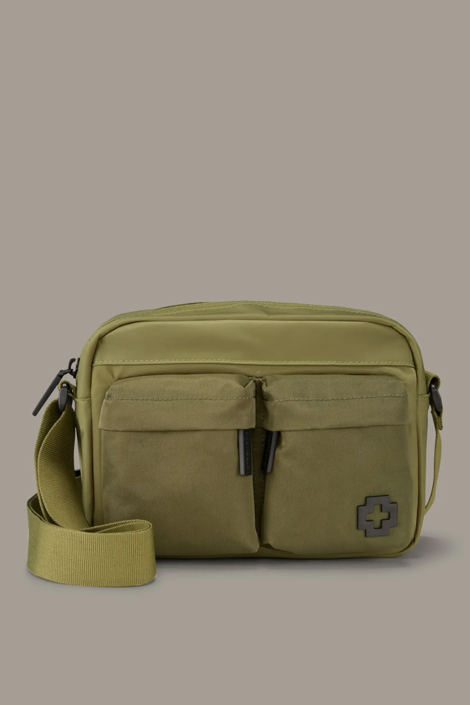 Mit aufgesetzten Fronttaschen im Duo-Design und Logo-Plakette: die Schultertasche Wood Street Oddd aus strapazierfähigem Nylon.