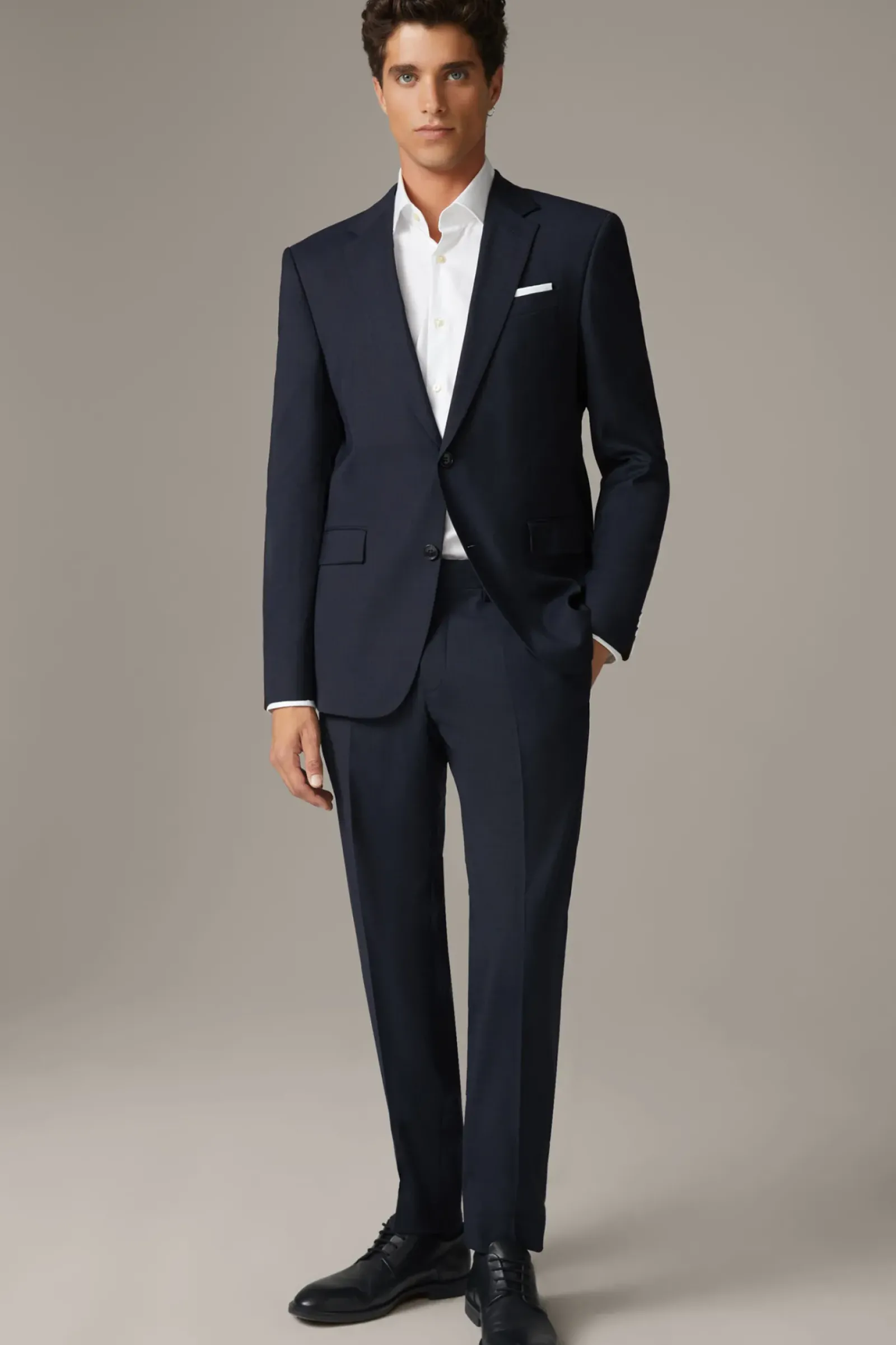 Business-Upgrade: Anzug Aidan-Max im modernen SLIM FIT aus Wool-Stretch. Das Sakko zeigt sich mit klassischem Revers und Pattentaschen, die Anzughose mit Bügelfalten.