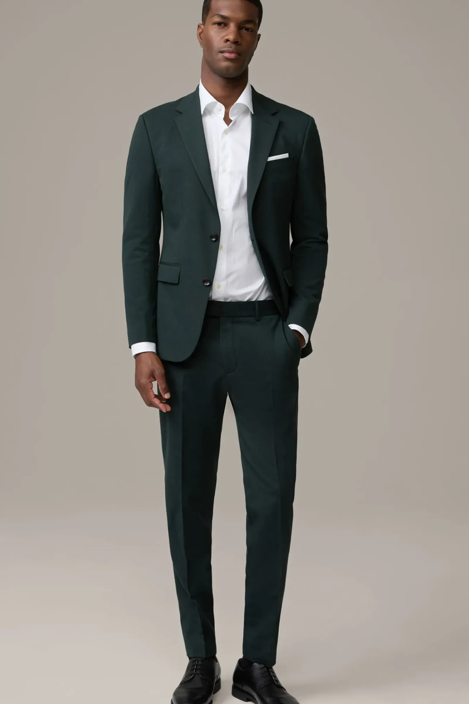 Smarter Look: der Anzug Aidan-Melwin aus angenehmem Woll-Stretch mit klassischen Details wie Reverskragen, Kissing-Buttons und Brustleistentasche. Die Anzughose rundet stimmig ab mit Bügelfalten und seitlichen Eingrifftaschen.