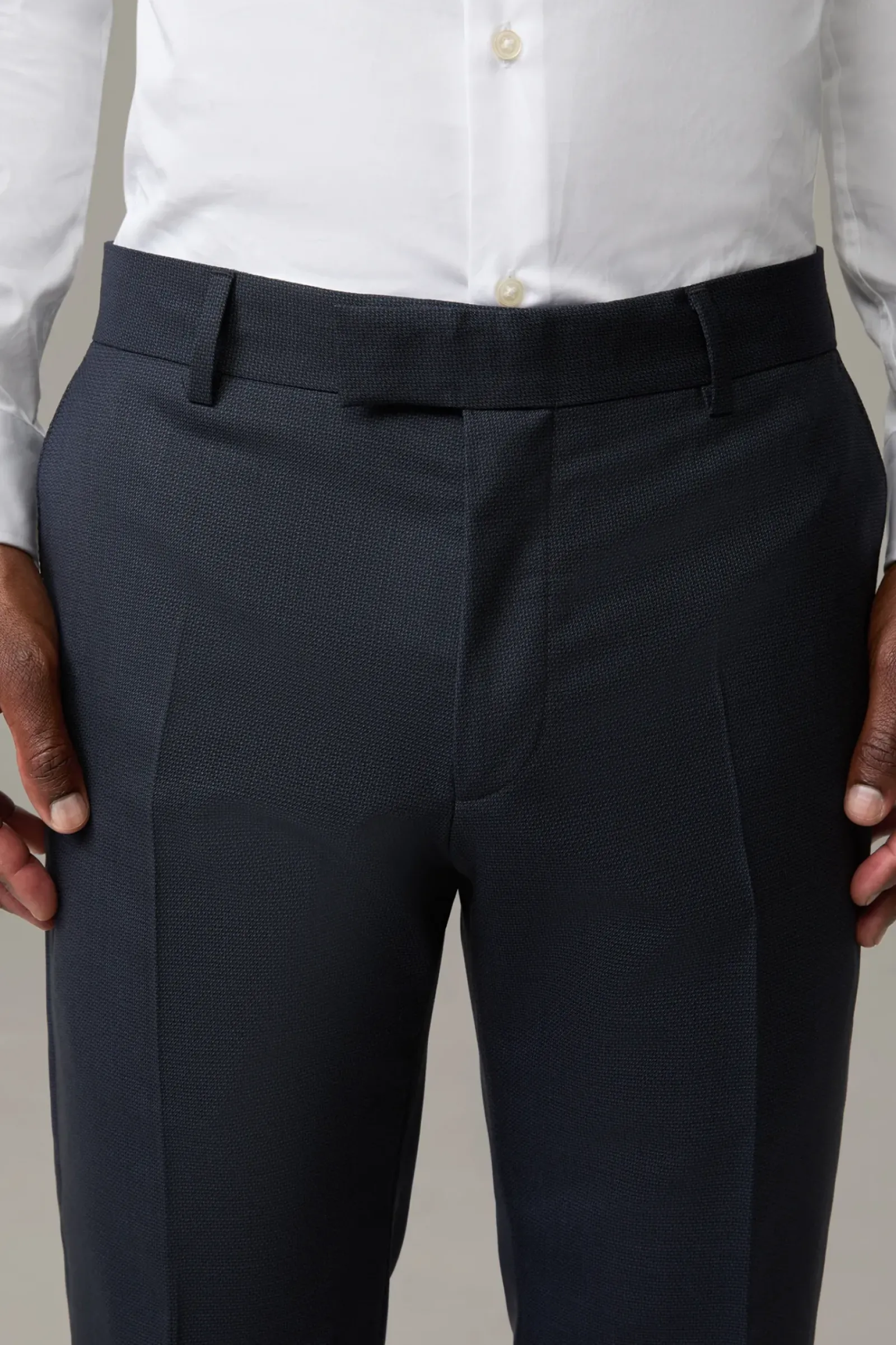 Smarter Style: der Anzug Aidan-Melwin aus italienischer Schurwolle mit Reverskragen, Logo-Pin und paspelierten Pattentaschen, ergänzt durch die Anzughose im klassischen Look mit Bügelfalte und verdeckter Verschlussleiste.