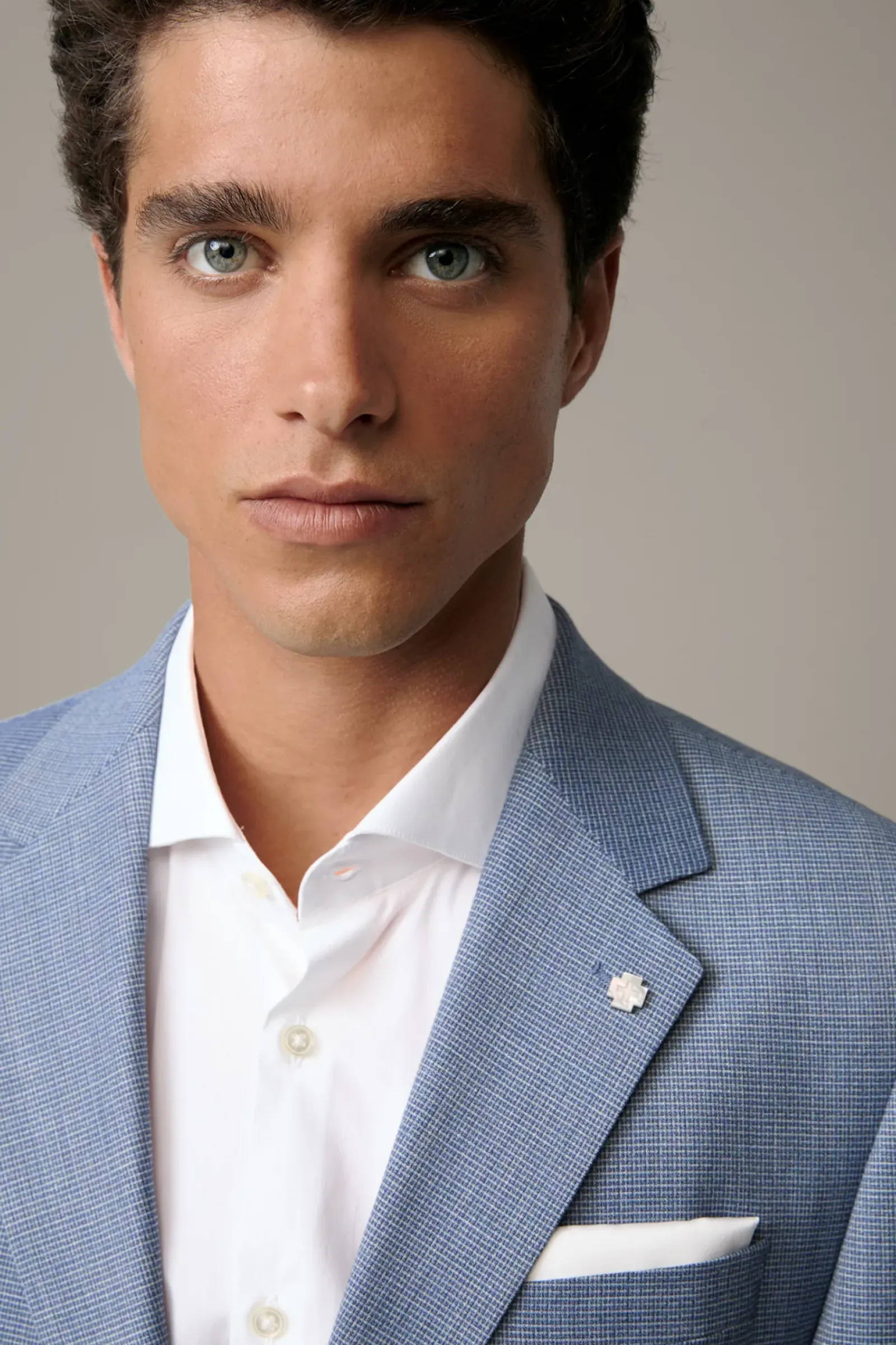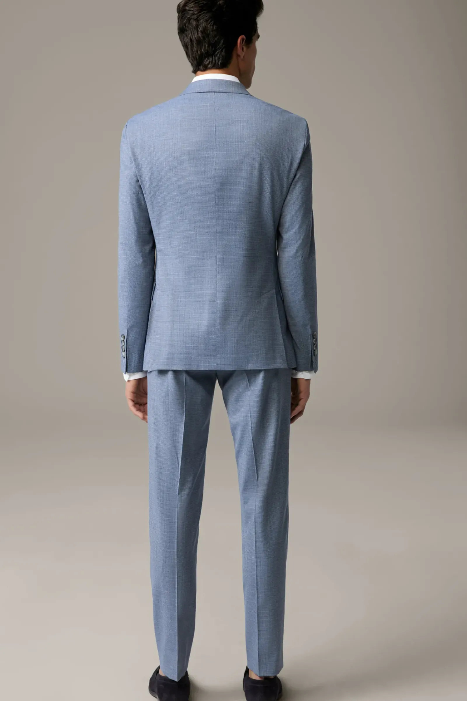 Smartes Muster-Finish: Der extraschmale Anzug Caidan Melwin überzeugt im italienischen Wool Blend. Sakko mit Pattentaschen und Label-Pin am Reverskragen, Anzughose mit klassischen Bügelfalten.