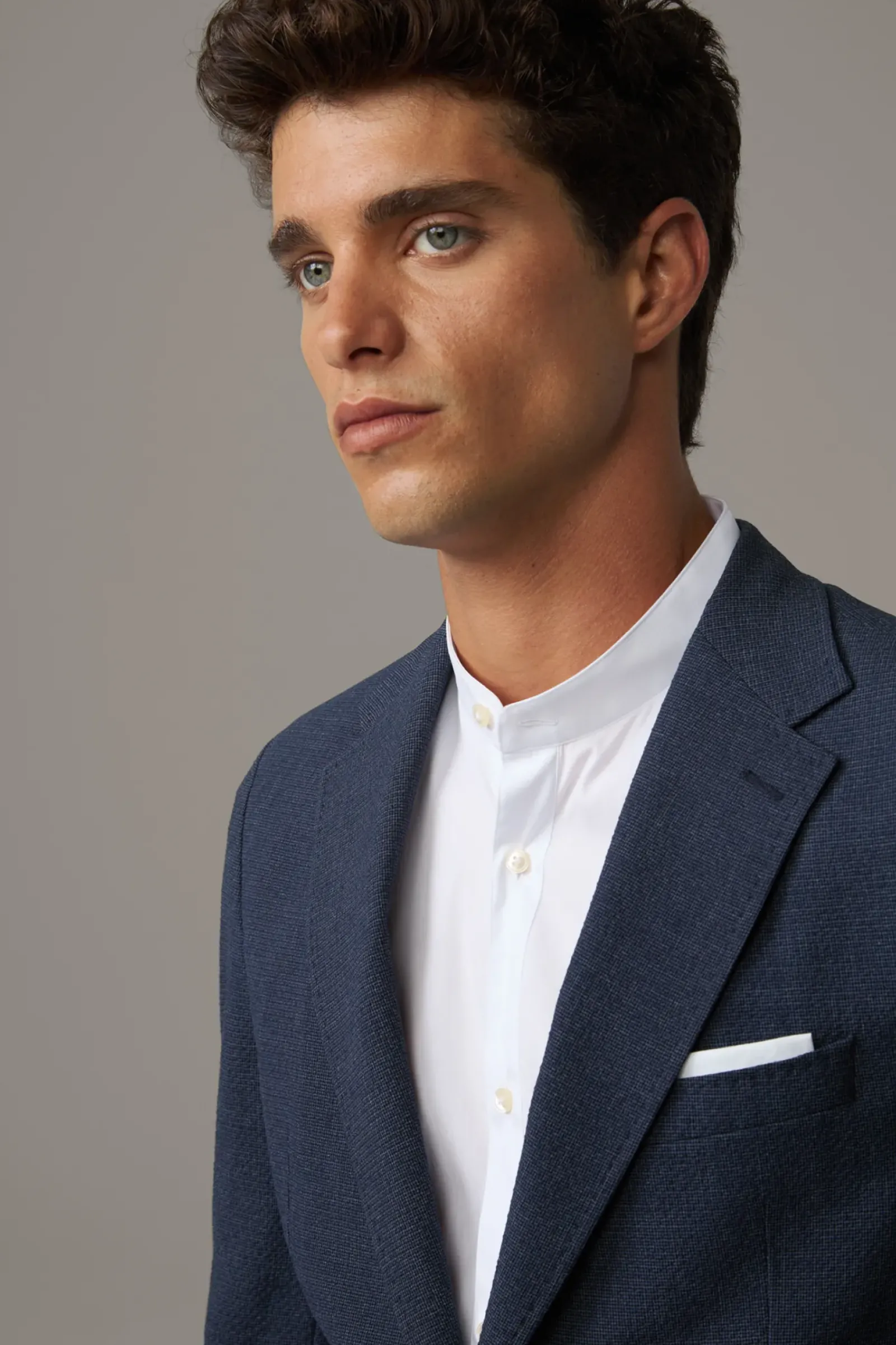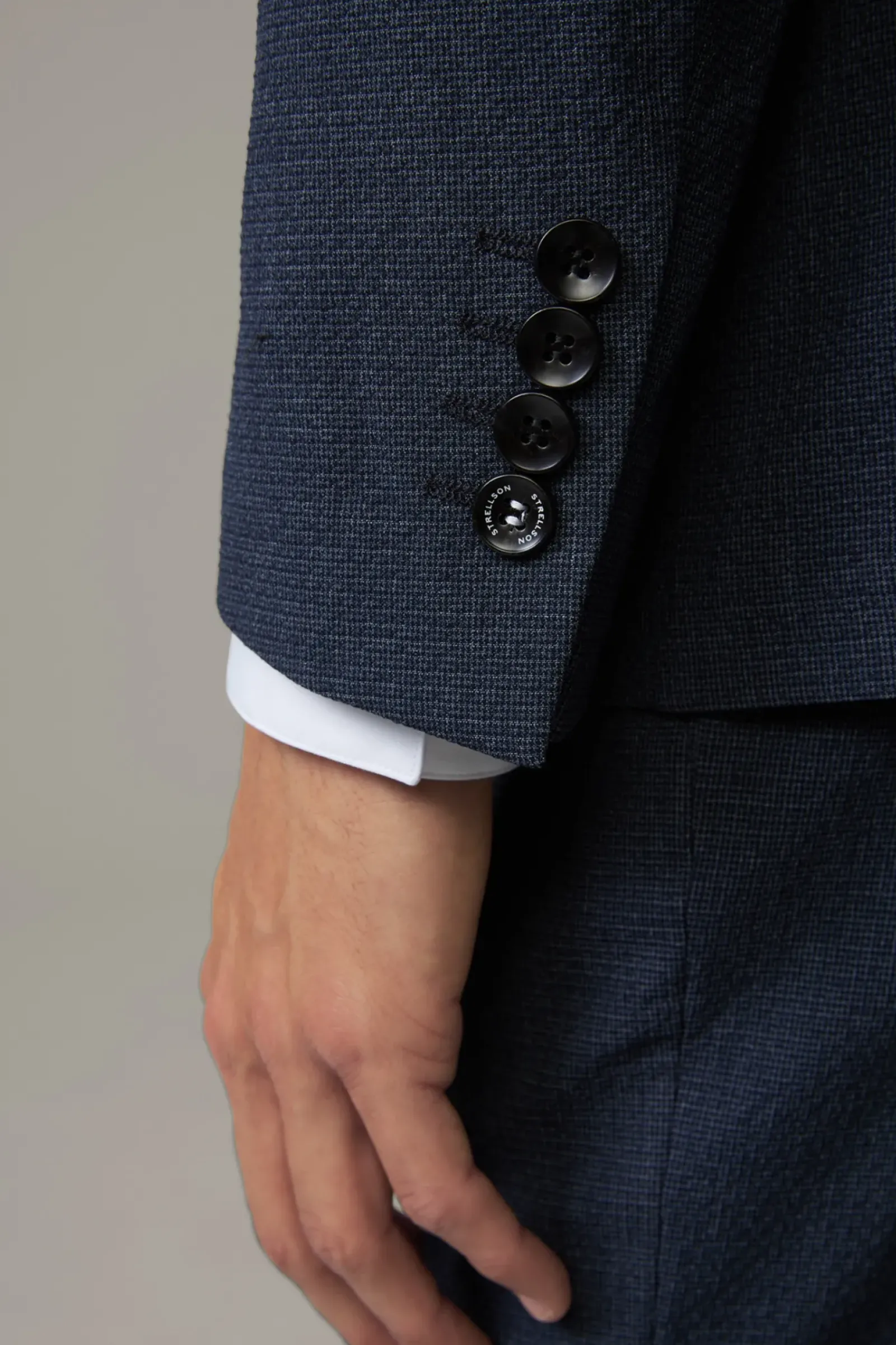 Smarter Look: der Anzug Acon-Luc in angenehmer Stretch-Qualität und melierten Design. Die Anzughose überzeugt mit paspelierten Taschen und Bügelfalten, Sakko mit Pattentaschen und Bewegungsschlitzen im Duo-Design.