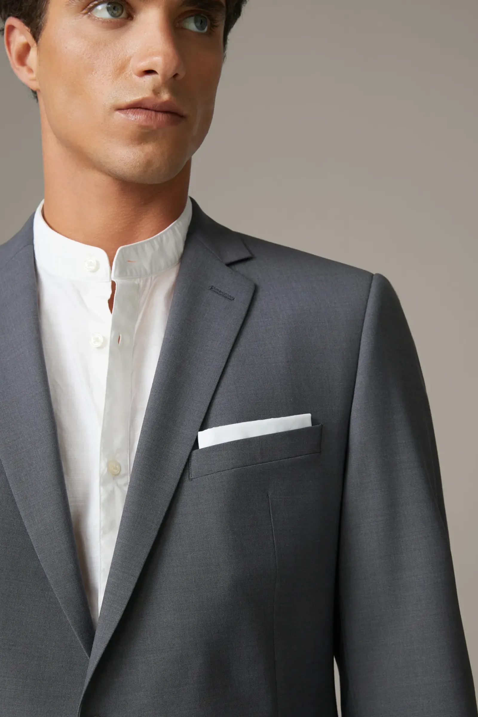 Maximum Performance und Komfort: der Flex Cross Anzug Allen-Mercer im stretchigen Woll-Mix. Das Revers und Kissing-Buttons heben das Design hervor, ergänzt durch Bügelfalten an der Hose.