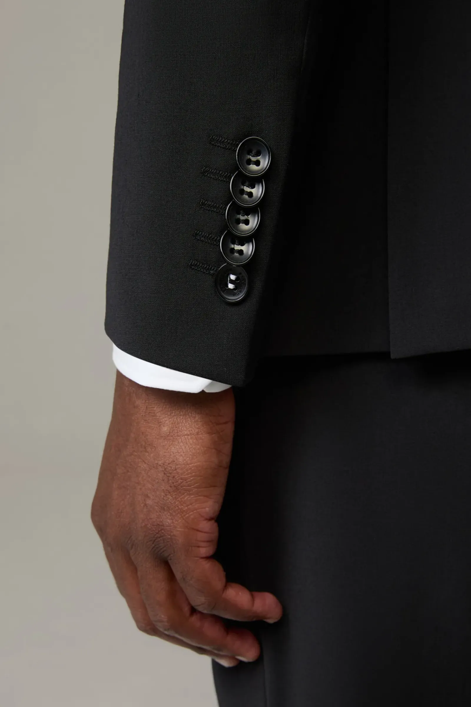 Maximum Performance und Komfort: der Flex Cross Anzug Allen-Mercer im stretchigen Woll-Mix. Das Revers und Kissing-Buttons heben das Design hervor, ergänzt durch Bügelfalten an der Hose.