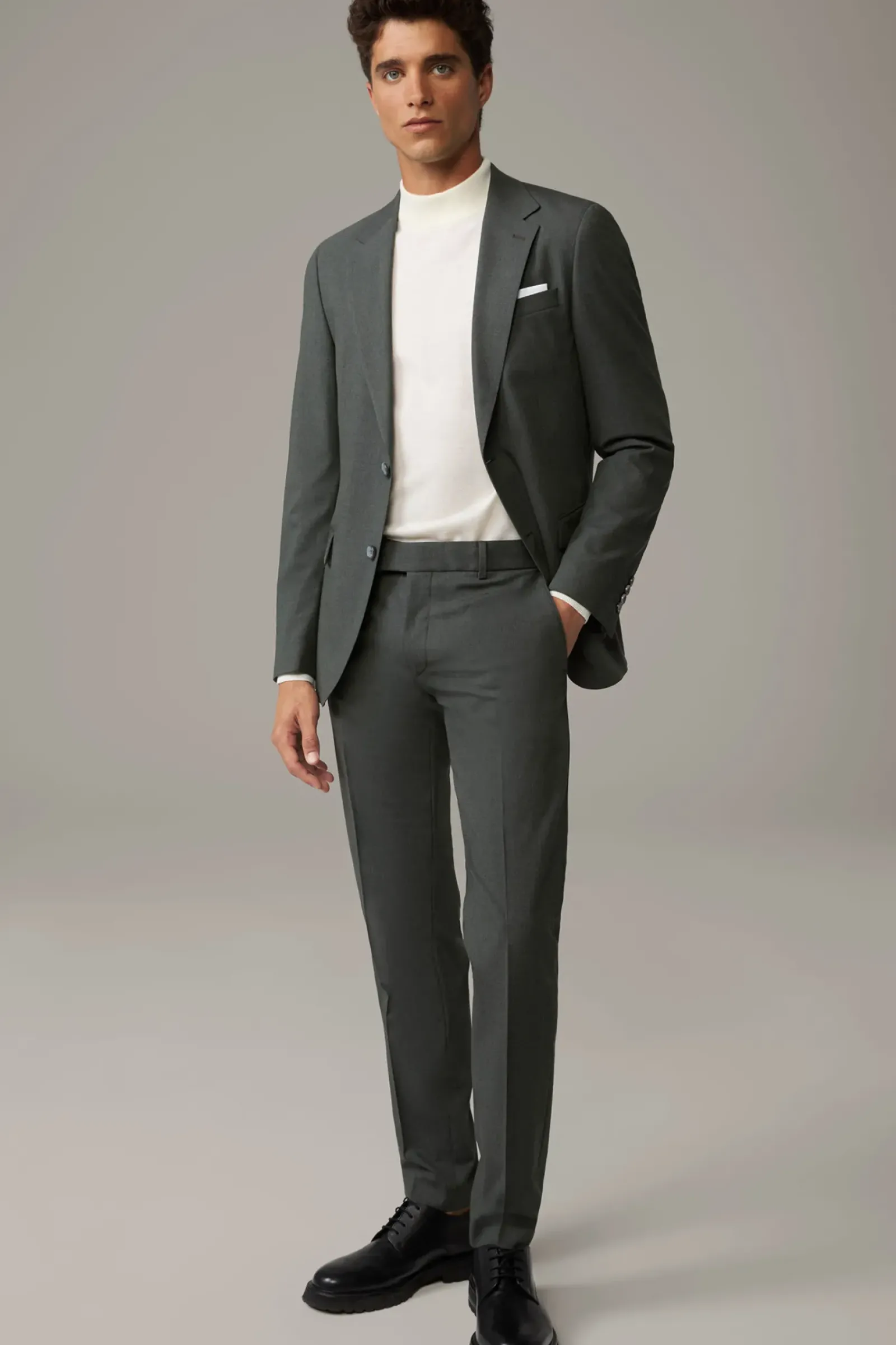 Im italienischen Wool Stretch überzeugt der Anzug Alzer-Melwin mit angenehmem Tragekomfort. Sakko mit Brustleistentasche und Bewegungsschlitzen im Duo-Design, Anzughose mit verdecktem Verschluss und klassischen Bügelfalten.