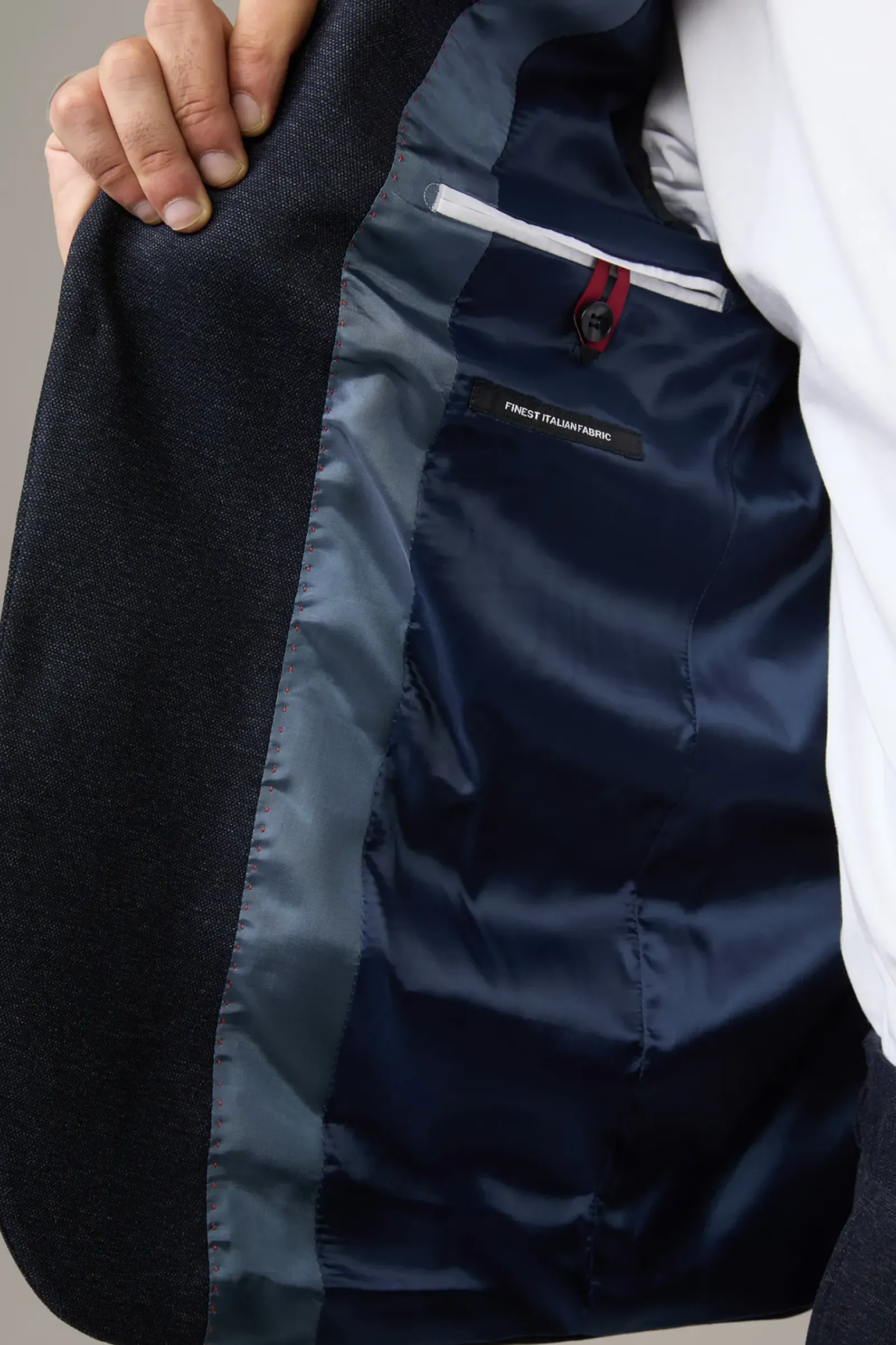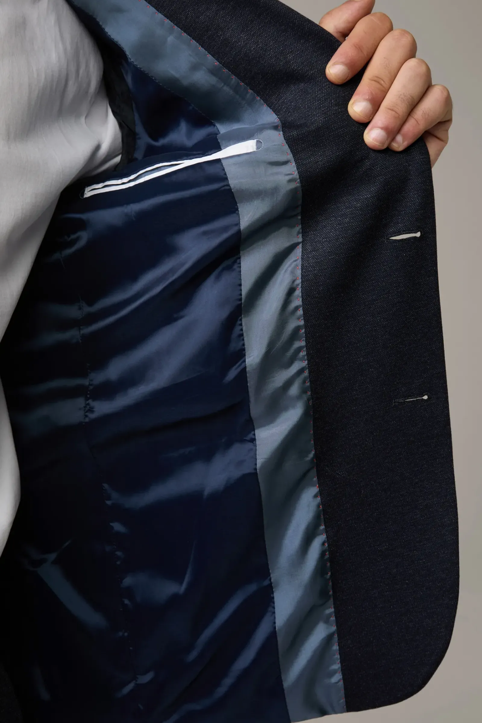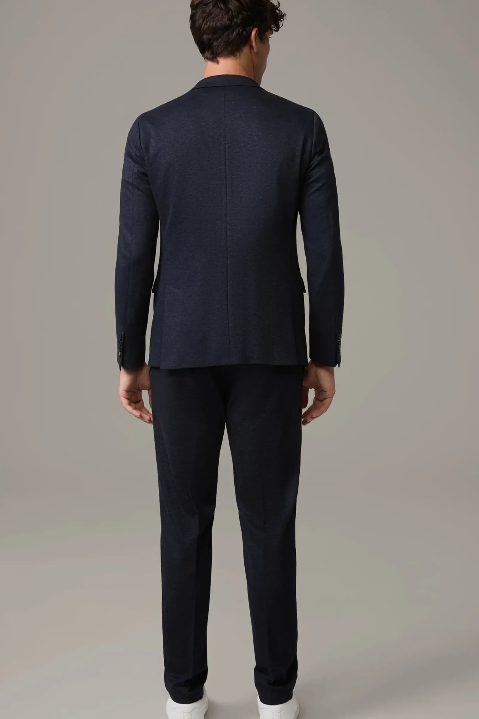 Im Einreiher-Design mit elastischem Bundeinsatz an der Chino: der Anzug Alzer-Tius. Mit paspelierten Pattentaschen und Zierärmelschlitz mit Knöpfen. Aus Viskose-Stretch mit fließendem Futter.