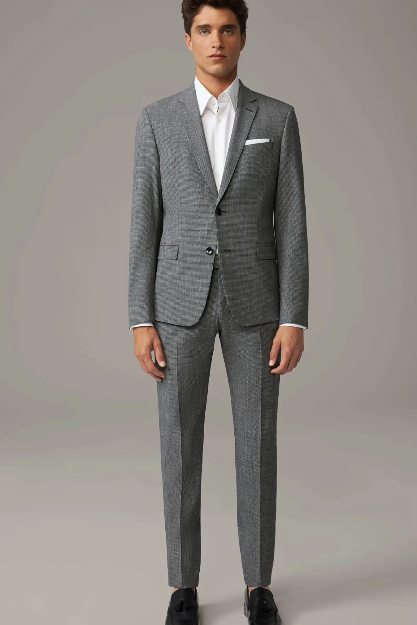 Im stretchigen Viskose-Mix und in extra schmaler Passform überzeugt der Anzug Caleb-Madden. Sakko mit Bewegungsschlitze im Duo-Design, ergänzt durch die smarte Anzughose mit klassischen Bügelfalten.