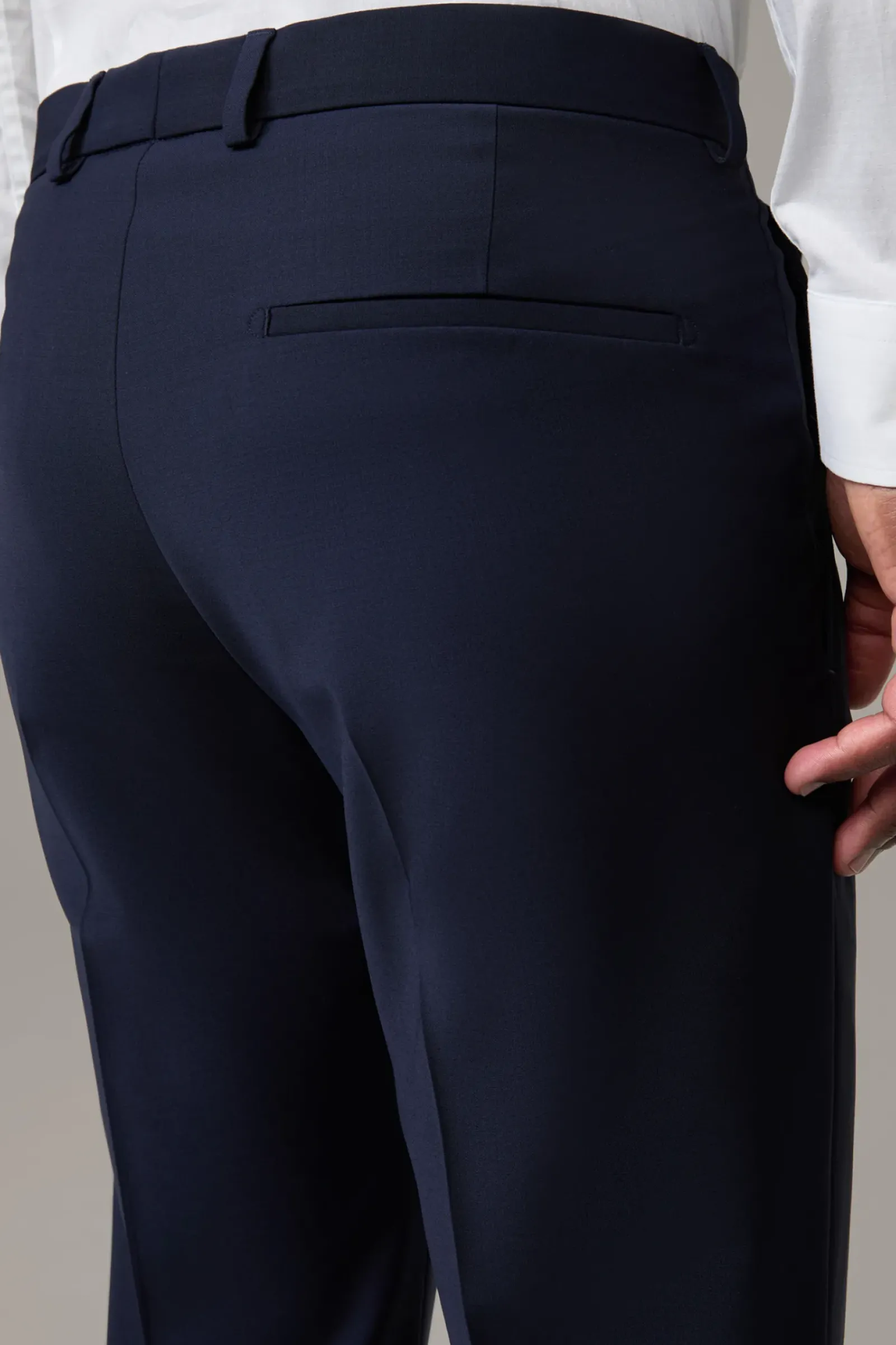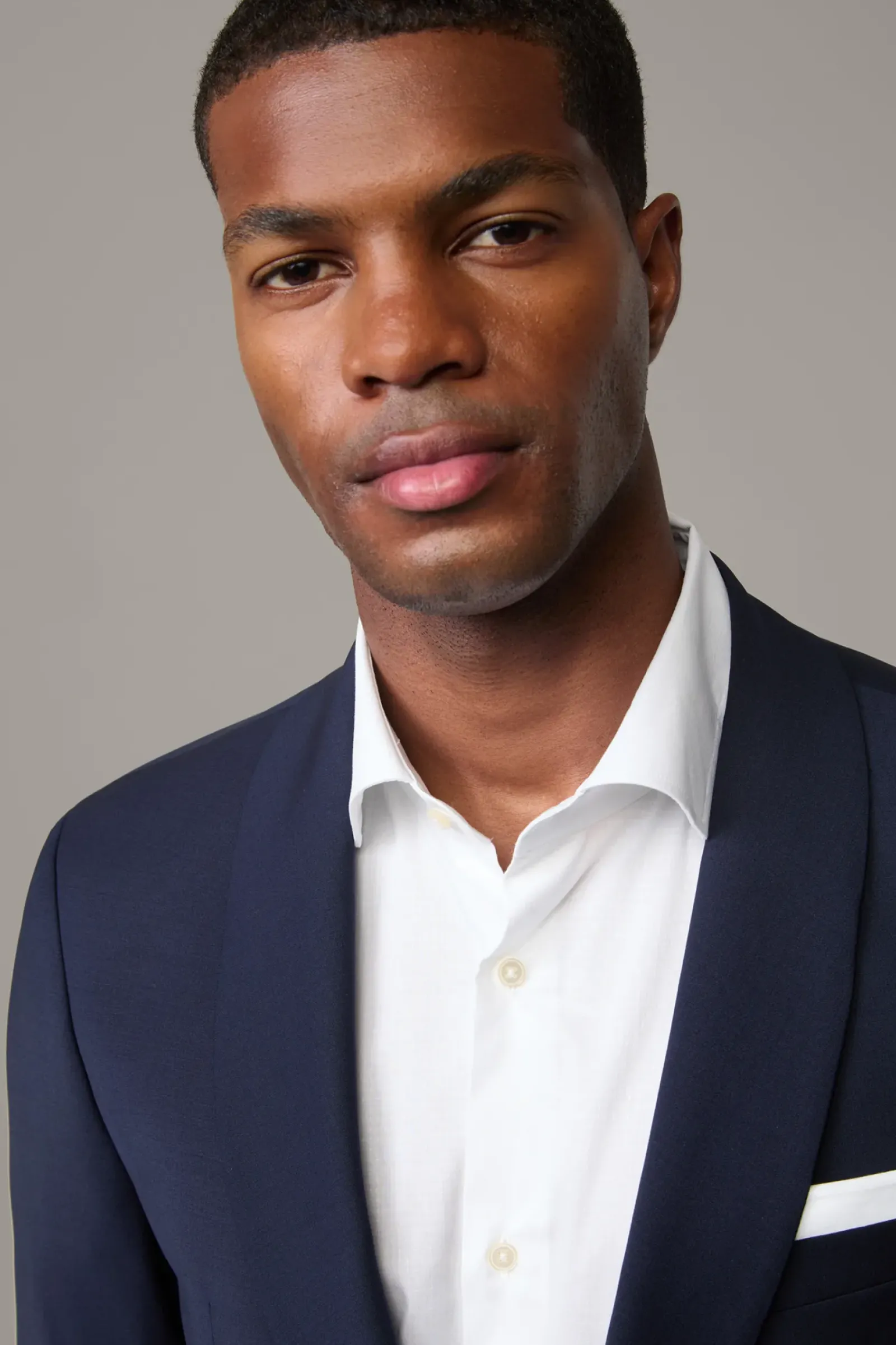 Mit modernem Schalkragen-Revers und paspelierten Eingrifftaschen am Sakko und einer Anzughose mit schmalem Beinverlauf und Bügelfalten überzeugt der Anzug Amur-Madden. Glatter Wool-Stretch.