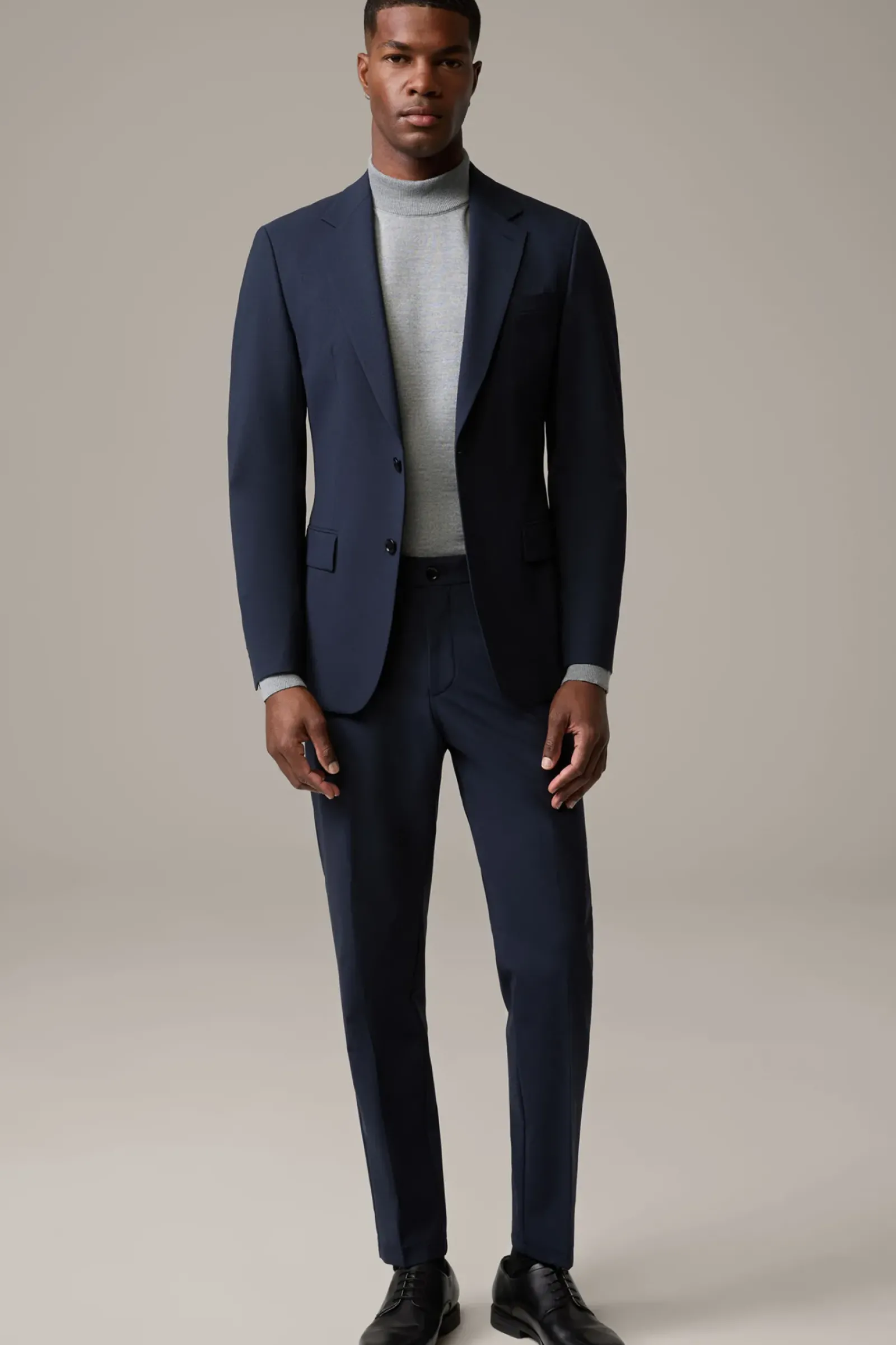 Überzeugt aus italienischem Schurwollstretch by Marlane: der Anzug Caidan-Tius im extraschmalen Design. Anzughose mit teilelastischem Bund und Paspelgesäßtaschen, Sakko mit doppeltem Bewegungsschlitz.