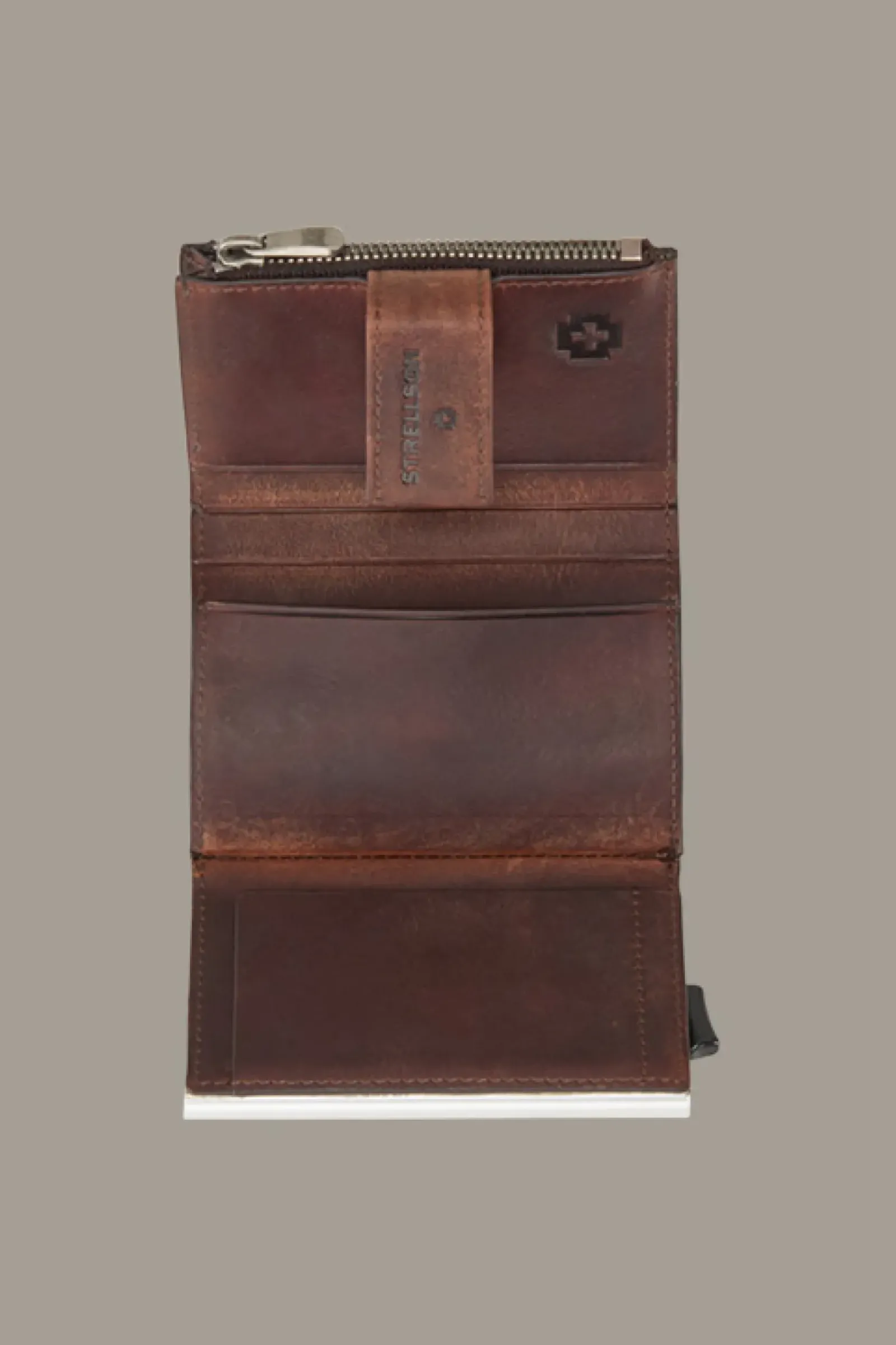 Everywhere you go: das E-Cage-Karten-Etui C-Four Brick Lane aus Glattleder im Vintage-Look mit Aluminium-Case für maximalen RFID-Schutz. Kartenfächer und ein Schein- sowie Münzfach ergänzen das praktikable Accessoire.