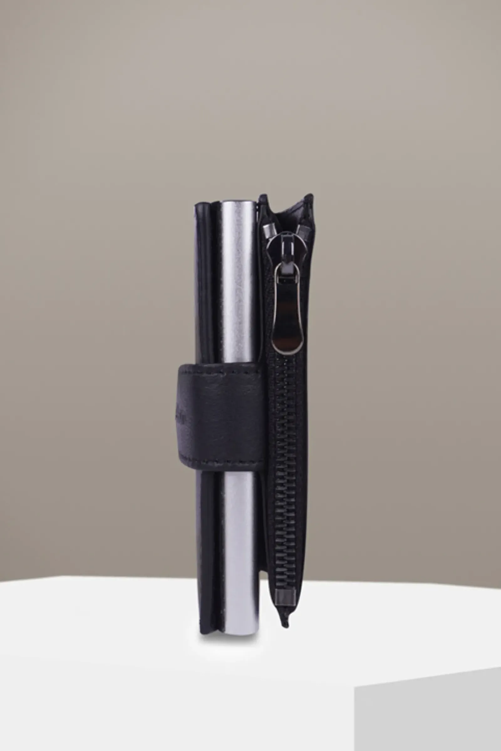 Smart und stilvoll: das E-Cage-Karten-Etui C-Four Carter aus edlem Glattleder mit Aluminium-Case für maximalen RFID-Schutz. Diverse Kartenfächer und ein Schein- sowie Münzfach ergänzen das praktikable Accessoire.