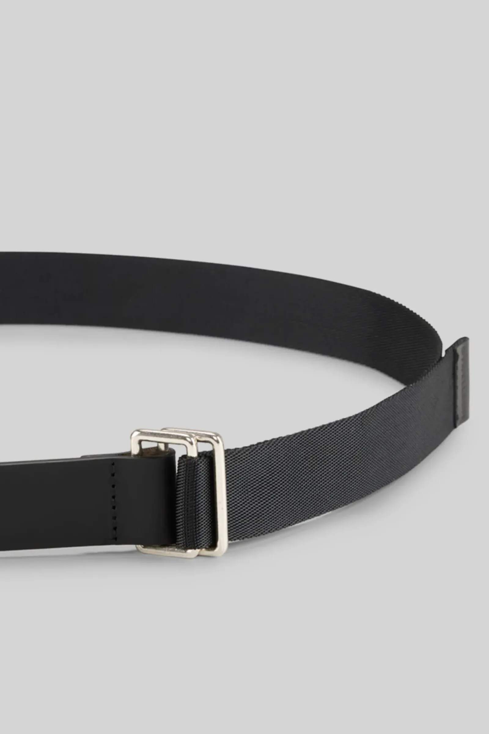 Urbanes Styling-Accessoire: der Gürtel im gewebten Design mit Lederpartien und Logo-Prägung. Zu schließen mit doppelter Ringschnalle.