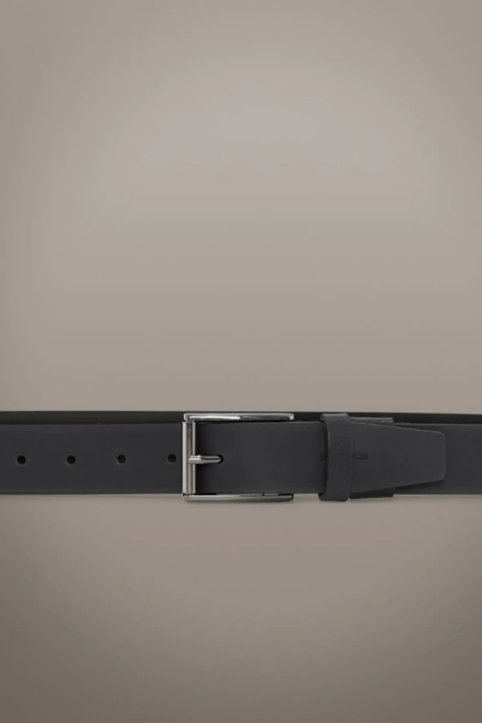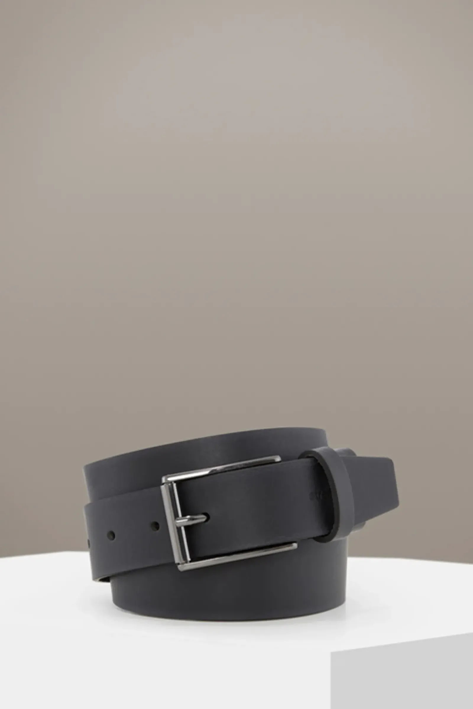 Der Ledergürtel in matter Optik mit glänzender Dornschließe, schmaler Schlaufe und abgerundeten Enden steht für klassische Eleganz im Alltag.
