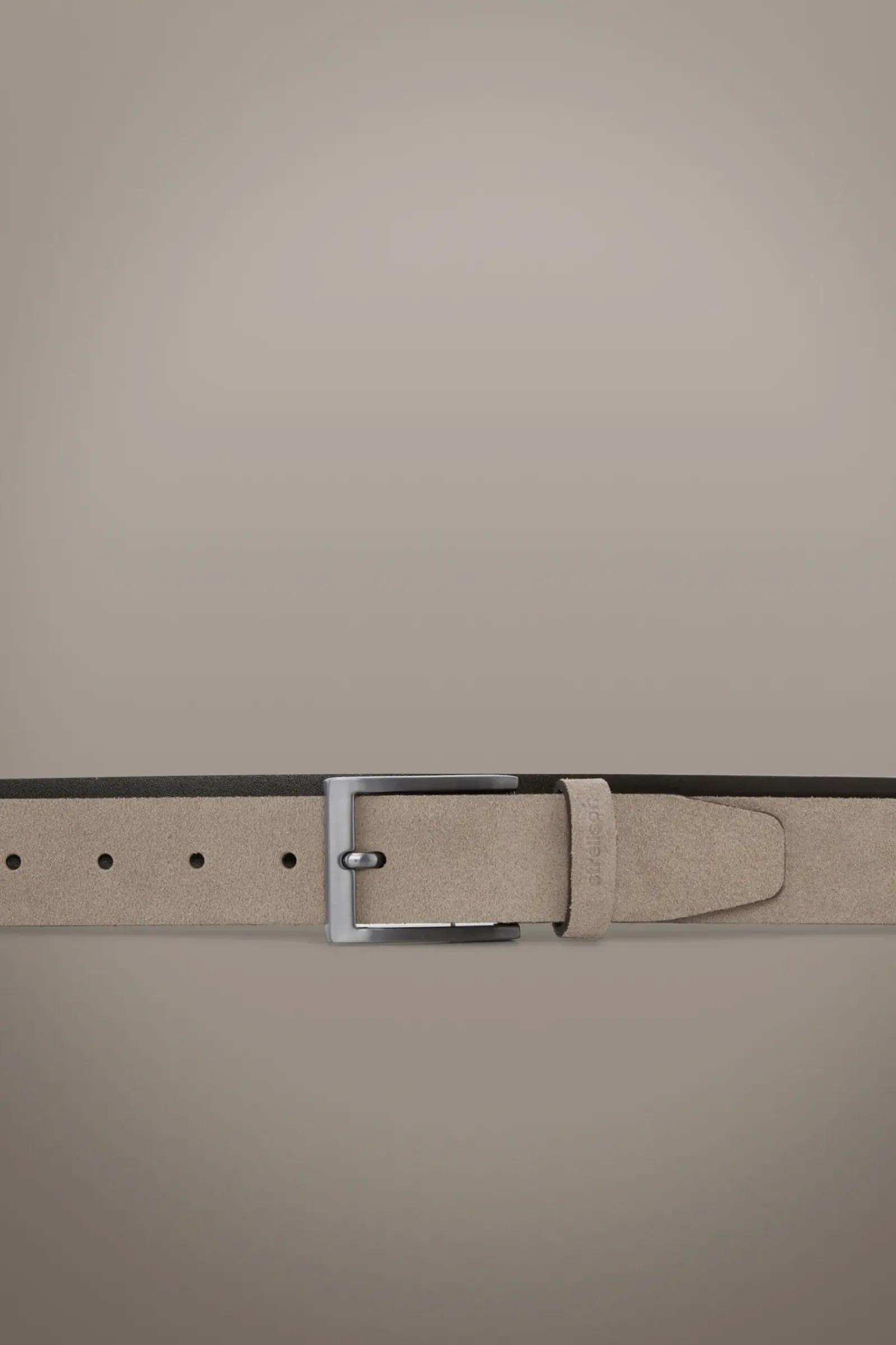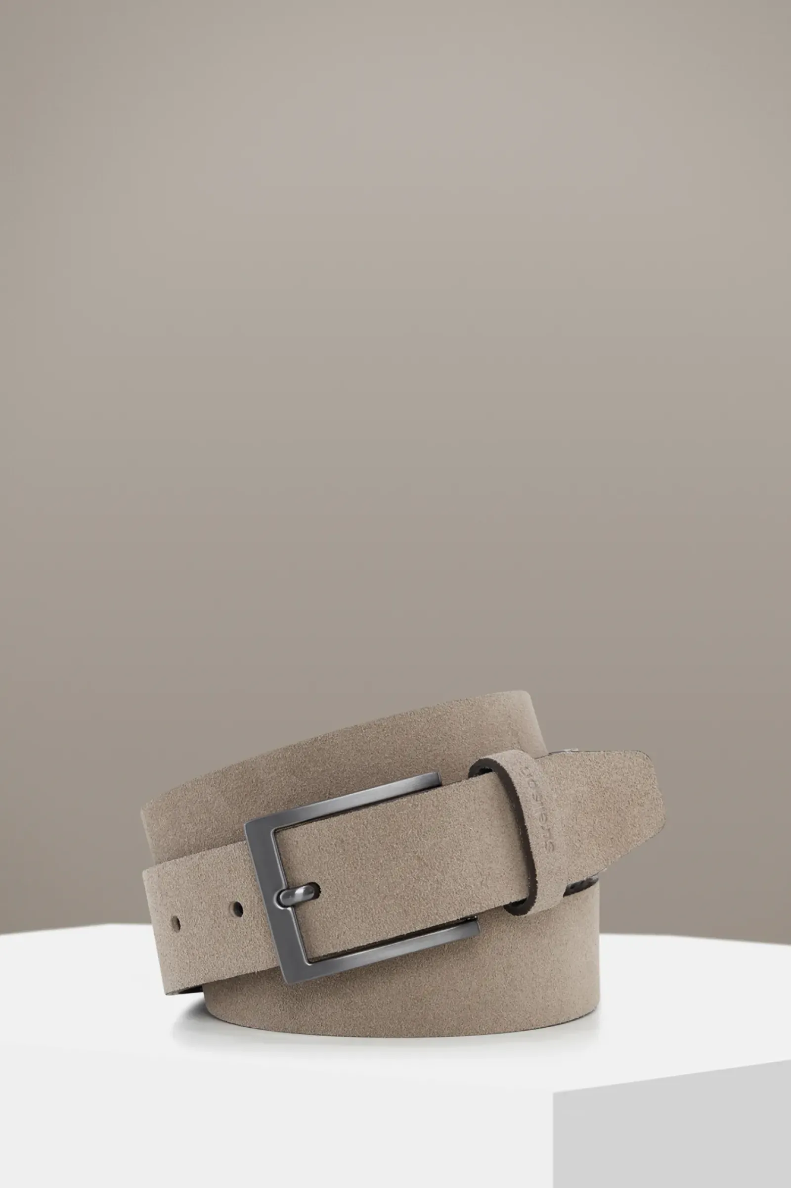 Der Gürtel aus reinem Veloursleder zeigt sich als elegantes Accessoire. Individuell weitenverstellbar mit klassischer Dornschließe und Schlaufe vereint das Piece Funktionalität und Design.