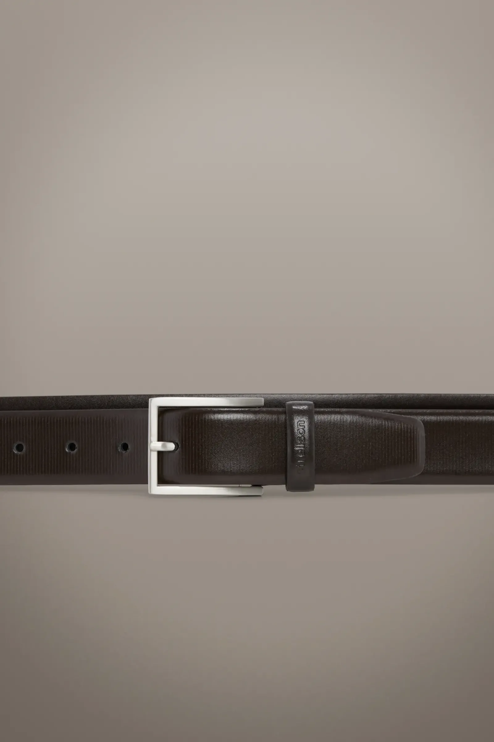 Aus purem Leder mit gebrushter Dornschließe ergänzt der Ledergürtel die maskuline Garderobe. Mit feiner Prägung und leicht glänzender Optik passt das Item zum Business- oder Freizeit-Look.
