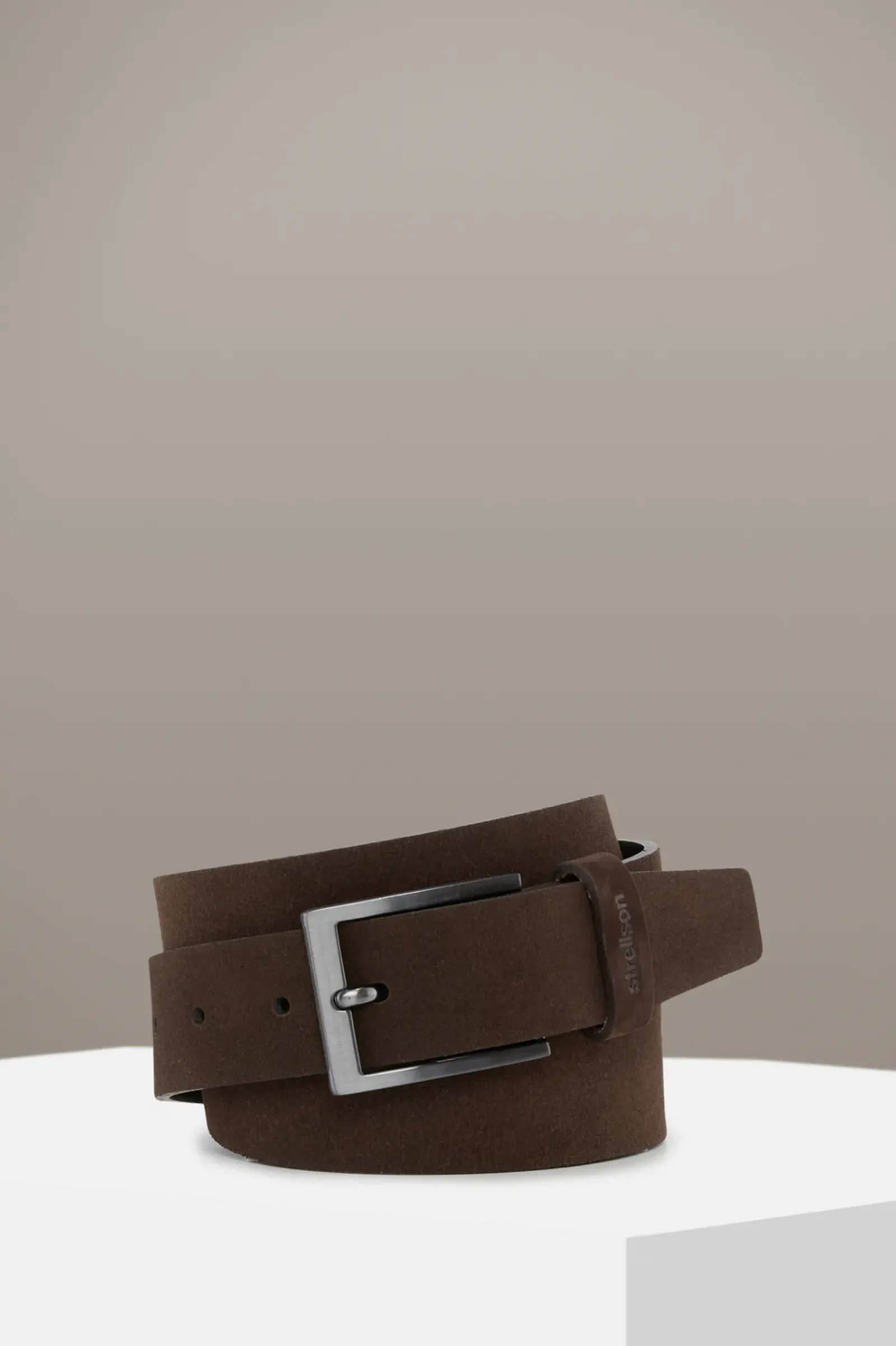 Der Gürtel aus reinem Veloursleder zeigt sich als elegantes Accessoire. Individuell weitenverstellbar mit klassischer Dornschließe und Schlaufe vereint das Piece Funktionalität und Design.