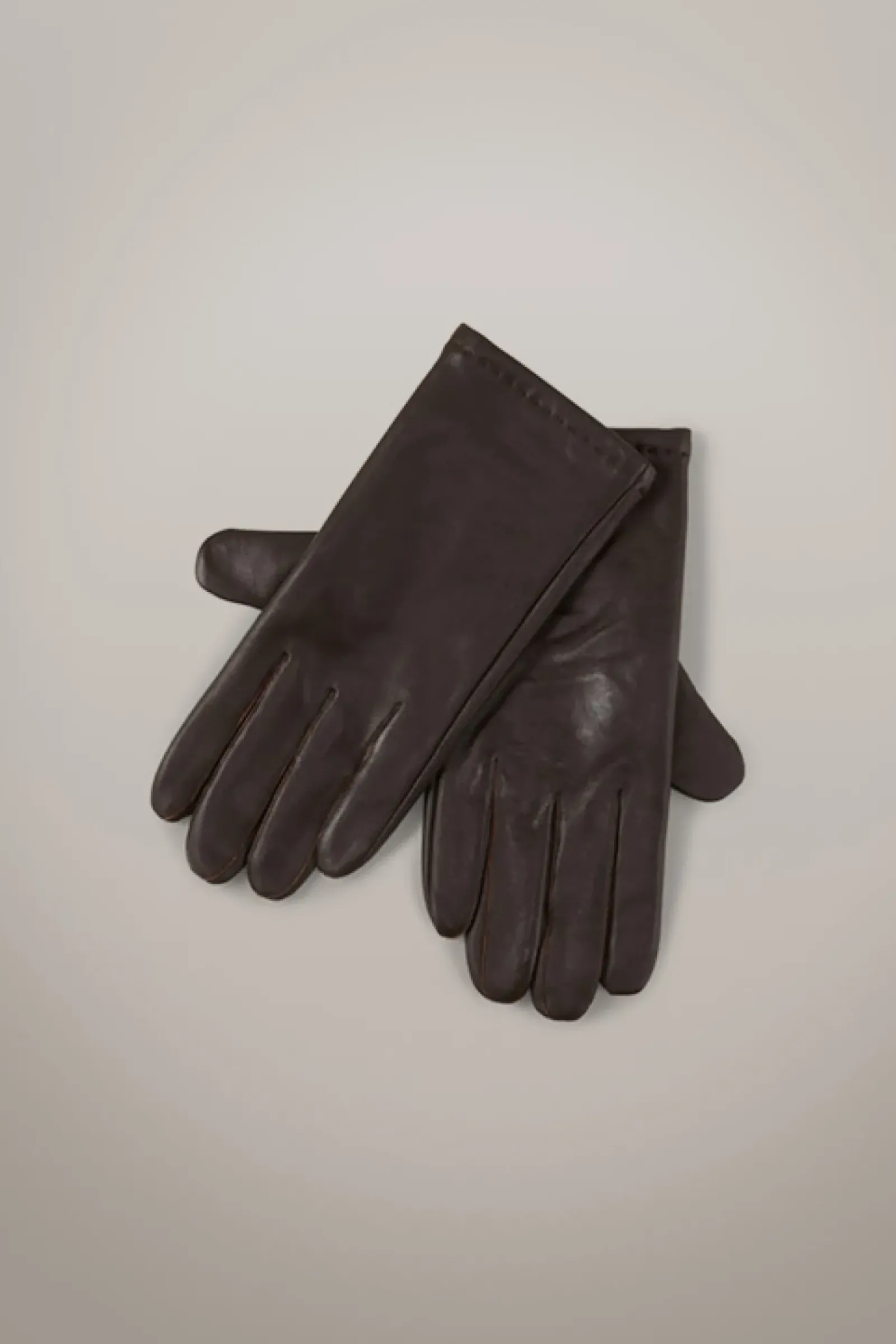 Klassische Handschuhe aus glattem Nappaleder mit wärmendem Futter. Tonige Nähte und die Logo-Prägung an der Unterseite der Öffnung unterstreichen die zeitlose Eleganz des Accessoires.