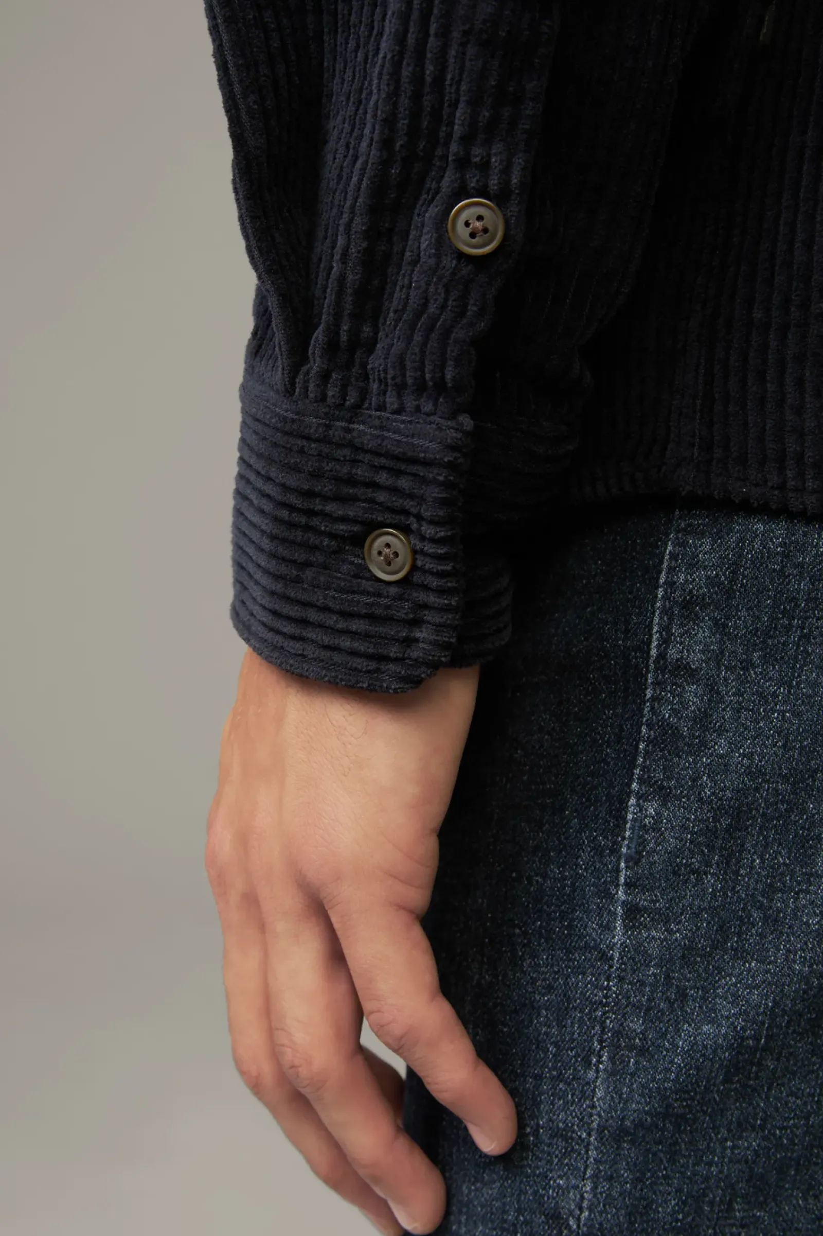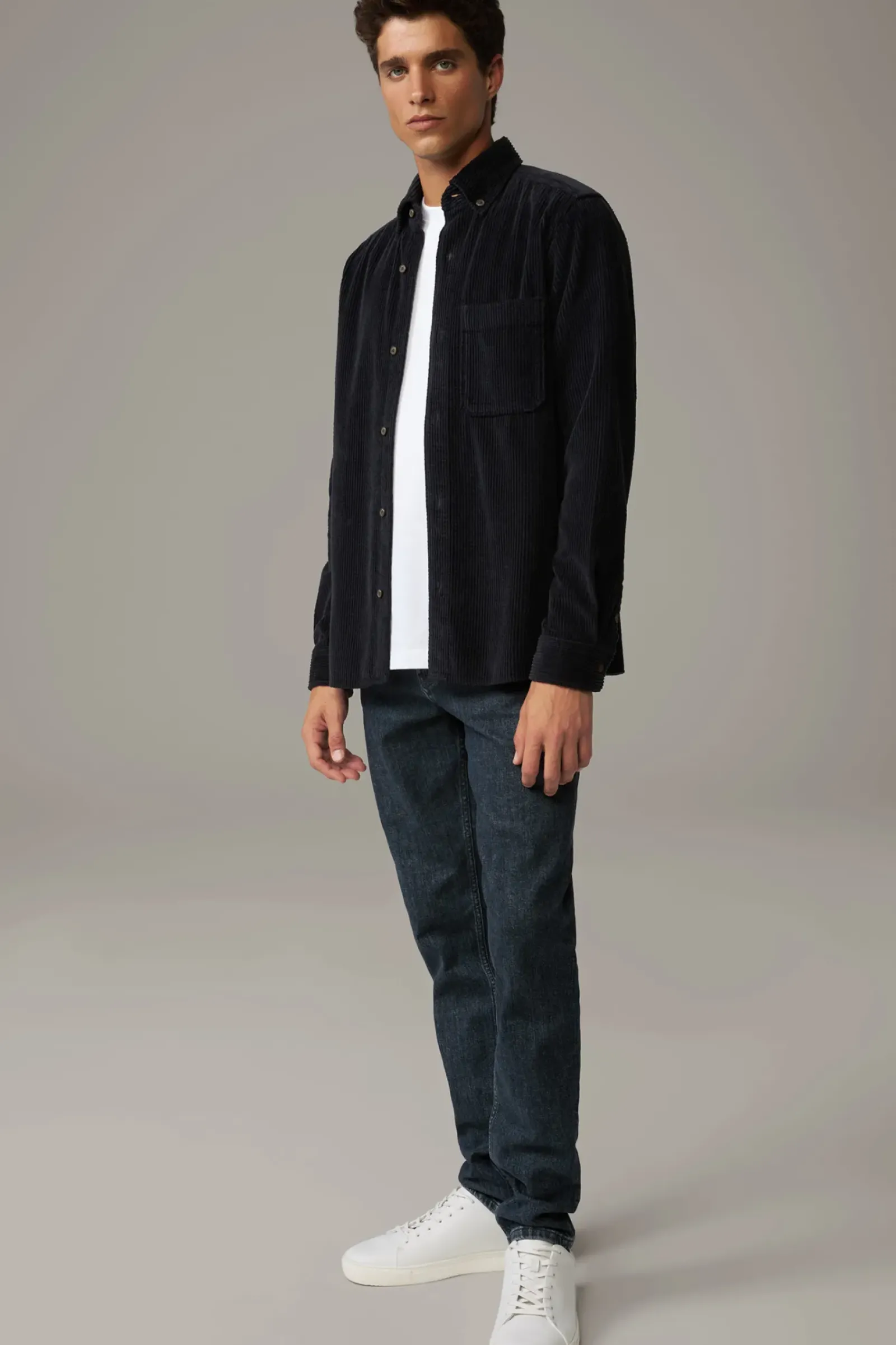 Casual Essential: das Cord-Hemd Nero aus reiner Baumwolle. Eine durchgehende Knopfleiste und die Manschettenärmel geben einen klassischen Look, modern ergänzt durch den Button-Down-Kragen.