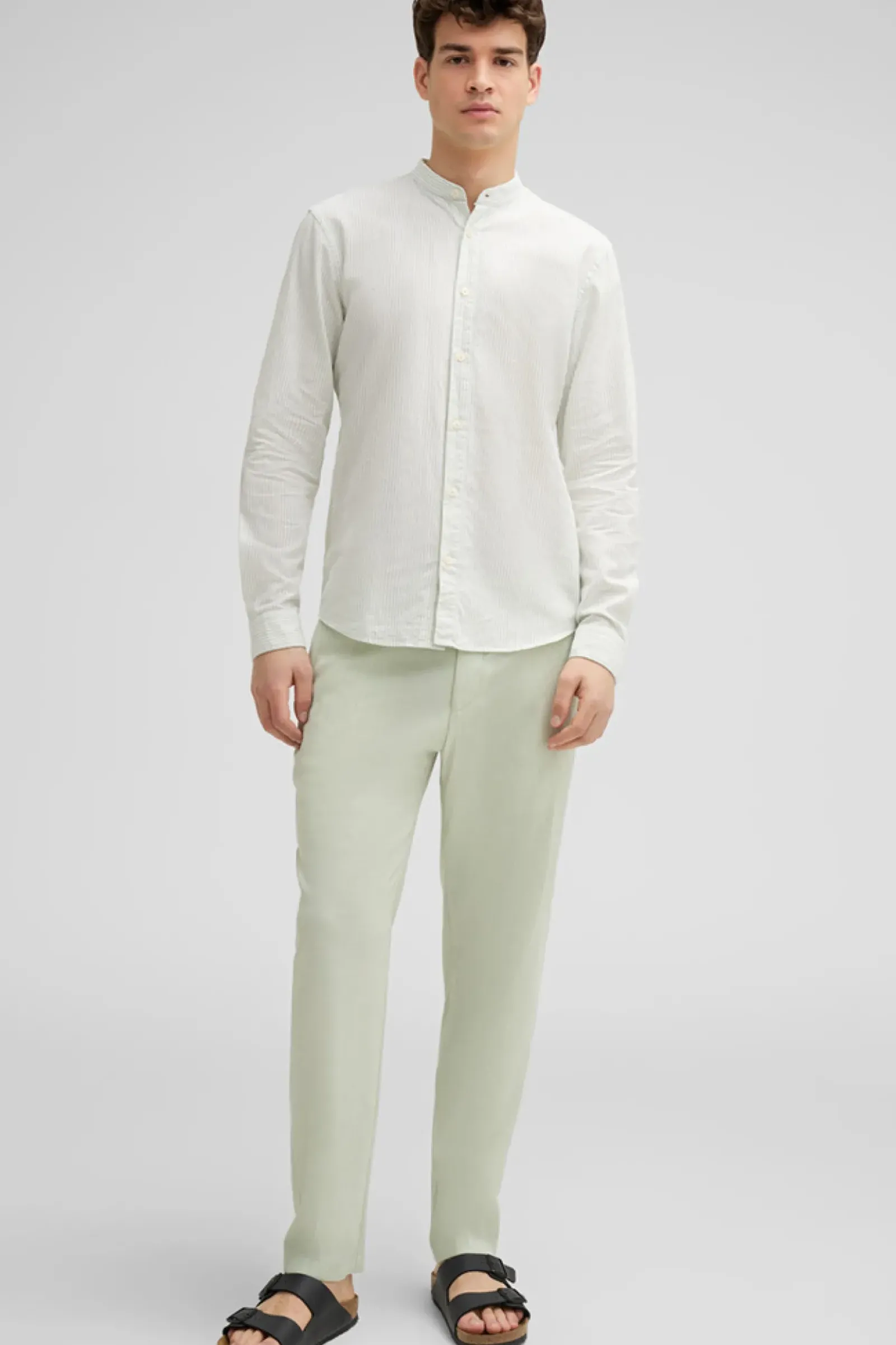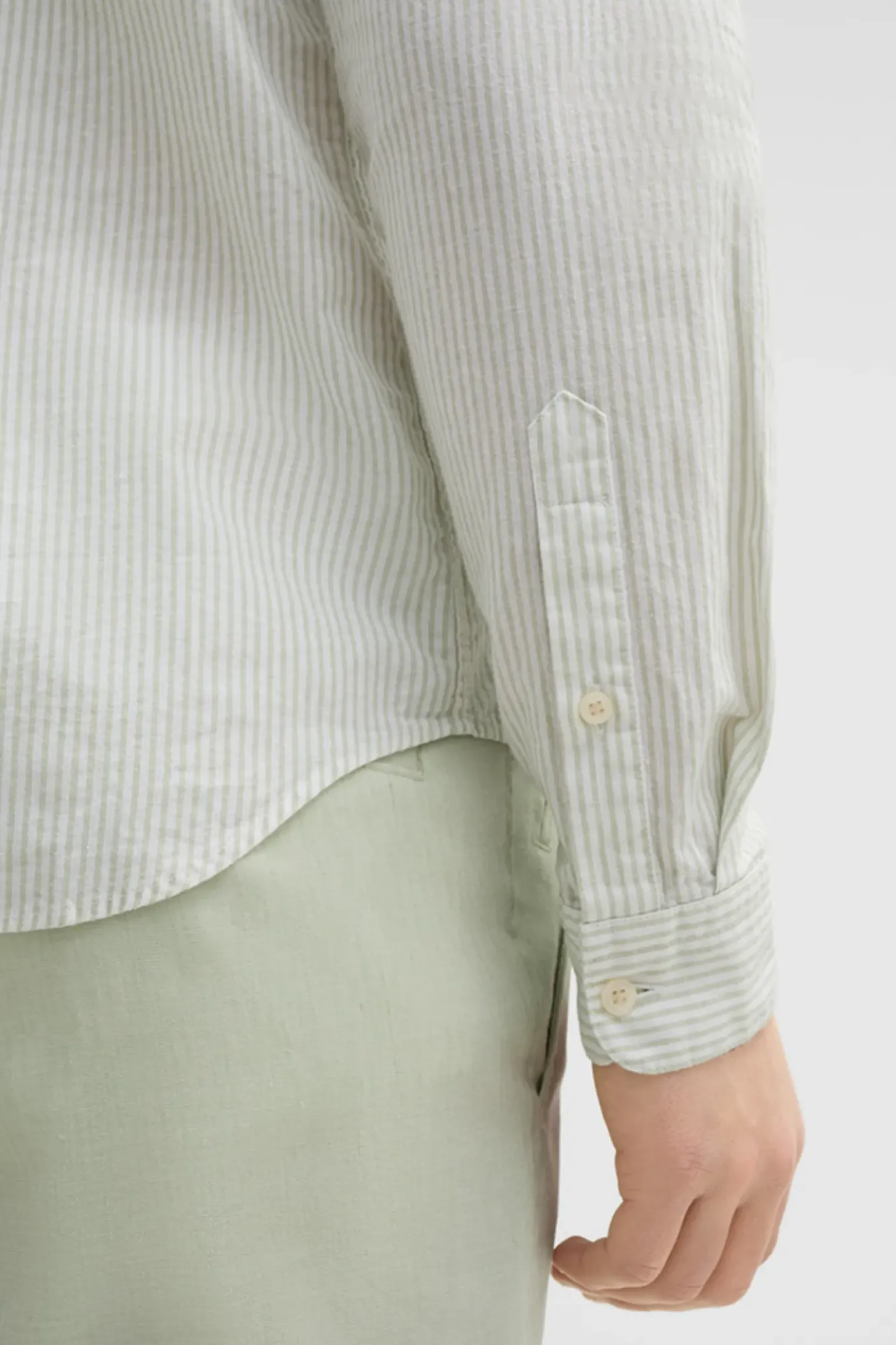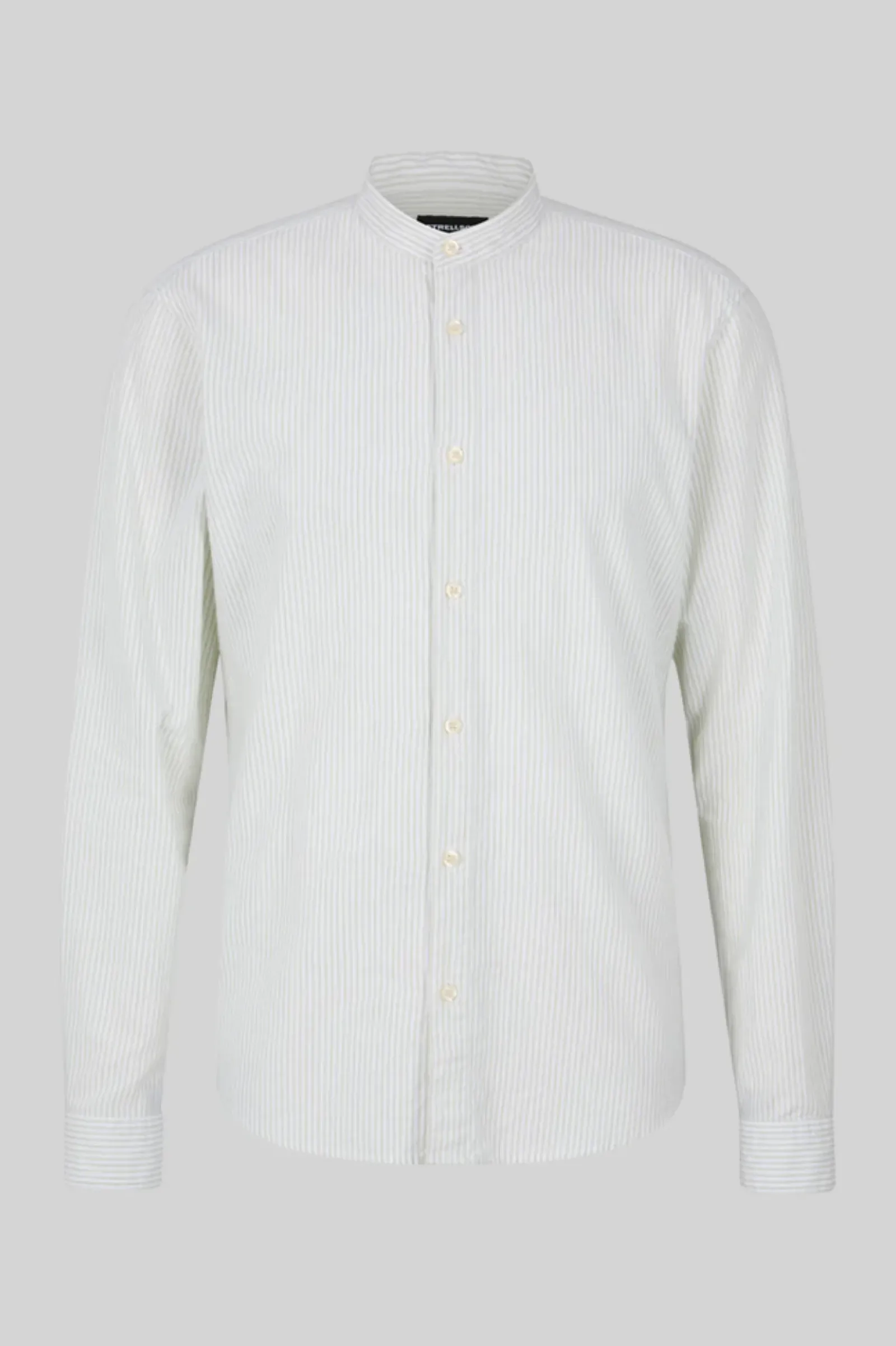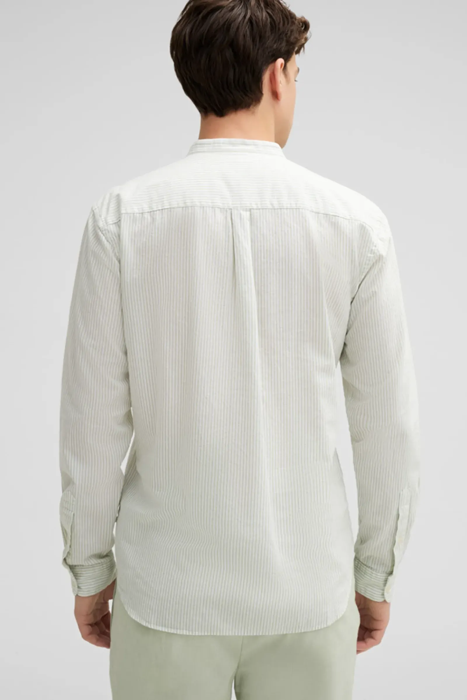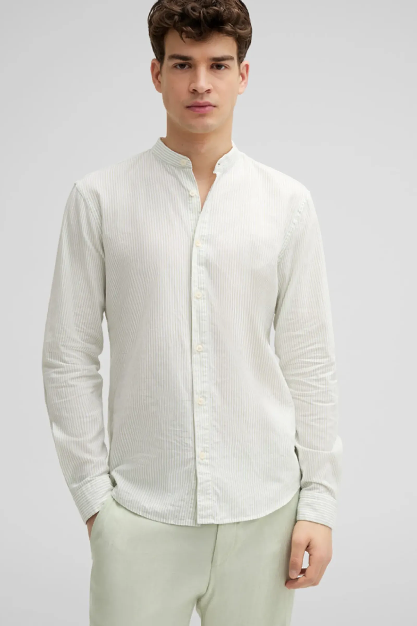 Überzeugt mit schmalem Stehkragen im Streifen-Look: das Hemd Cornel aus Cotton und Leinen. Eine Schulterpasse mit Falten-Detail runden das Piece ab.