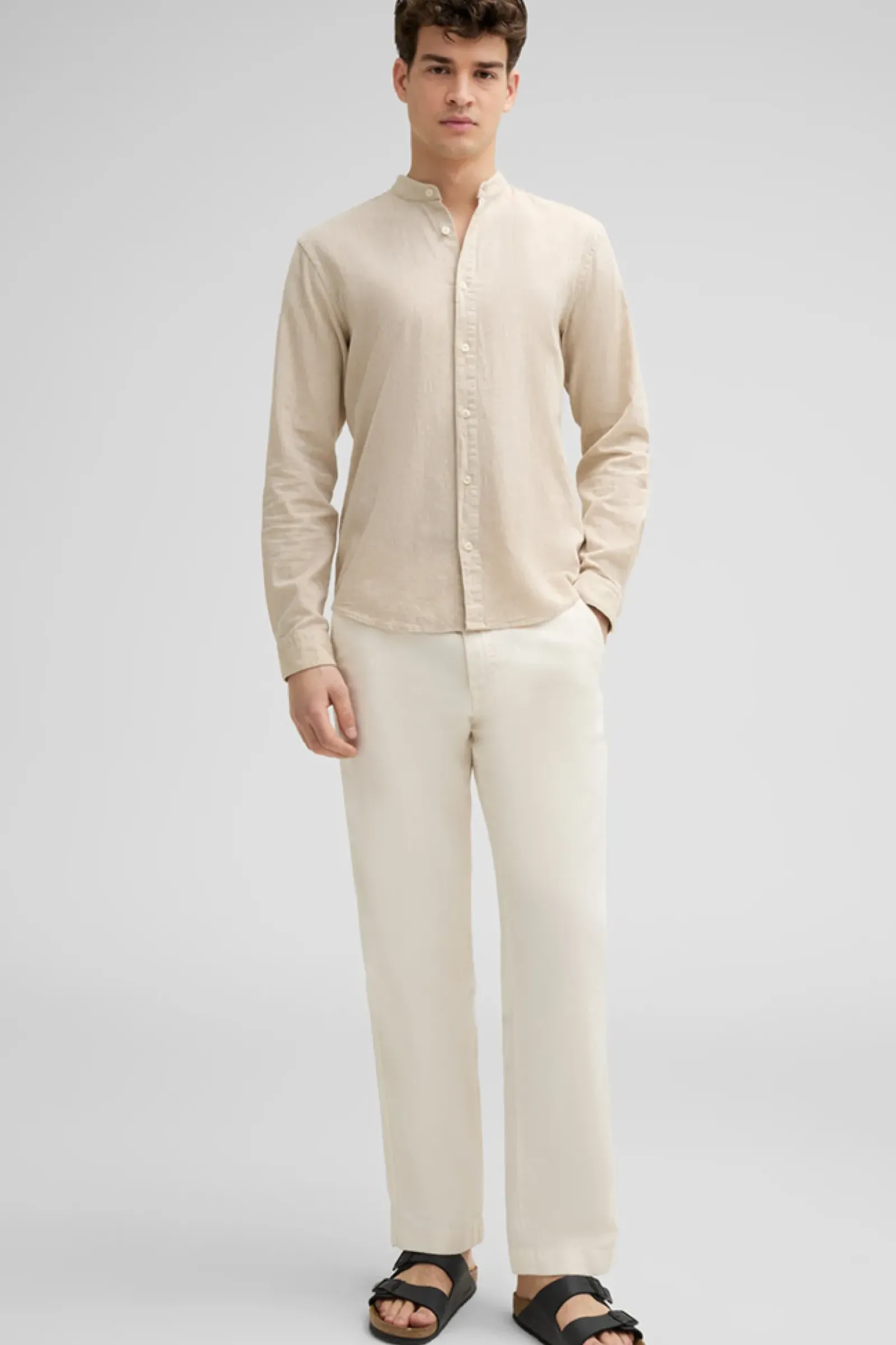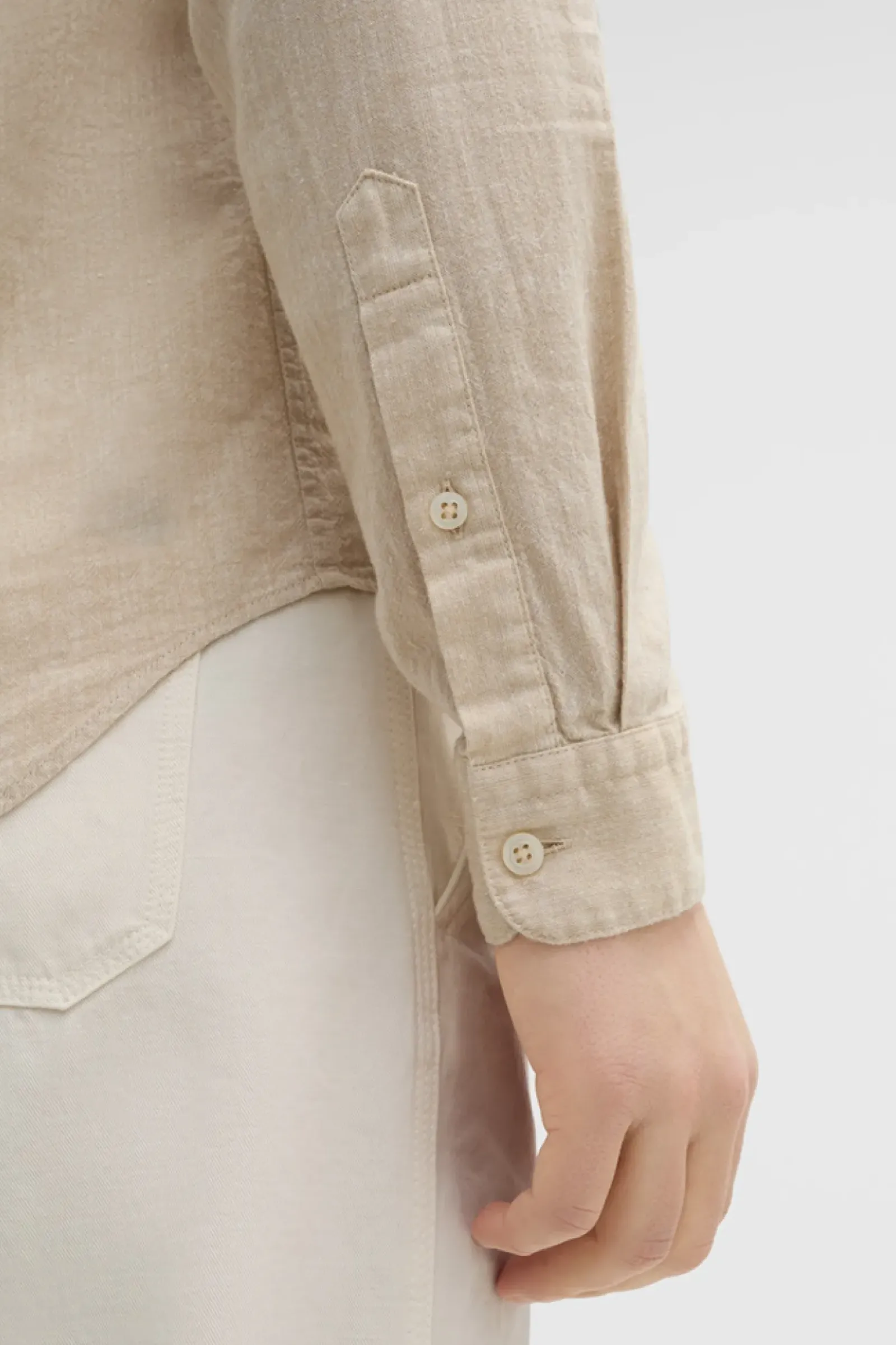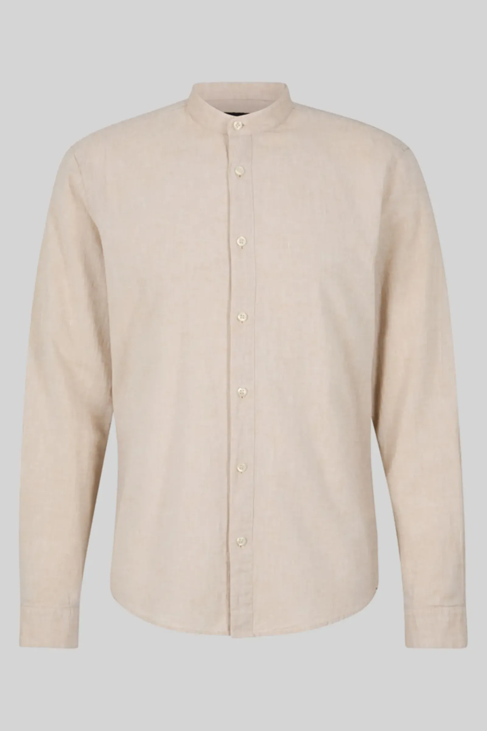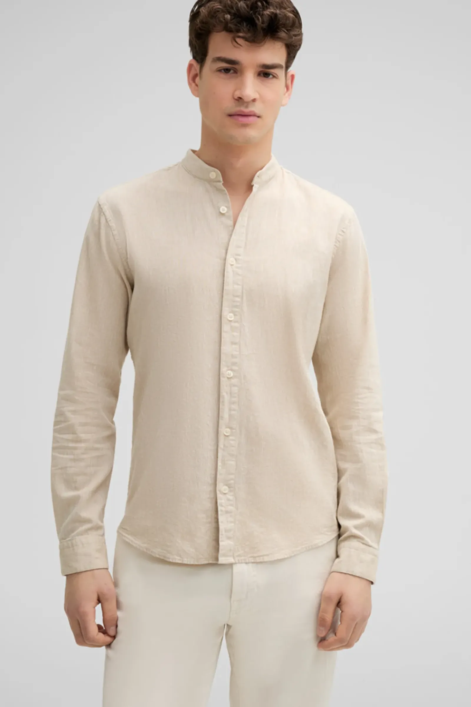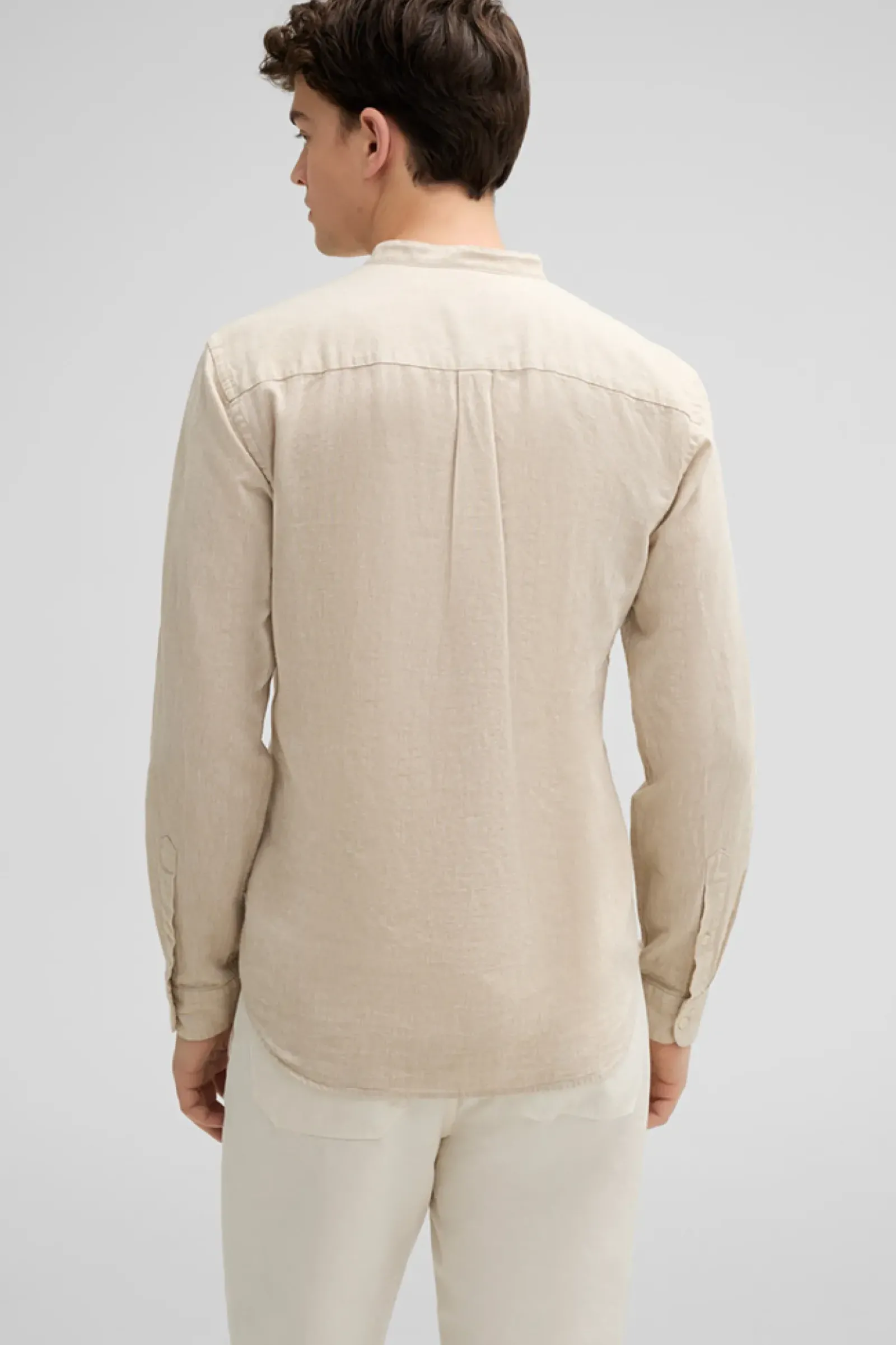 Als komfortables Essential begeistert das Hemd Cornel im Cotton-Leinen-Mix mit schmalem Stehkragen, Schulterpasse mit Falten-Detail und abgerundetem Saum.