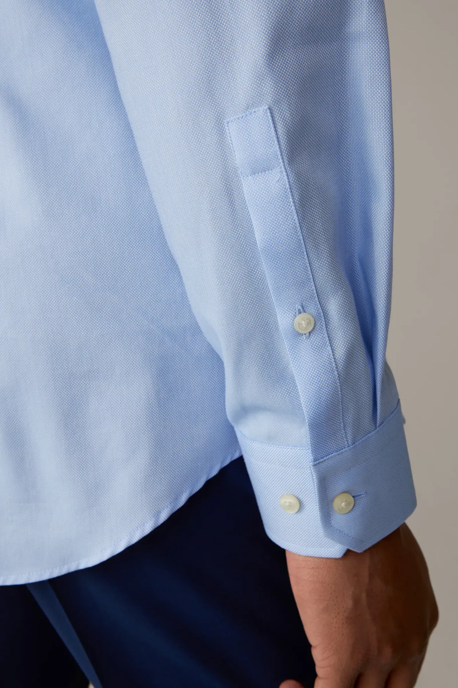 Aus reiner Baumwolle mit feiner Struktur: das Hemd Sereno mit durchgehender Knopfleiste, modernem Haifischkragen und verstellbare Manschettenärmeln.