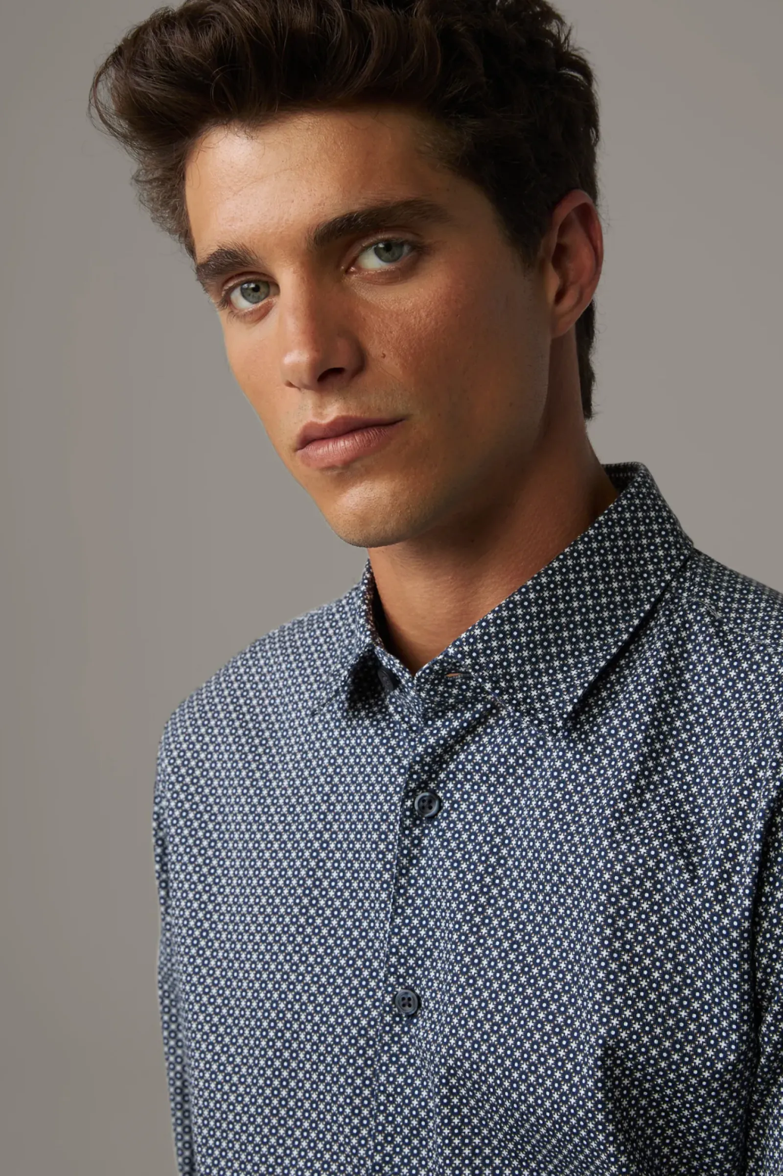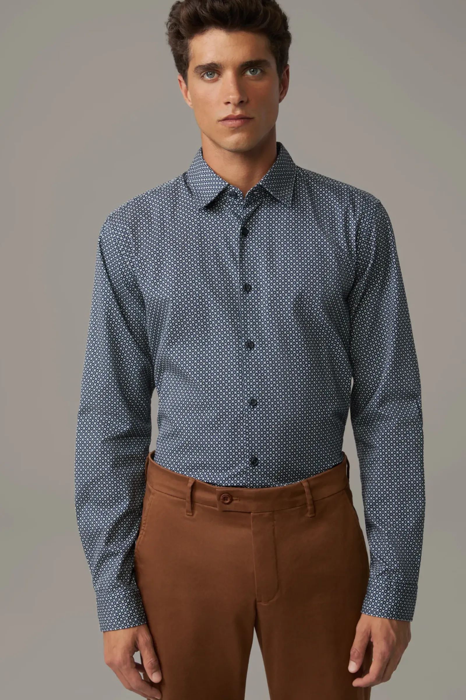 Smart Casual: das Hemd Stan aus Cotton mit Kentkragen, durchgängiger Knopfleiste und schmaler Schulterpasse. Die gemusterte Optik verleiht ein lässiges Finish.