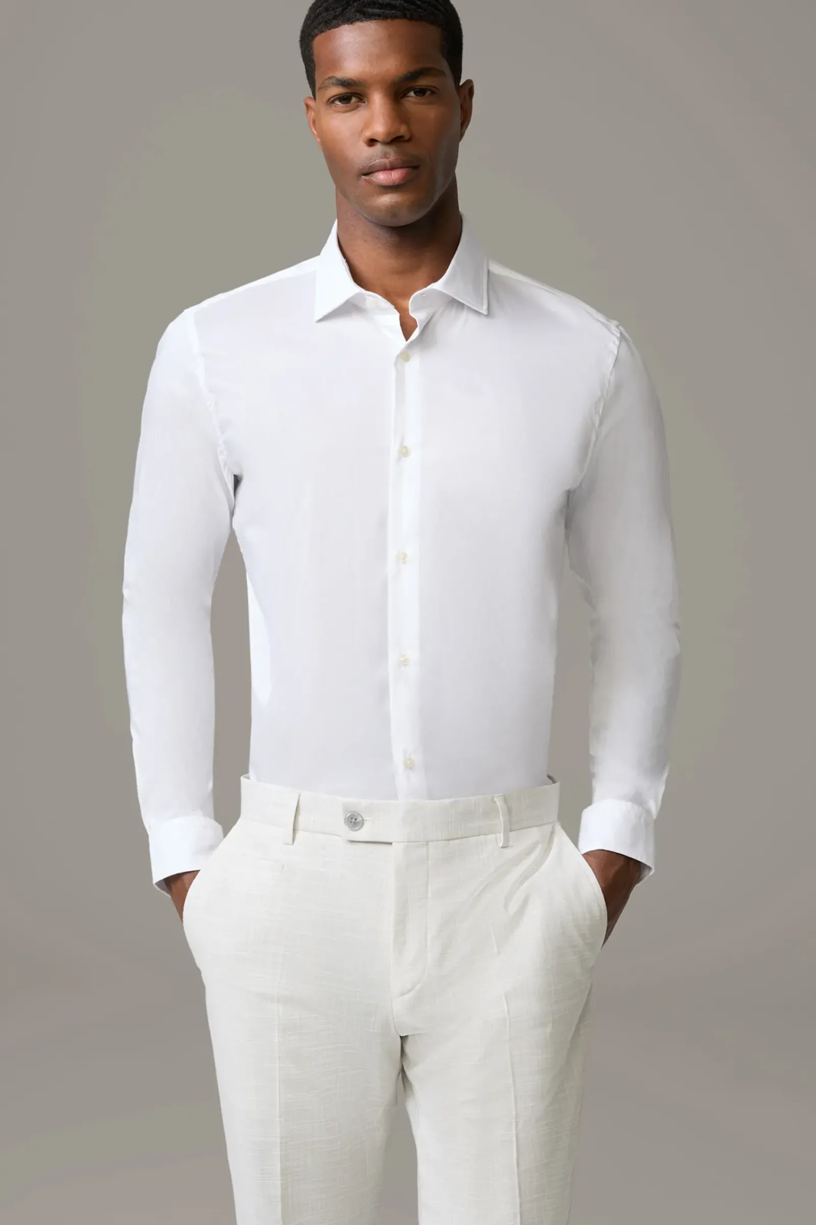 Kombinationsstarkes Essential: das Hemd Stan mit Kentkragen und glatter Knopfleiste. Manschettenärmel und der abgerundete Saum ergänzen den klassischen Style.