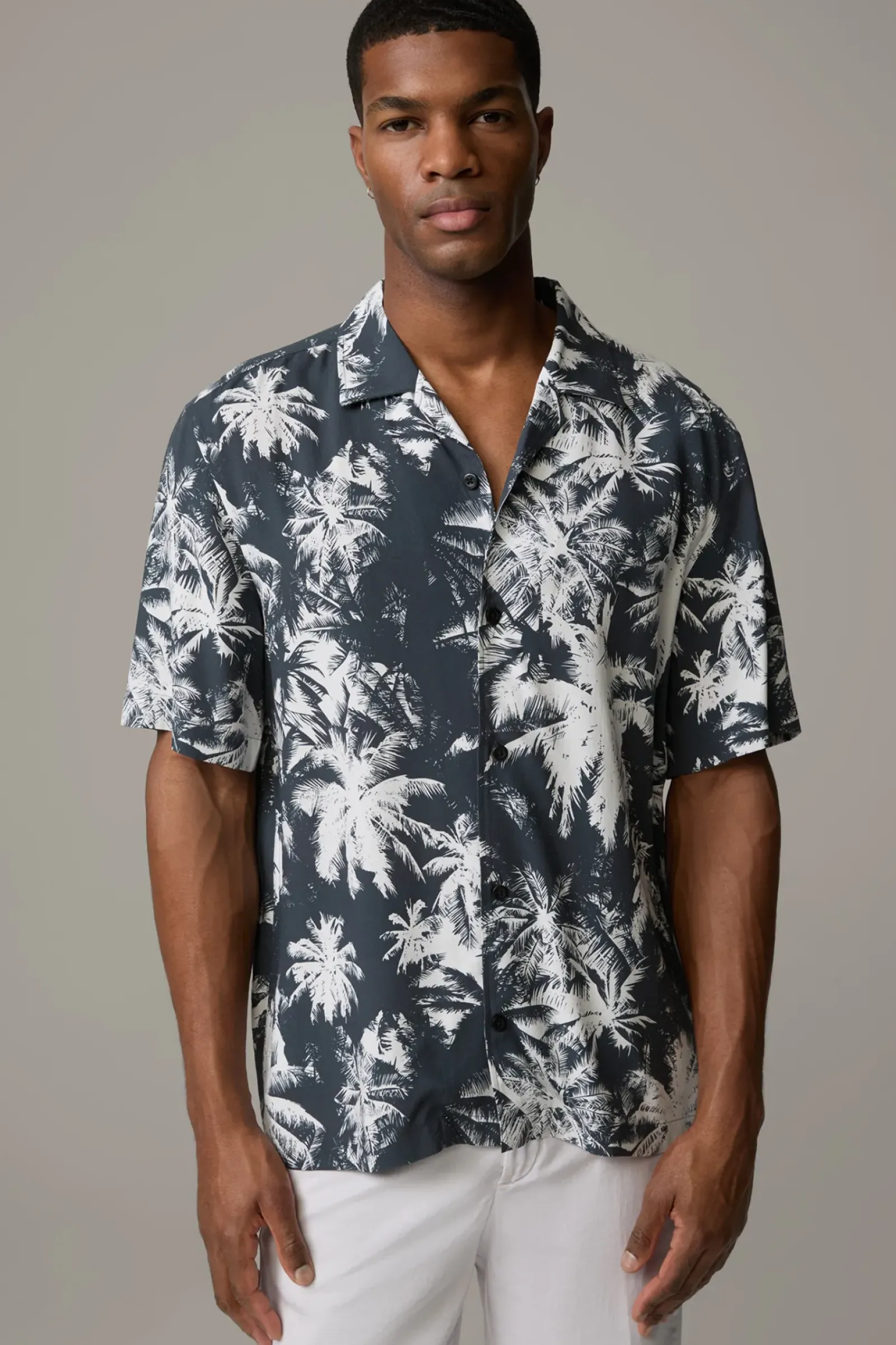 Das Kurzarm-Hemd Cliro punktet im Print-Design mit Reverskragen und relaxter Silhouette. Reine Viskose bietet leichten Tragekomfort.
