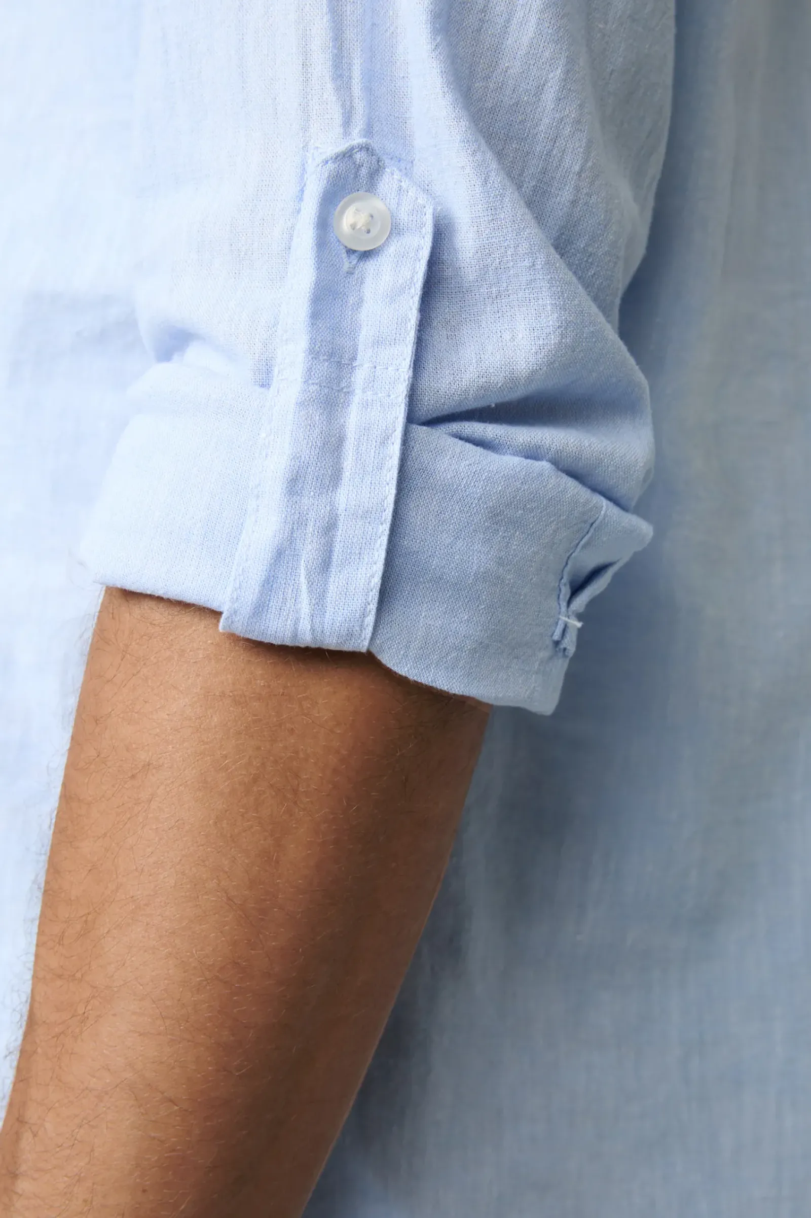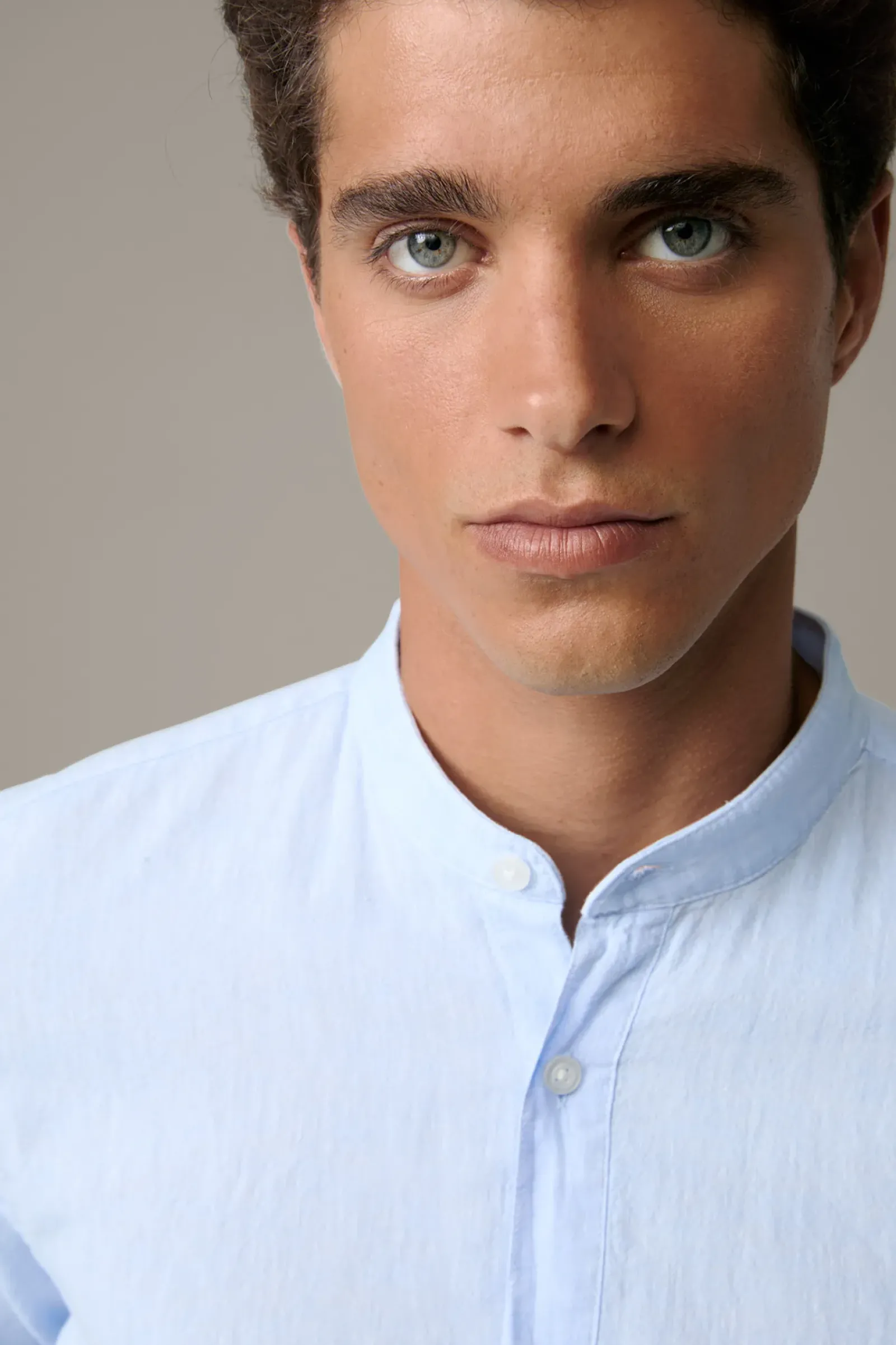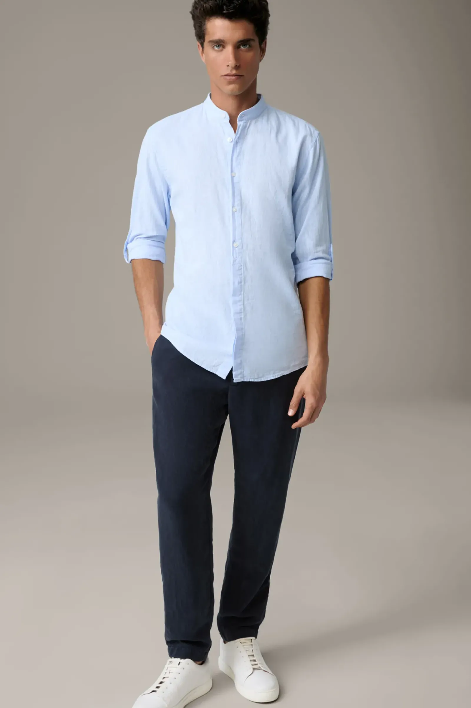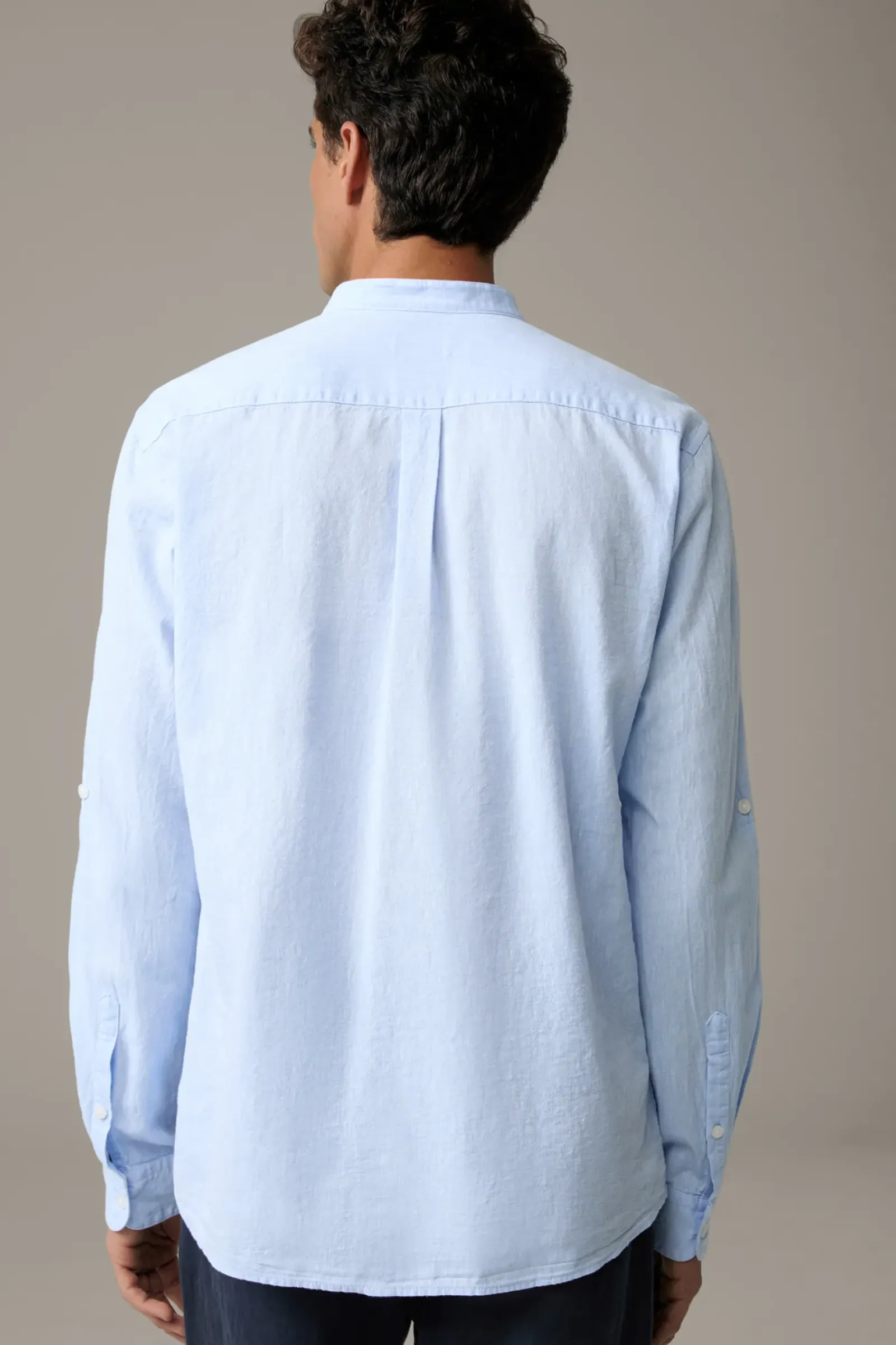 Hemd Conell überzeugt mit modernem Stehkragen, halb verdeckter Knopfleiste und Manschettenärmeln sowie zusätzlichem Knopf zum Aufkrempeln. Aus leichtem Leinen-Cotton-Mix.