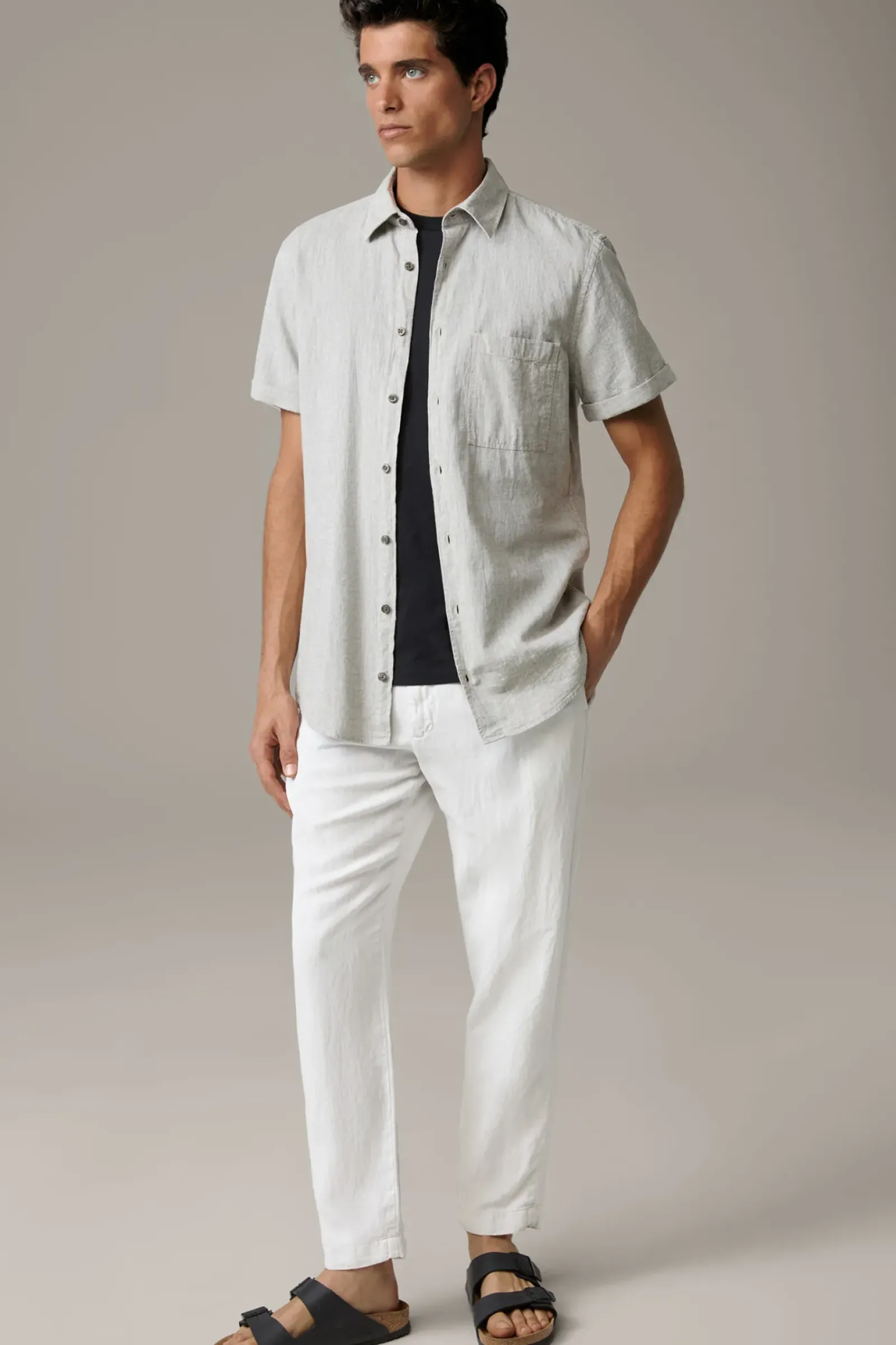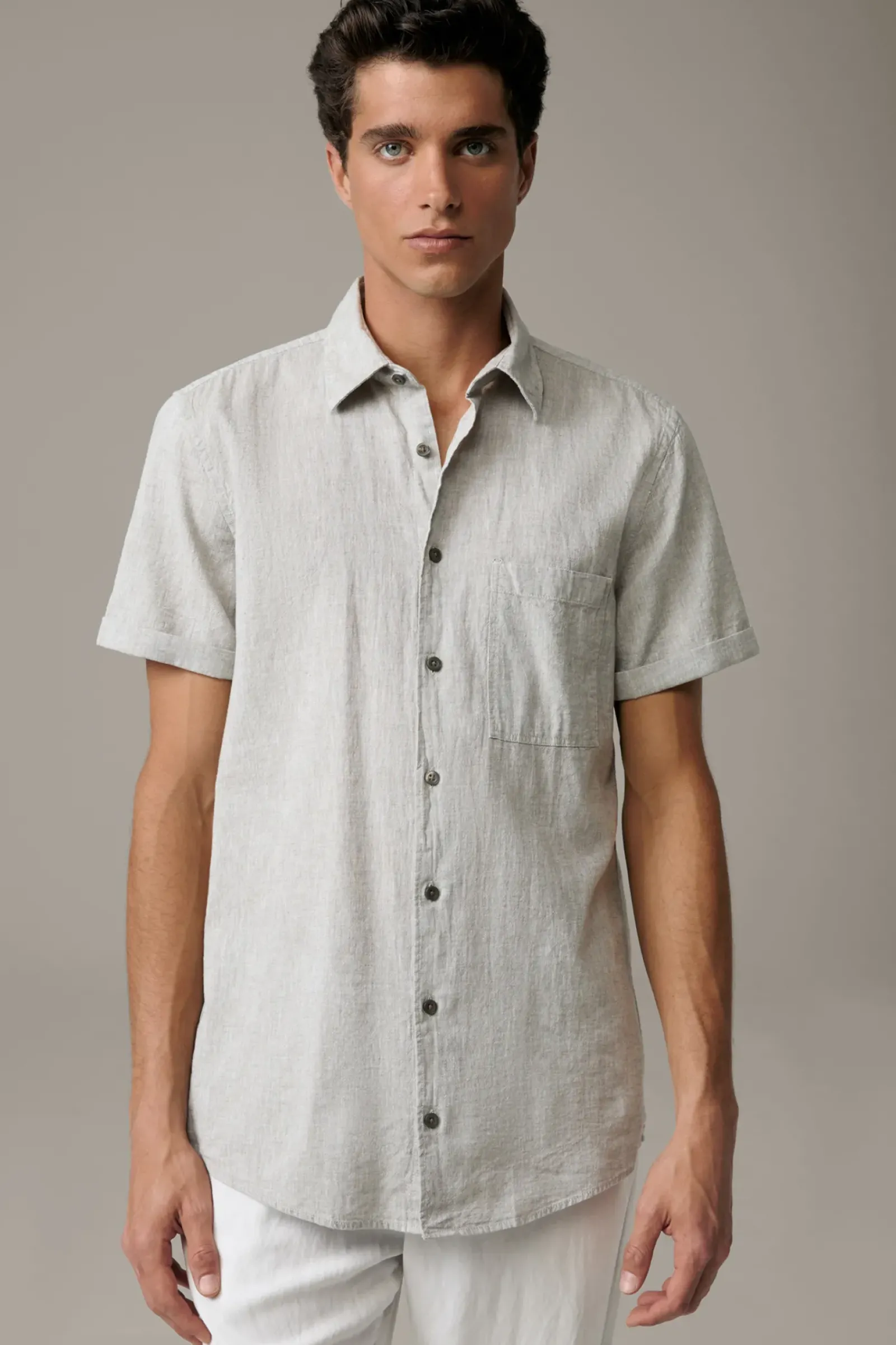 Key Piece mit Twist: das Kurzarm-Hemd Corvin aus strukturiertem Baumwoll-Leinen-Mix. Mit Kentkragen, aufgesetzter Brusttasche und fixierten Turn-ups an den Ärmelabschlüssen.