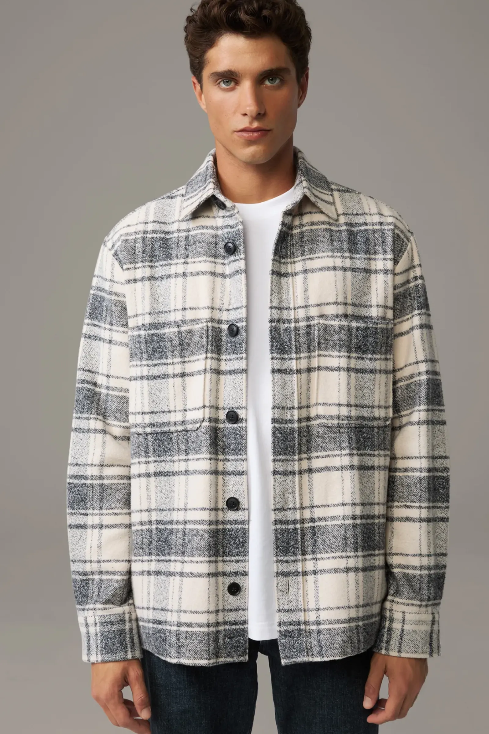 Favorit im Karo-Look: Das Overshirt Nalon aus Baumwoll-Flanell mit applizierten Pockets, nahtverdeckten Eingrifftaschen und klassischem Kentkragen.