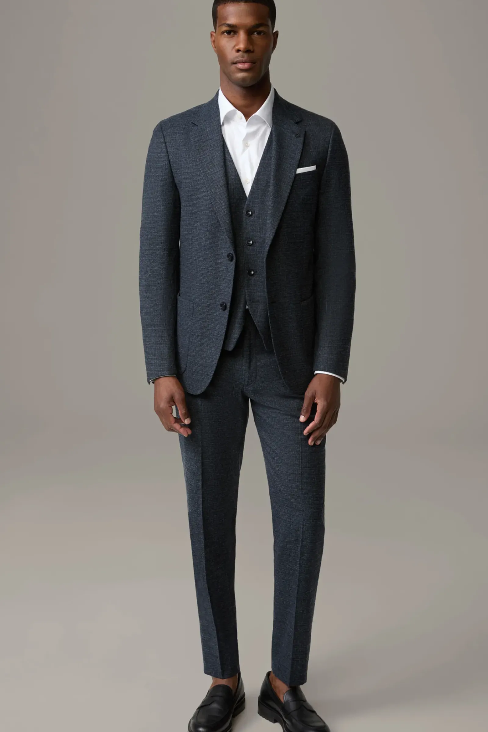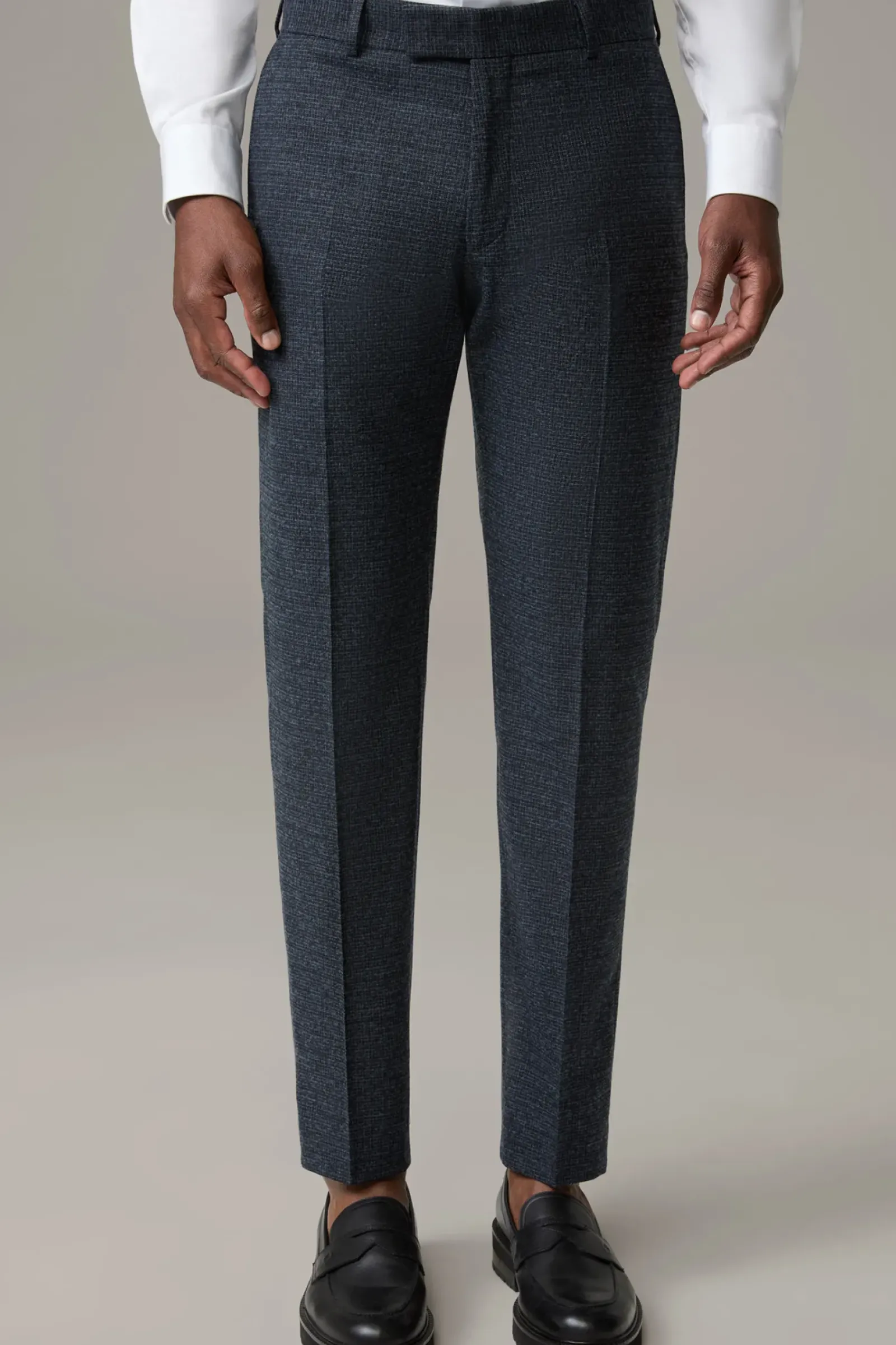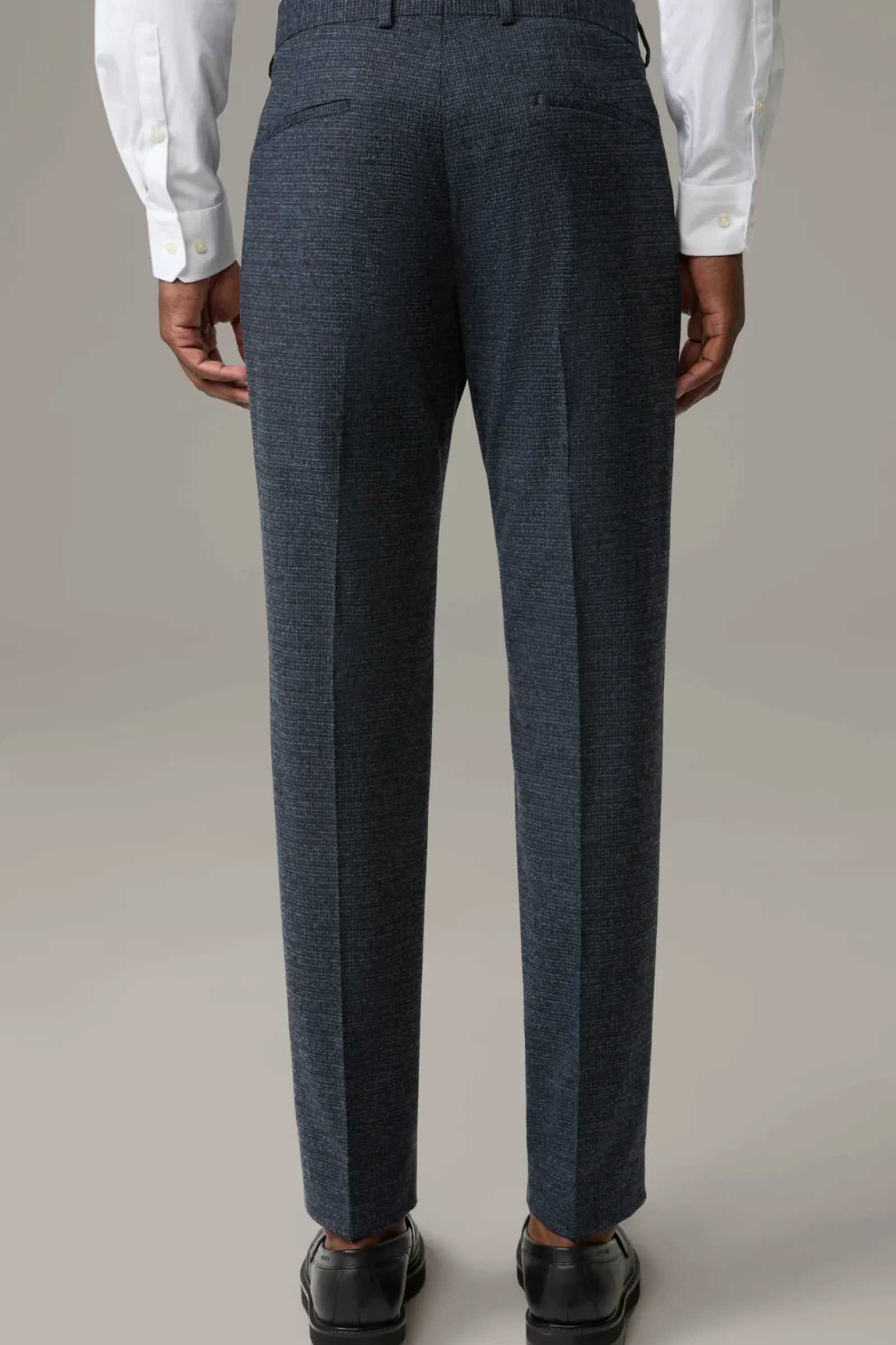 Überzeugt mit klassischen Details wie Leistengesäßtaschen und Bügelfalten aus einem komfortablen Stretch-Mix. Mit Kniefutter und Doppelhaken.