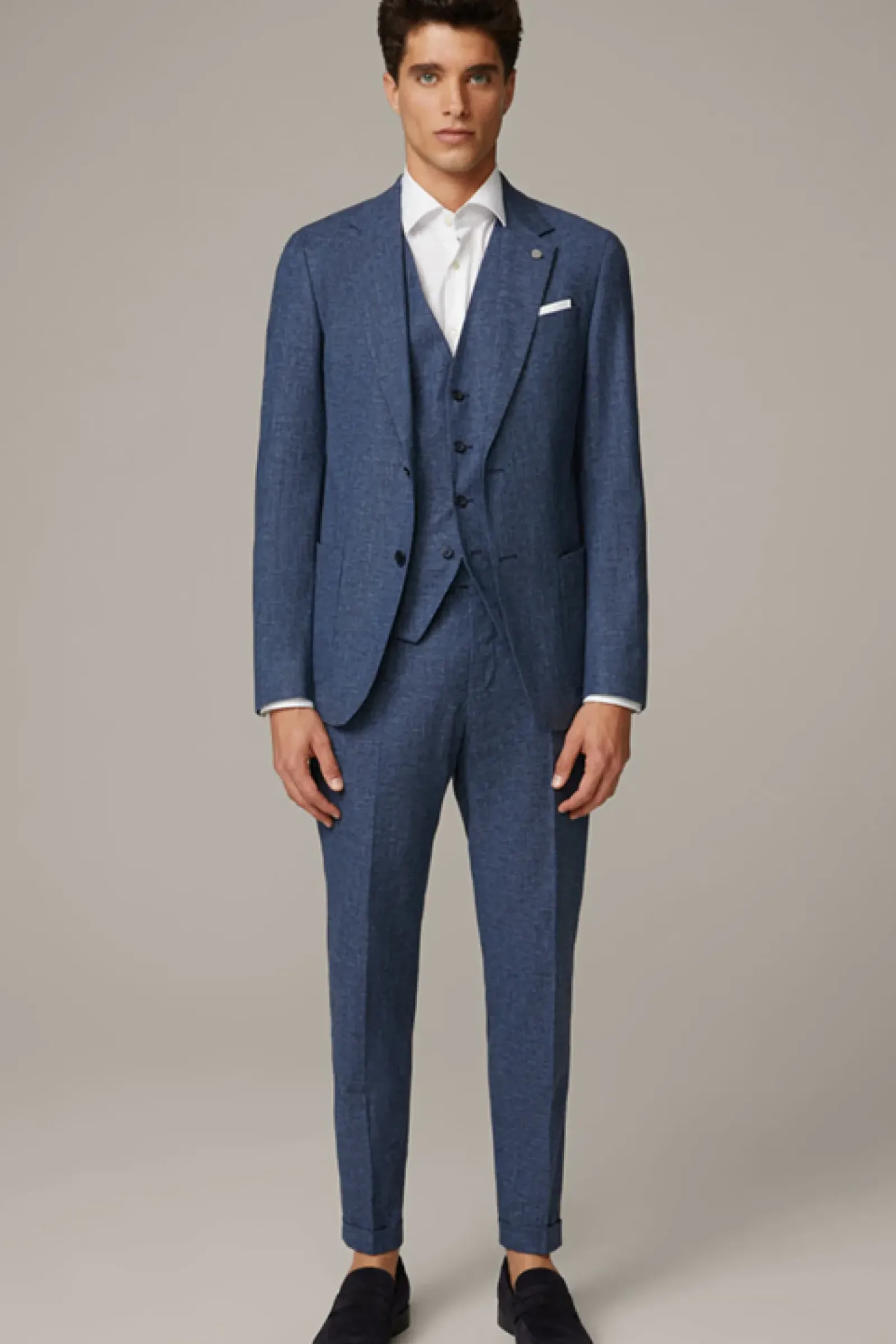 Die Anzughose Luc im RELAXED FIT mit fixiertem Umschlag. Der Wool-Blend mit Leinen sorgt für die moderne Optik und das Komfort-Finish. Perfect Match: Sakko Ayres. Auch gut zu tragen bei Hochzeit oder anderen besonderen Anlässen.