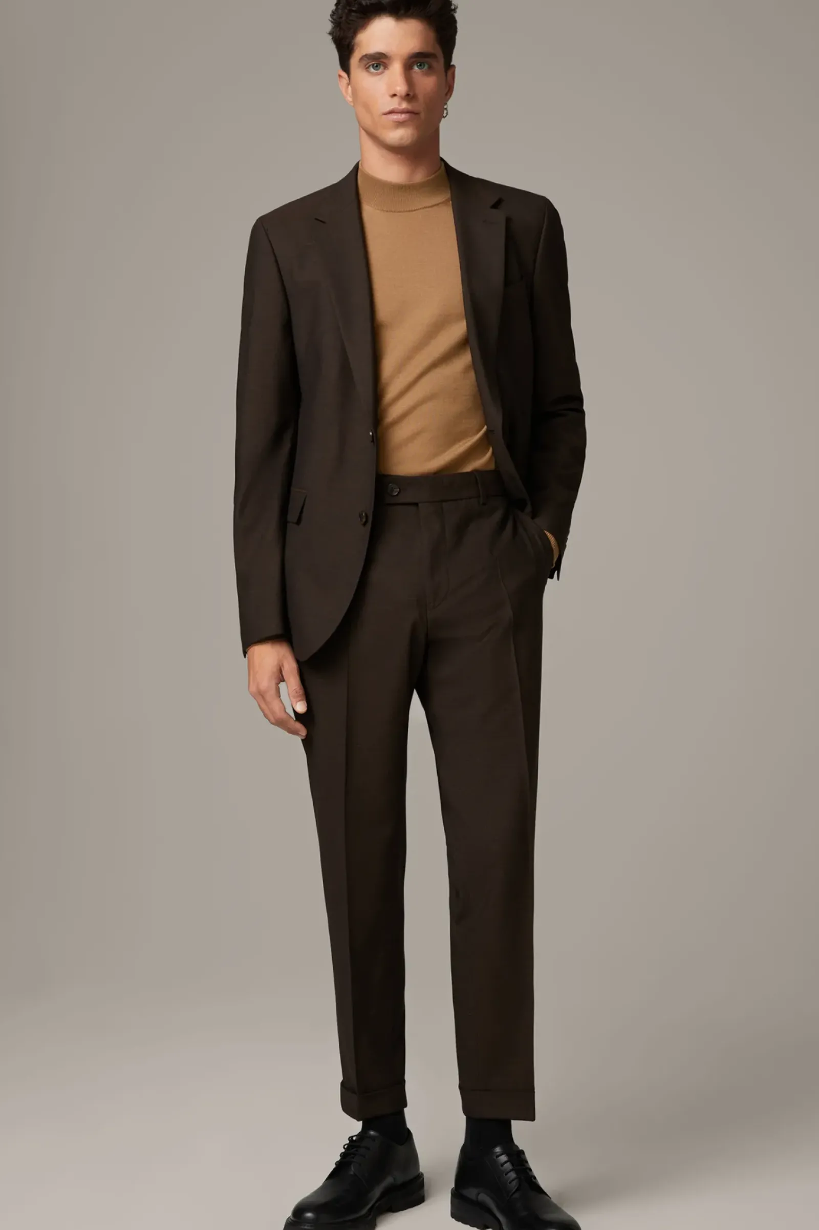 Im relaxten Style präsentiert sich die Anzughose Luc. Klassisches Flair verleihen Bügelfalten Knopfriegel und Taschen-Elemente. Fixierte Umschläge am Hosensaum sorgen für ein urbanes Finish.
