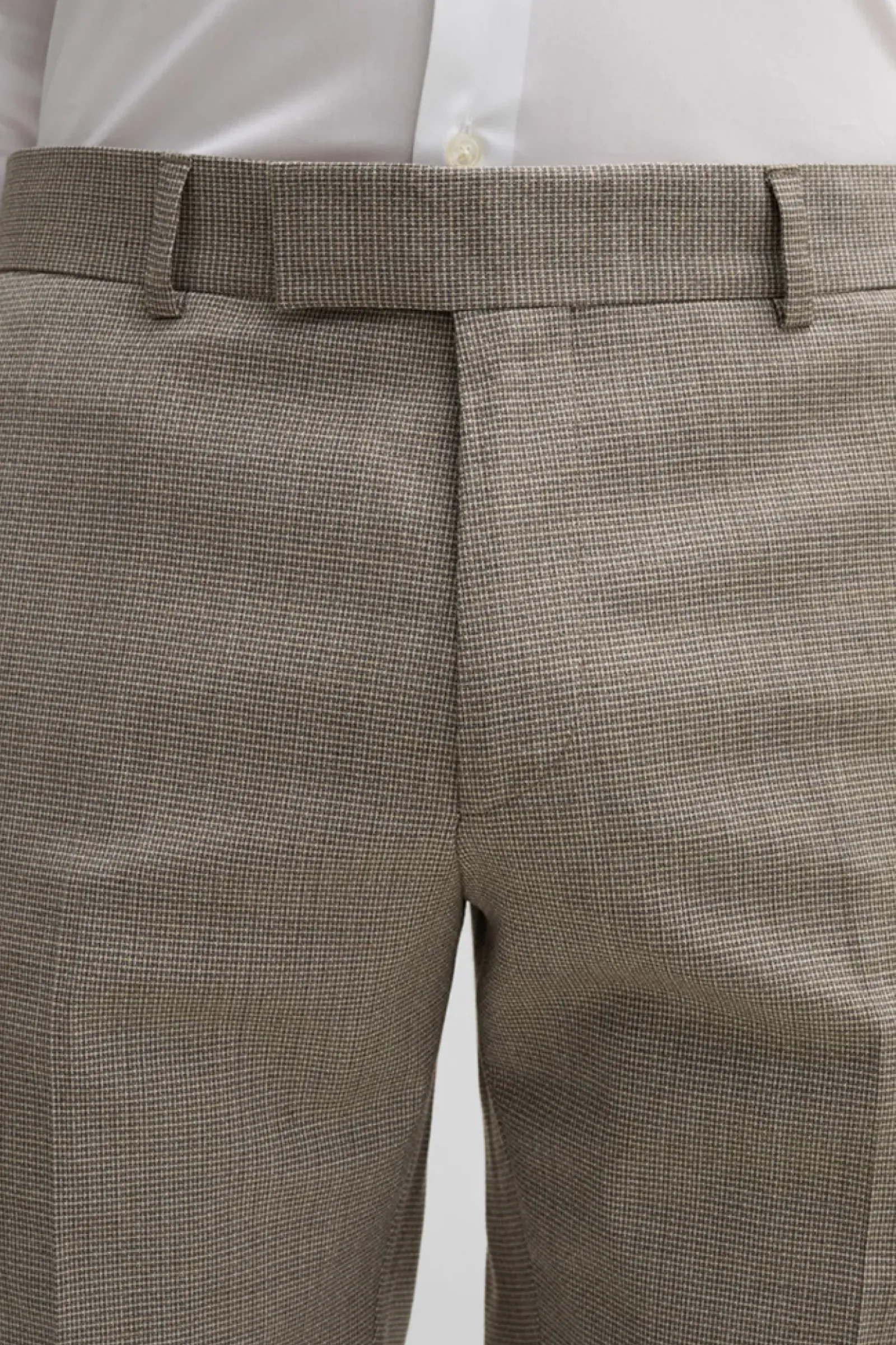 Suitable – die Anzughose Melwin aus Schurwollmix mit Minimal-Muster, stilvoll als Match mit dem passenden Sakko der Baukasten-Serie. Mit Paspelgesäßtaschen und Bund mit verdecktem Haken-Zip-Verschluss.
