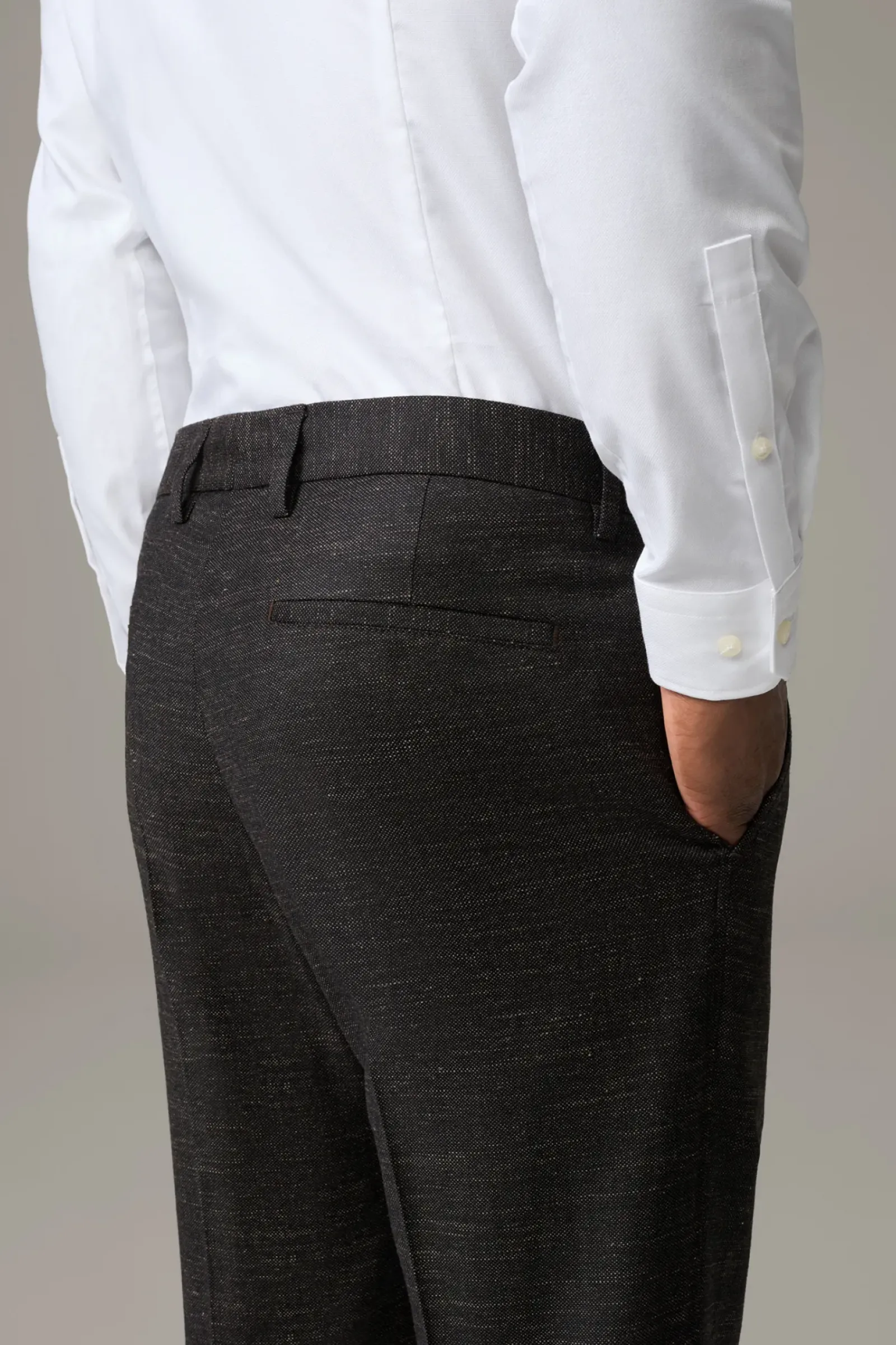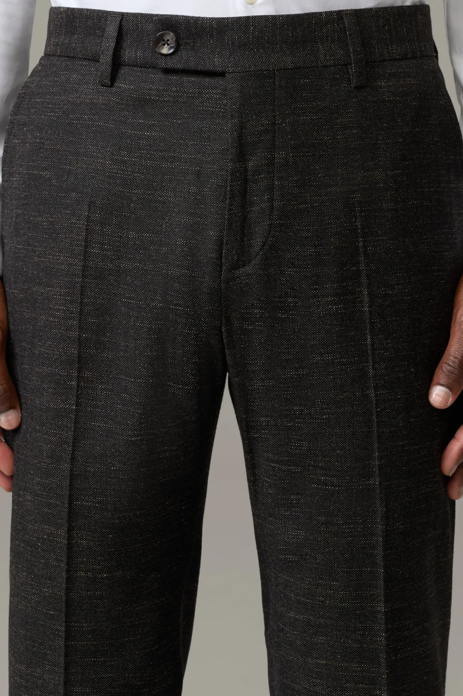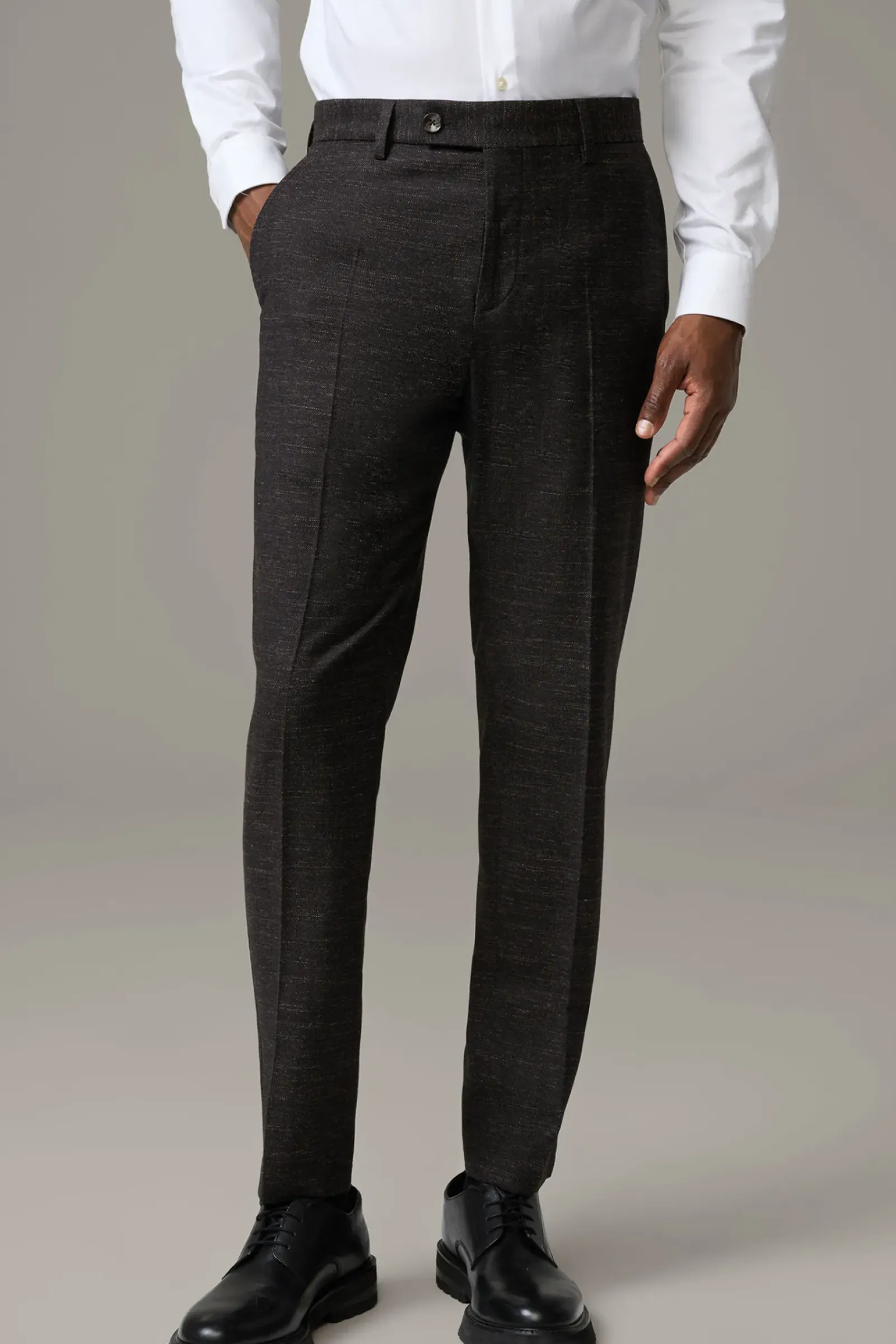 Casual Twist für den formalen Look: die Baukasten-Hose Till im strukturierten Wool-Mix mit fixiertem Umschlag und klassischen Bügelfalten. Perfekt zu kombinieren mit dem passenden Sakko Arndt.