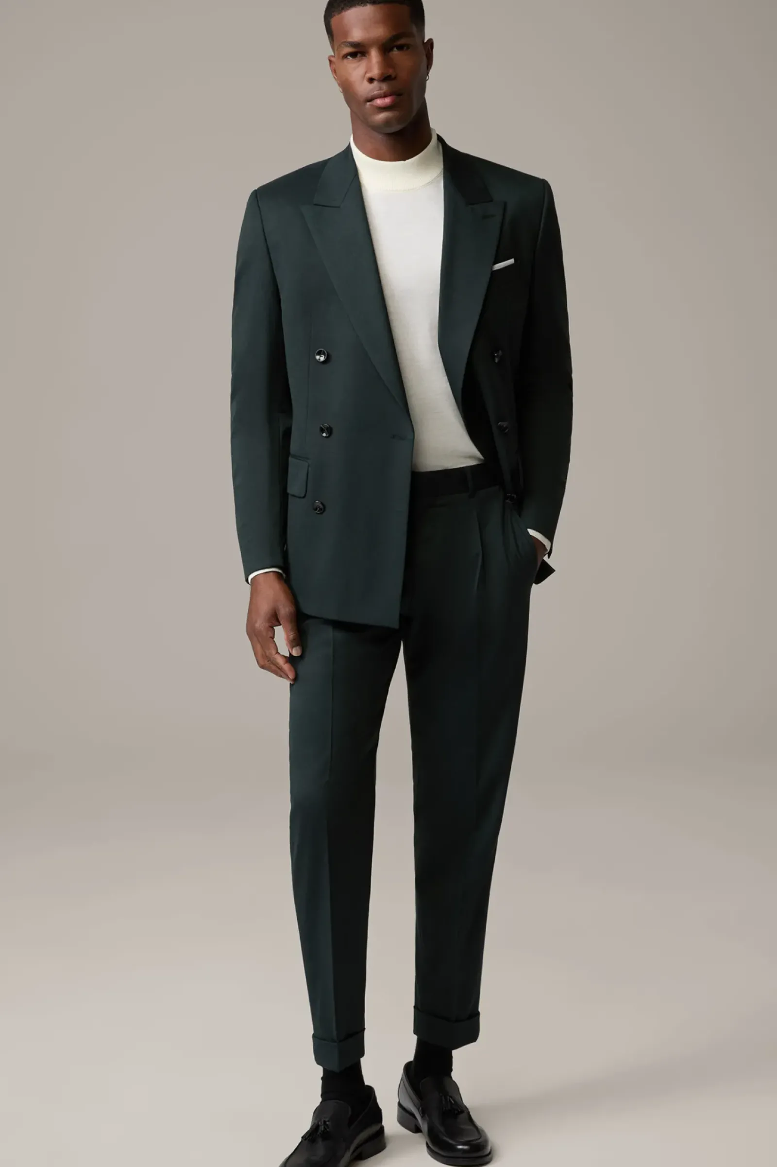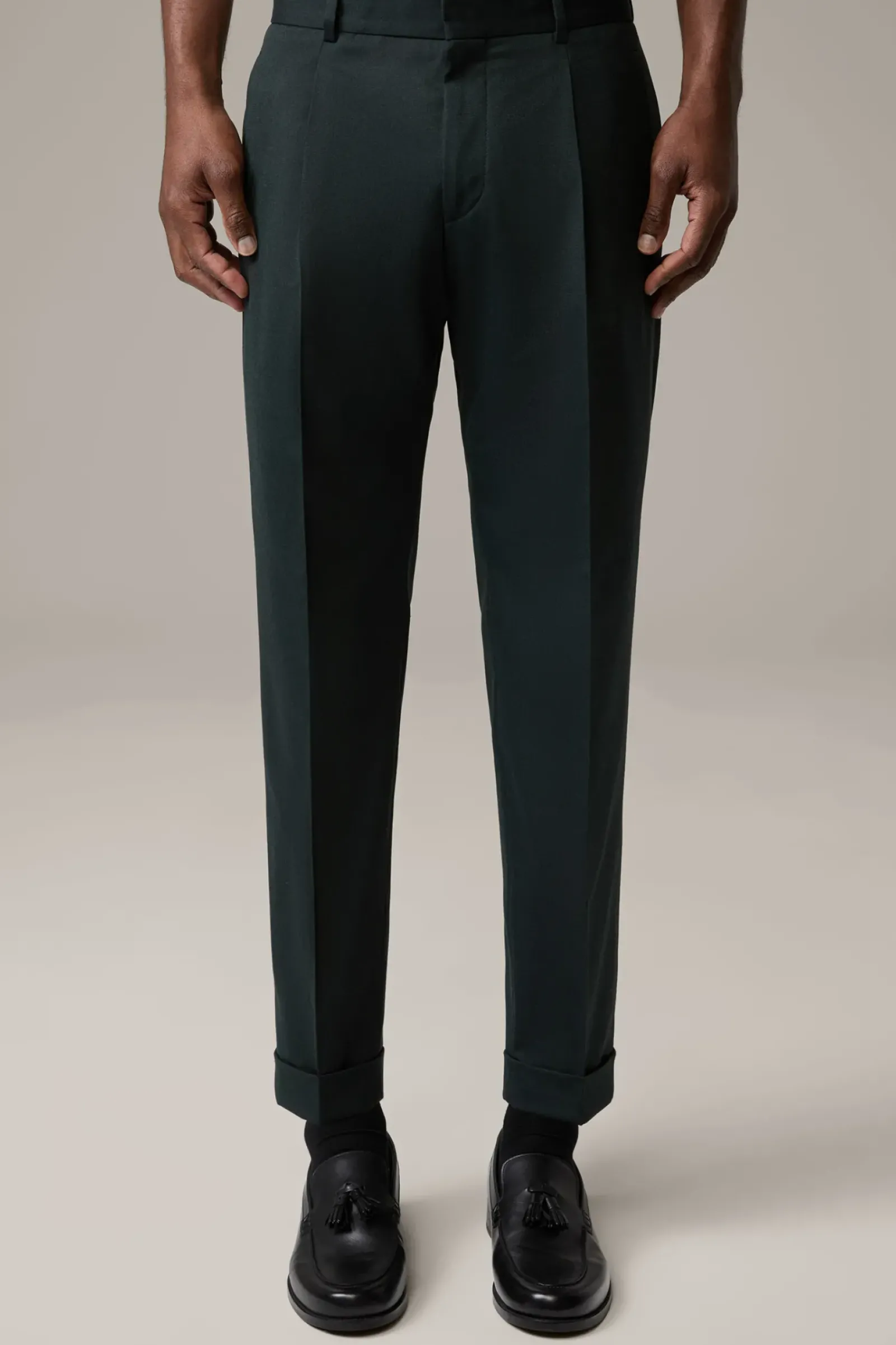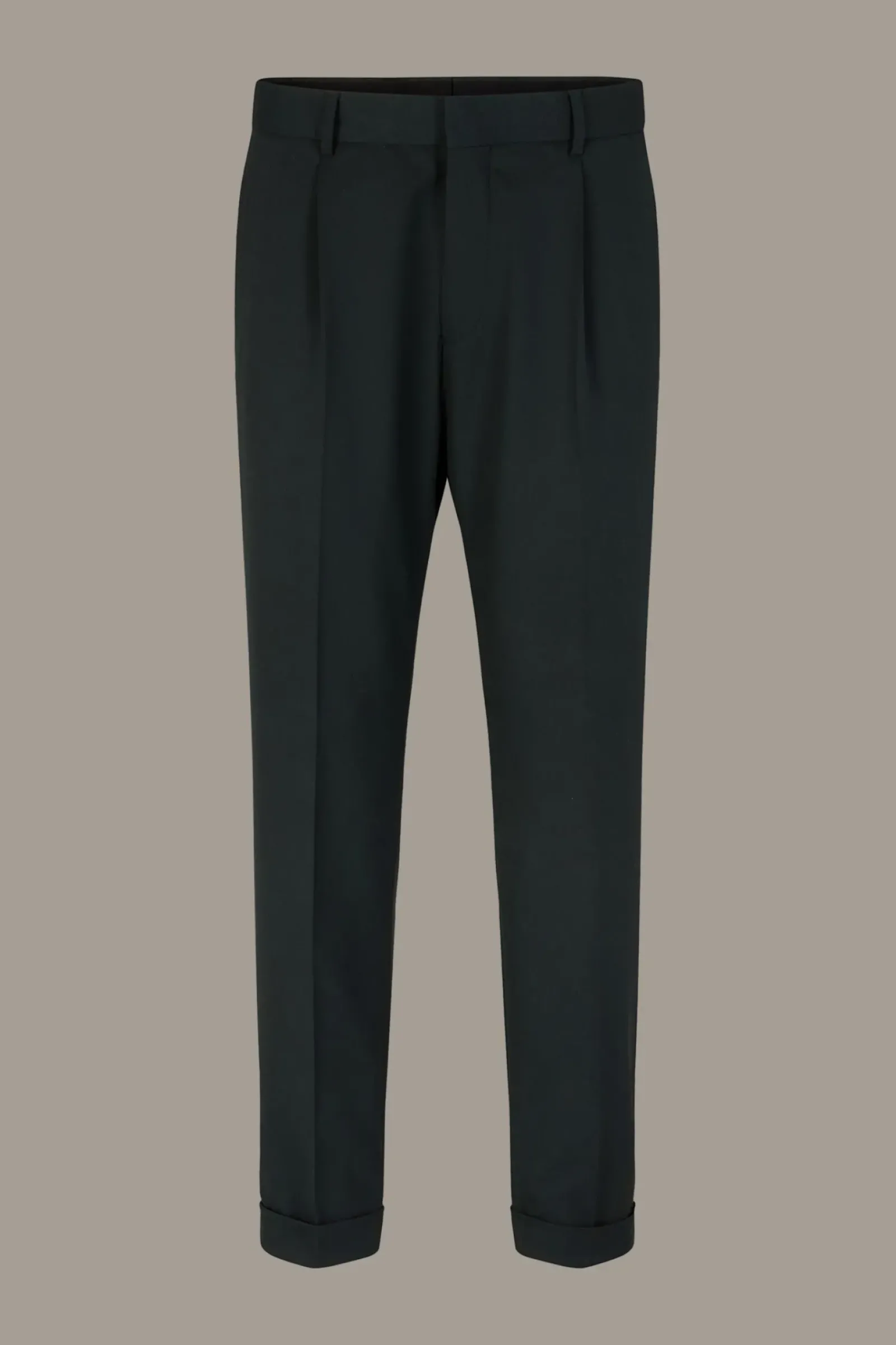 Im smarten Design: Bundfaltenhose Luis aus stretchigem Wollmix in lässiger Passform. Stimmig ergänzt durch Taschen-Details und die fixierten Umschläge am Hosensaum.