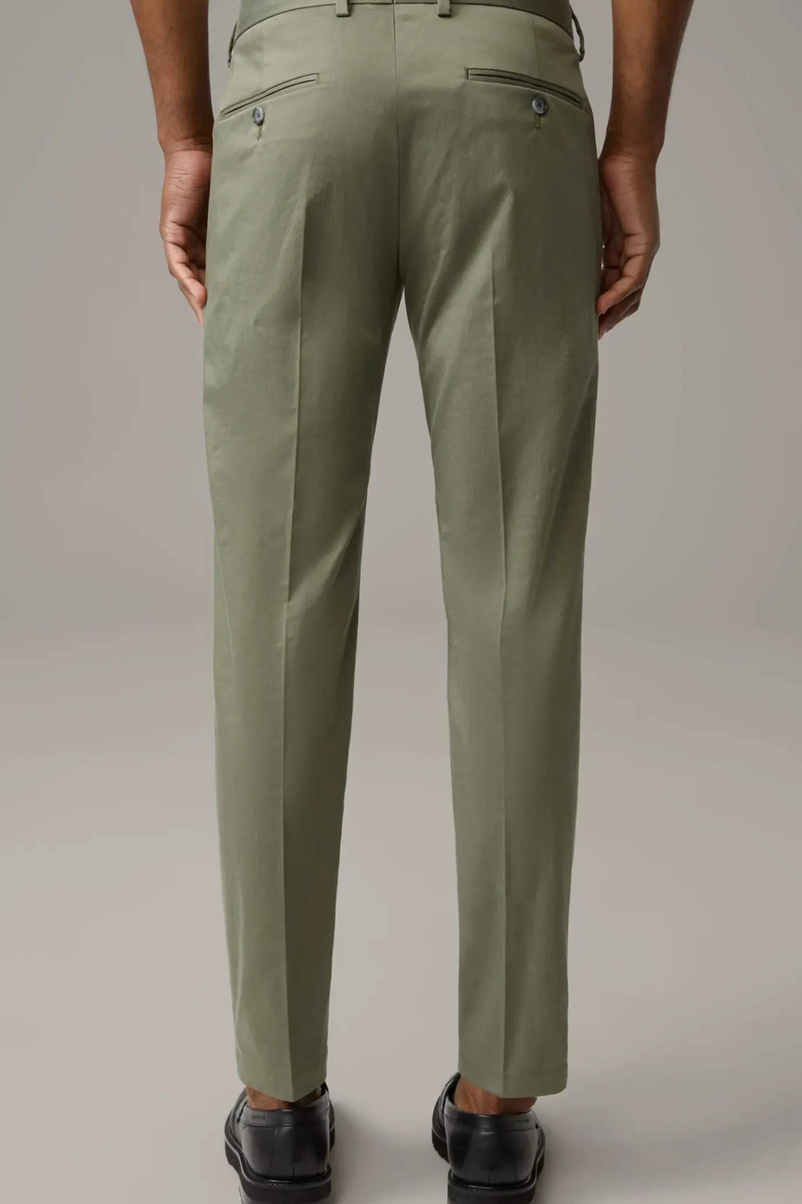 Überzeugt im klassischen Design und Cotton-Stretch: die Bügelfaltenhose Kyle mit Hakenverschluss, Paspelgesäßtaschen und verkürztem Beinverlauf. EXTRA SLIM FIT.