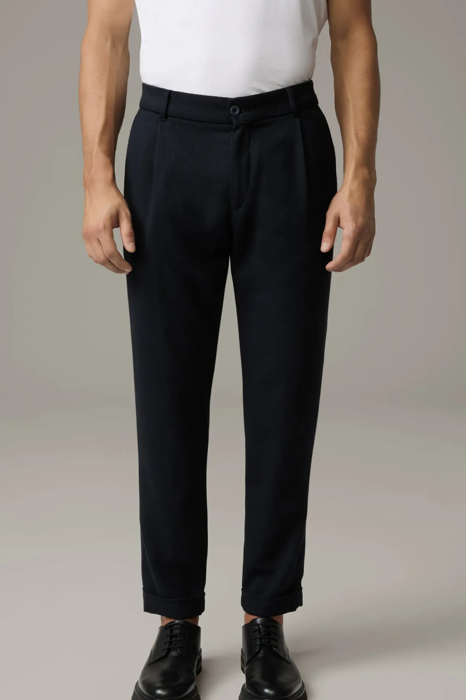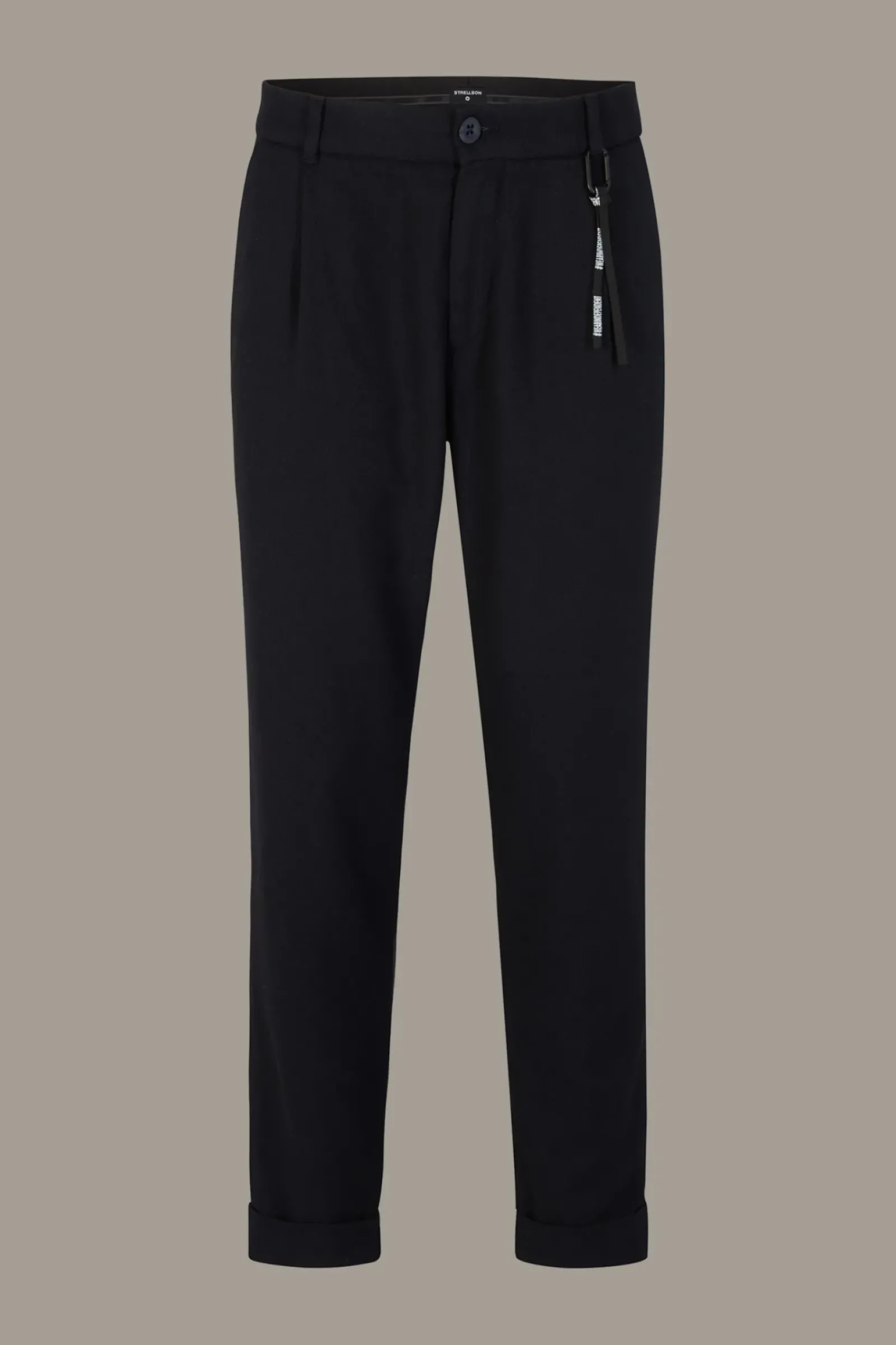 Überzeugt im stretchigen Viskose-Mix in verkürzter Länge: die Bundfaltenhose Louis. Leistengesäßtaschen und fixierte Umschläge zeichnen den Look aus. Inklusive Karabiner und Logoband.