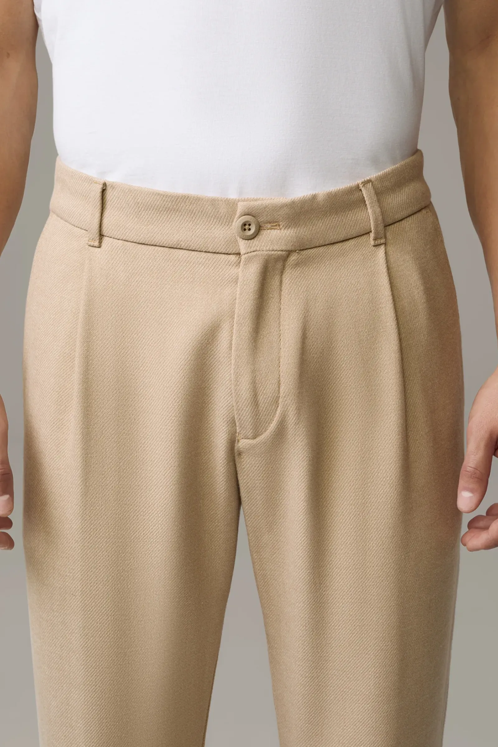 Überzeugt im stretchigen Viskose-Mix in verkürzter Länge: die Bundfaltenhose Louis. Leistengesäßtaschen und fixierte Umschläge zeichnen den Look aus. Inklusive Karabiner und Logoband.
