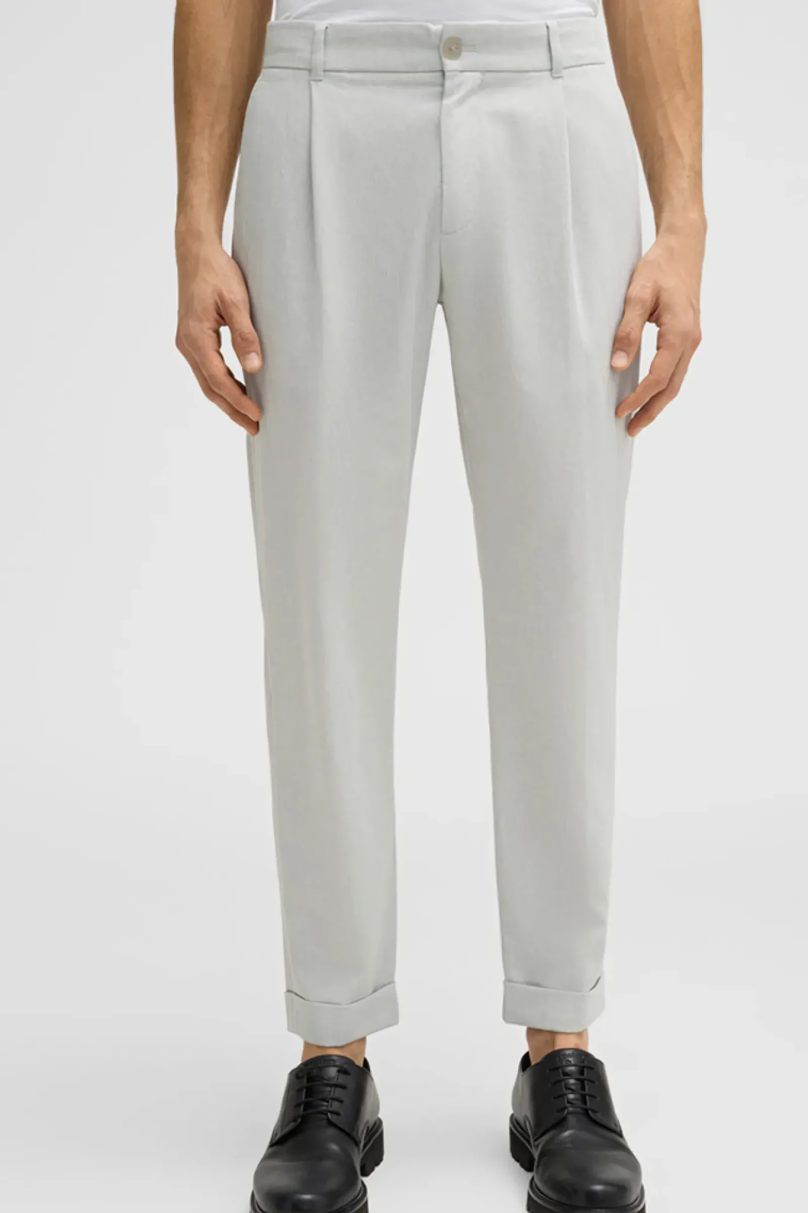 Stylingpartner im klassischen Design mit Bundfalten und Paspelgesäßtaschen: Hose Louis in Tech-Qualität mit fixierten Umschlägen. Label-Patch für den typischen Signature-Akzent.
