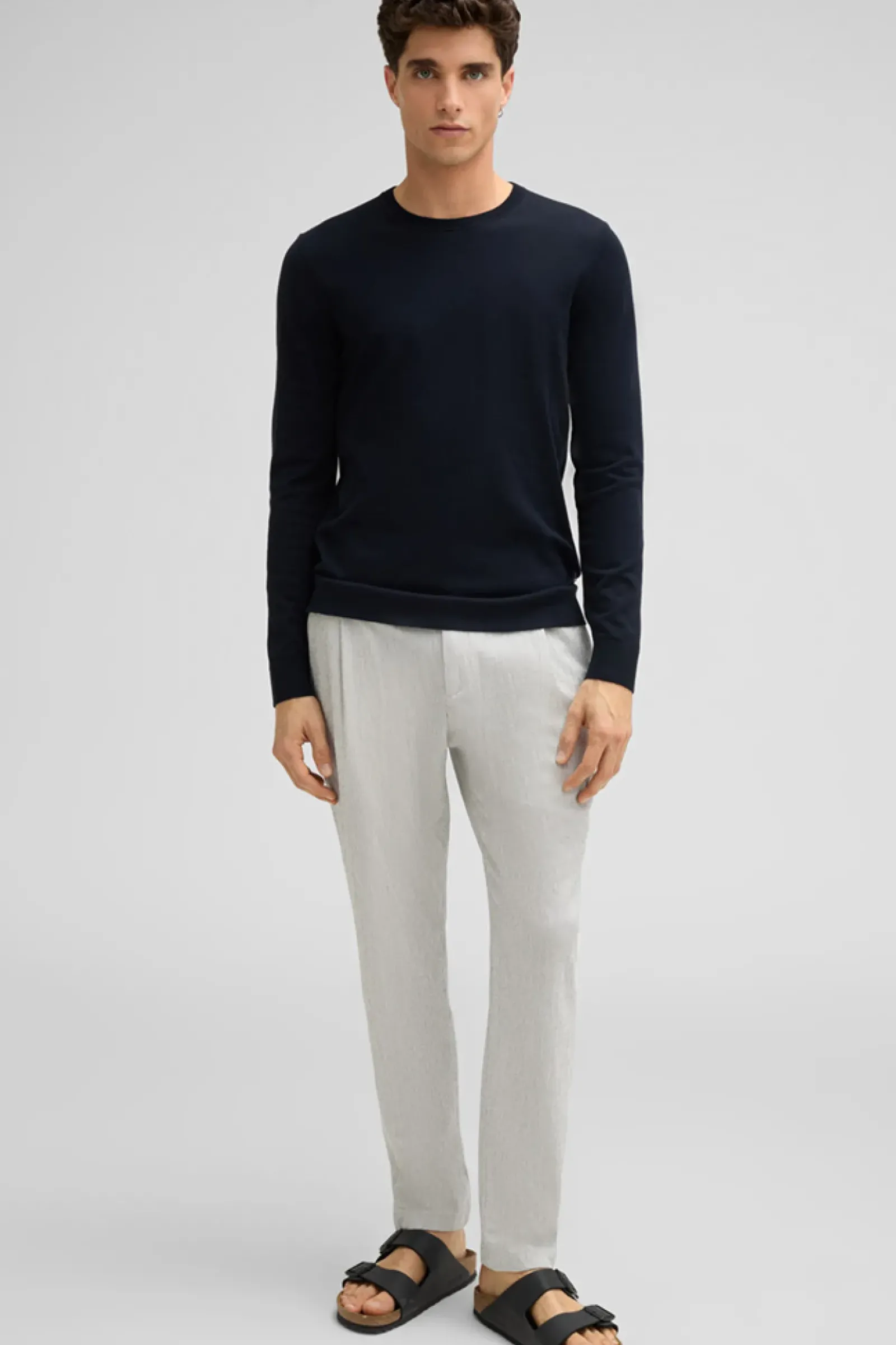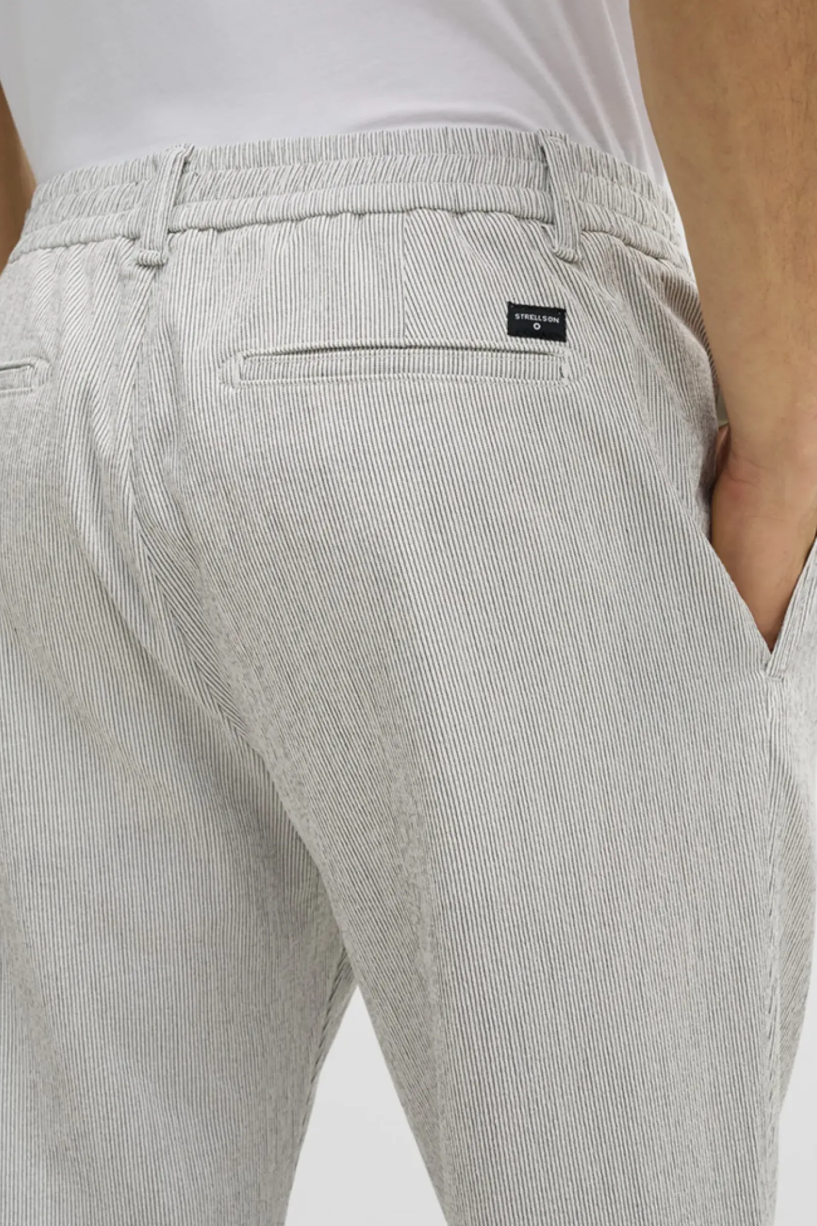Im Streifen-Look: Bundfaltenhose Lui in lässiger Silhouette mit elastischem Bund und feinen Label-Details. Paspelgesäßtaschen und das Knopf-Zipper-Duo für einen klassischen Twist.