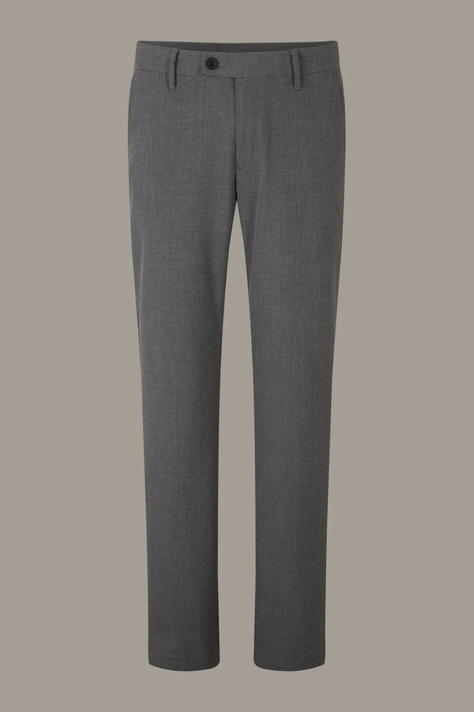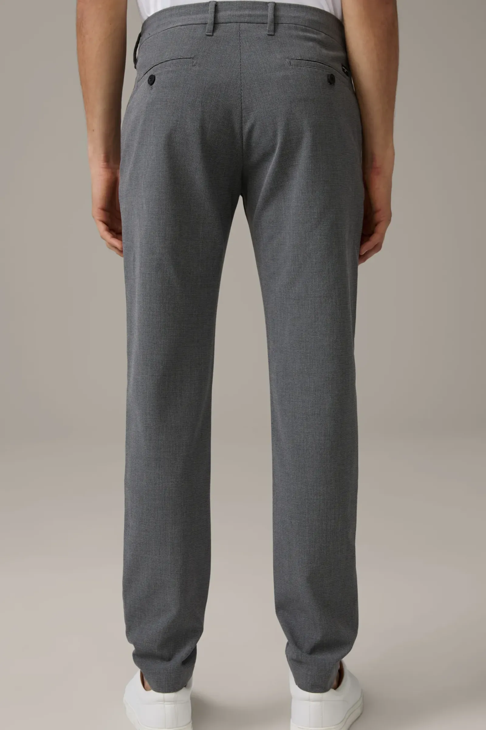 Begeistert im weichen Viskose-Blend: die Chino Code im karierten Design mit Knopfriegel, französischen Eingriff- und Paspelgesäßtaschen. SLIM FIT.
