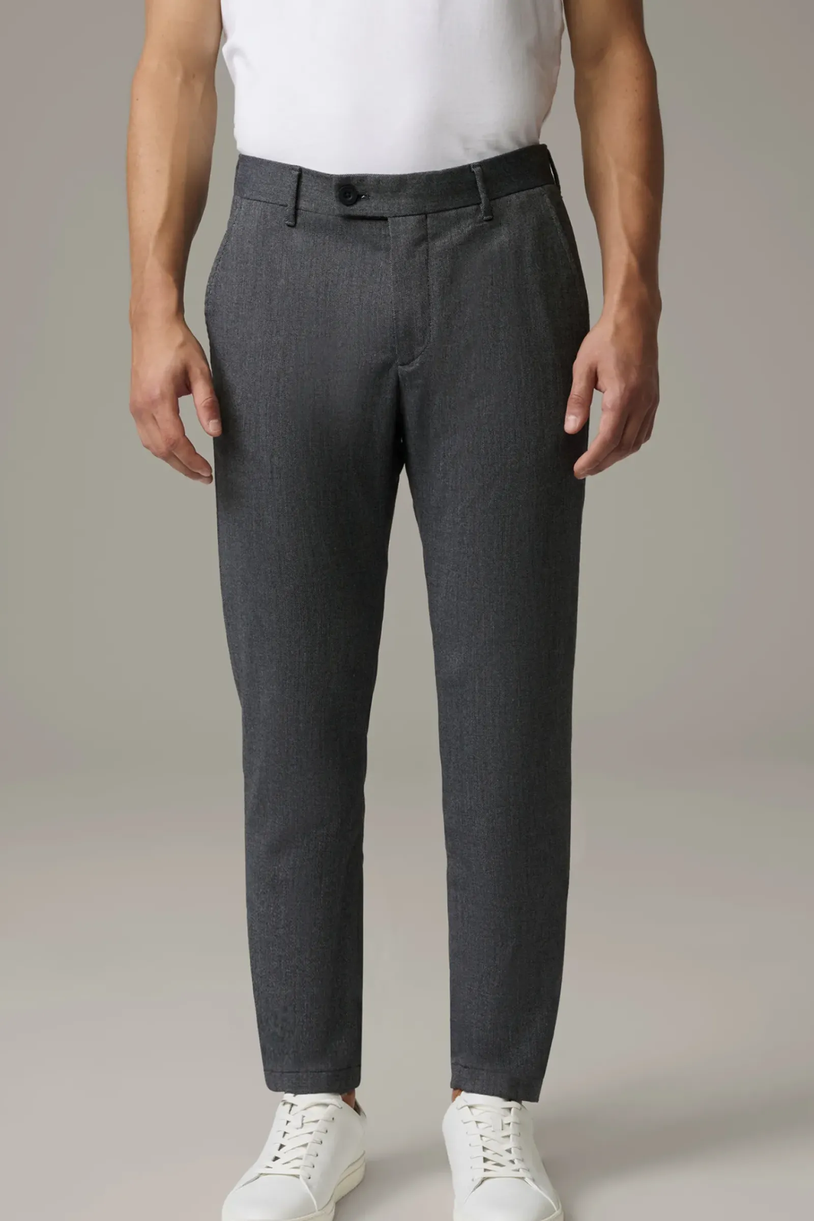 Die Chino Code überzeugt mit knöpfbaren Paspelgesäßtaschen und komfortablem Knopfriegel. Strukturierter Viskose-Mix.