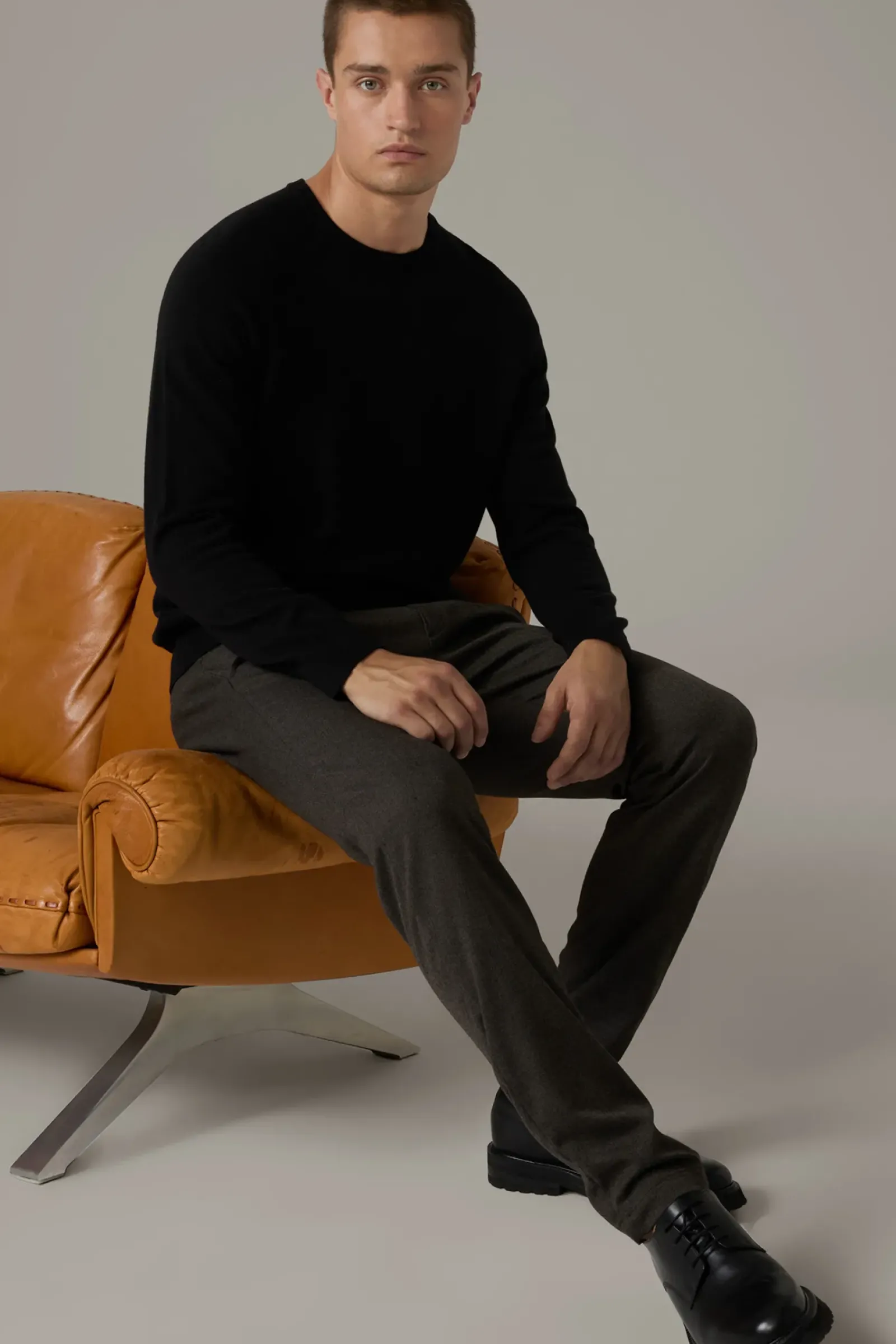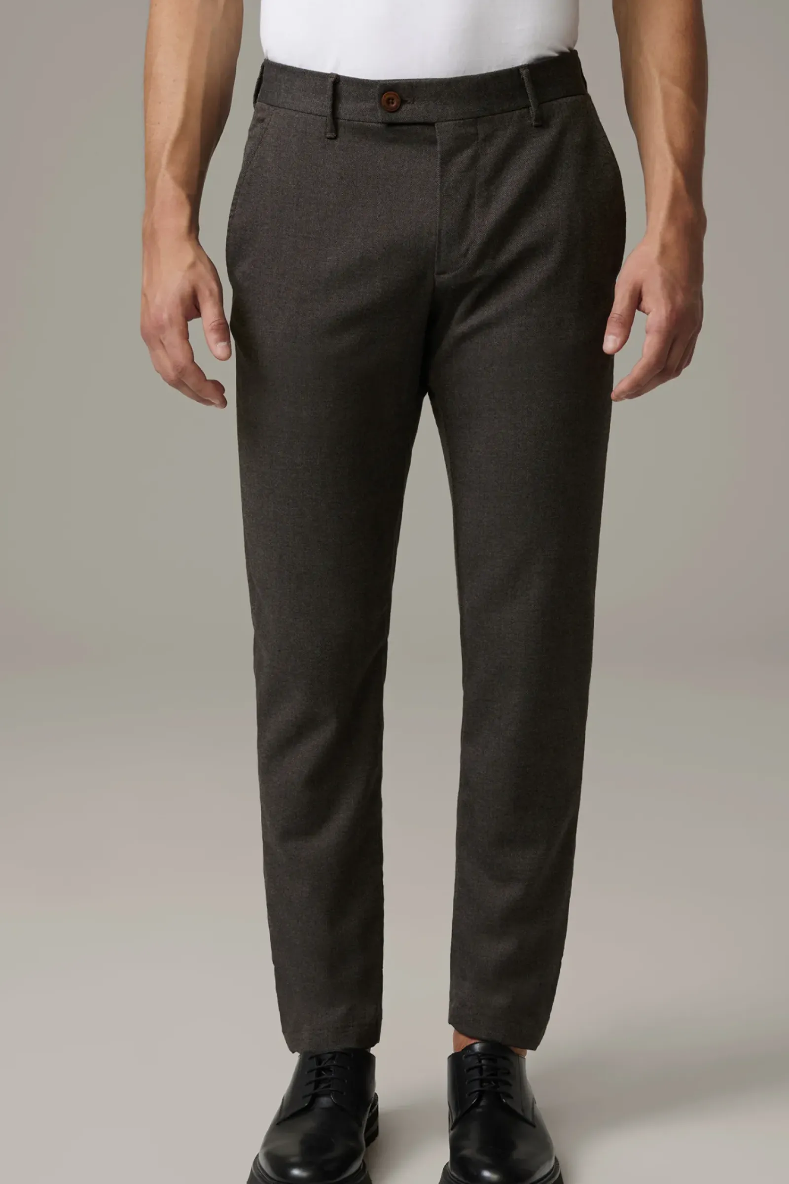 Die Chino Code überzeugt mit knöpfbaren Paspelgesäßtaschen und komfortablem Knopfriegel. Strukturierter Viskose-Mix.