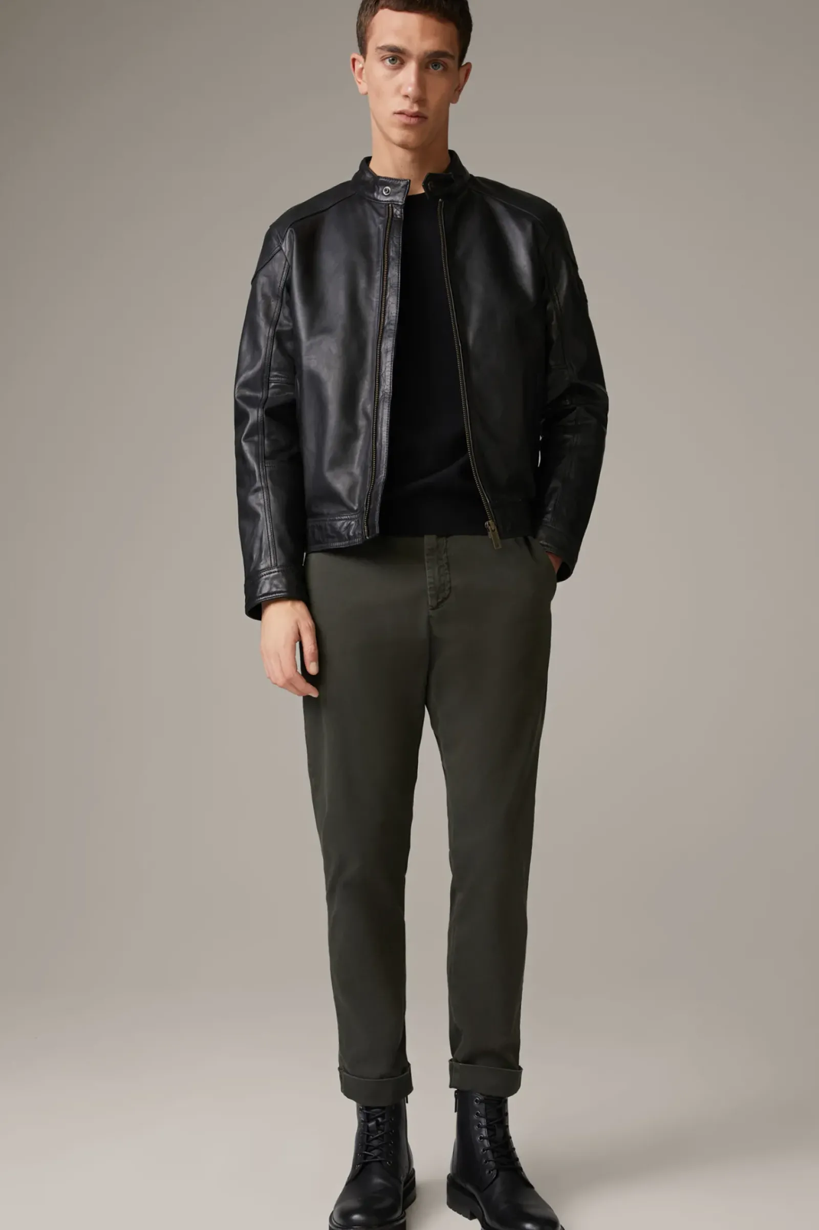 Die Chino Luc aus Cotton-Stretch überzeugt in elastischer Qualität und dezent strukturierter Optik. Mit Pattengesäßtaschen und fixiertem Umschlag am Hosensaum.